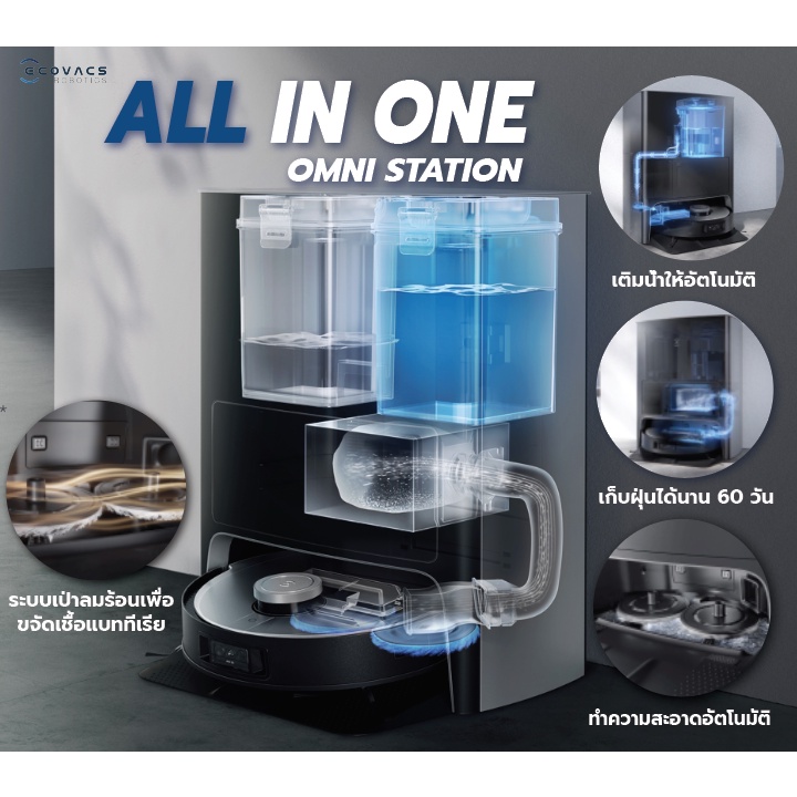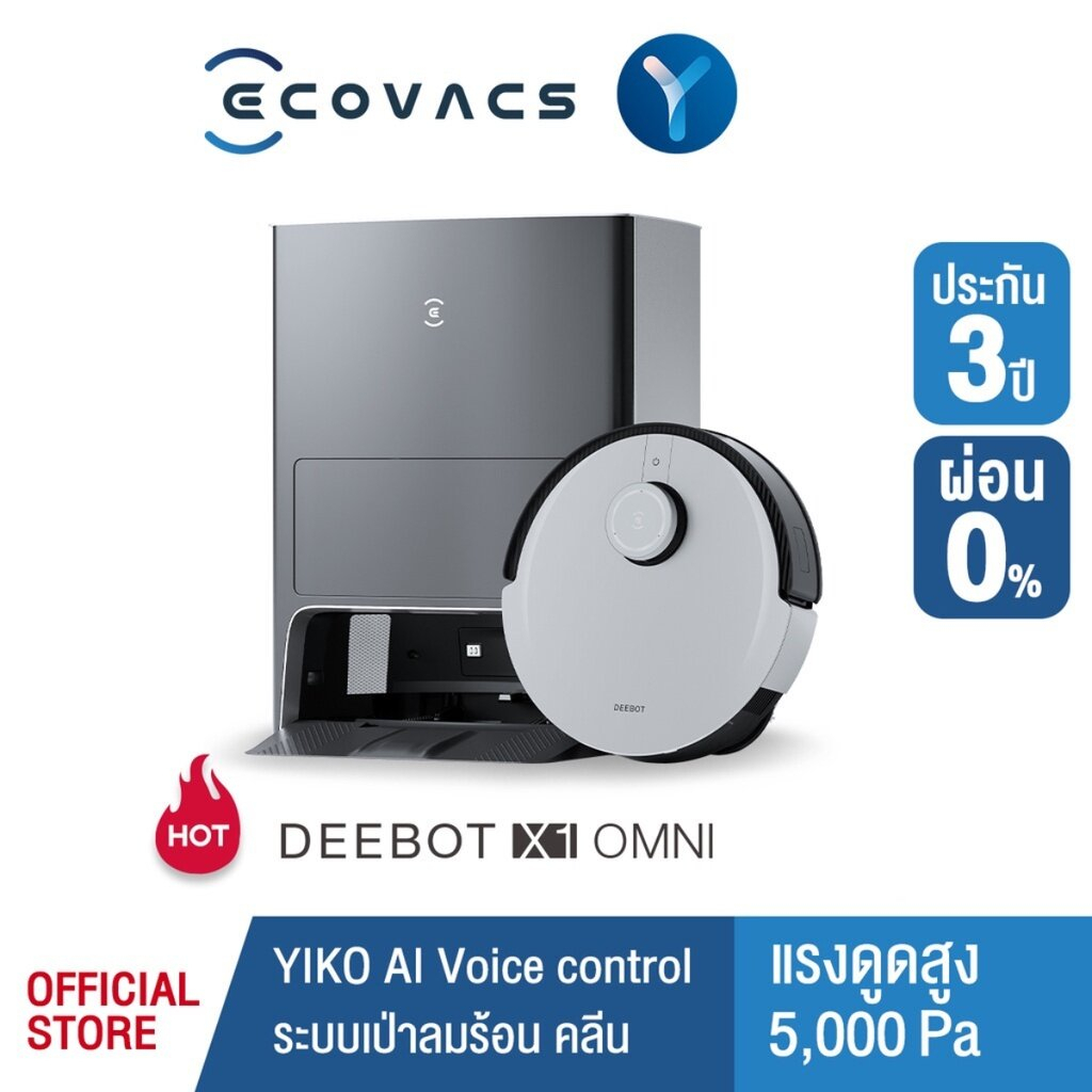 [ส่งฟรี+ประกัน 3ปี] หุ่นยนต์ดูดฝุ่นถูพื้น ECOVACS DEEBOT X1 OMNI ทำความสะอาด ซักผ้าถู เป่าลมร้อน ควบคุมด้วยเสียง