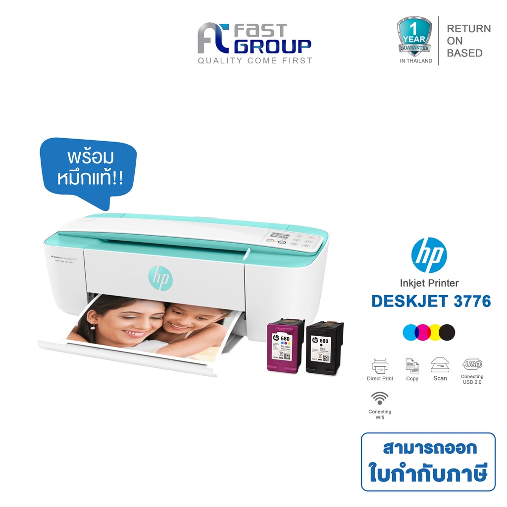 Printer HP DeskJet Ink Advantage 3776 All-in-One ใช้กับหมึกรุ่น Hp 680 รับประกันศูนย์ (พร้อมหมึกเเท้)