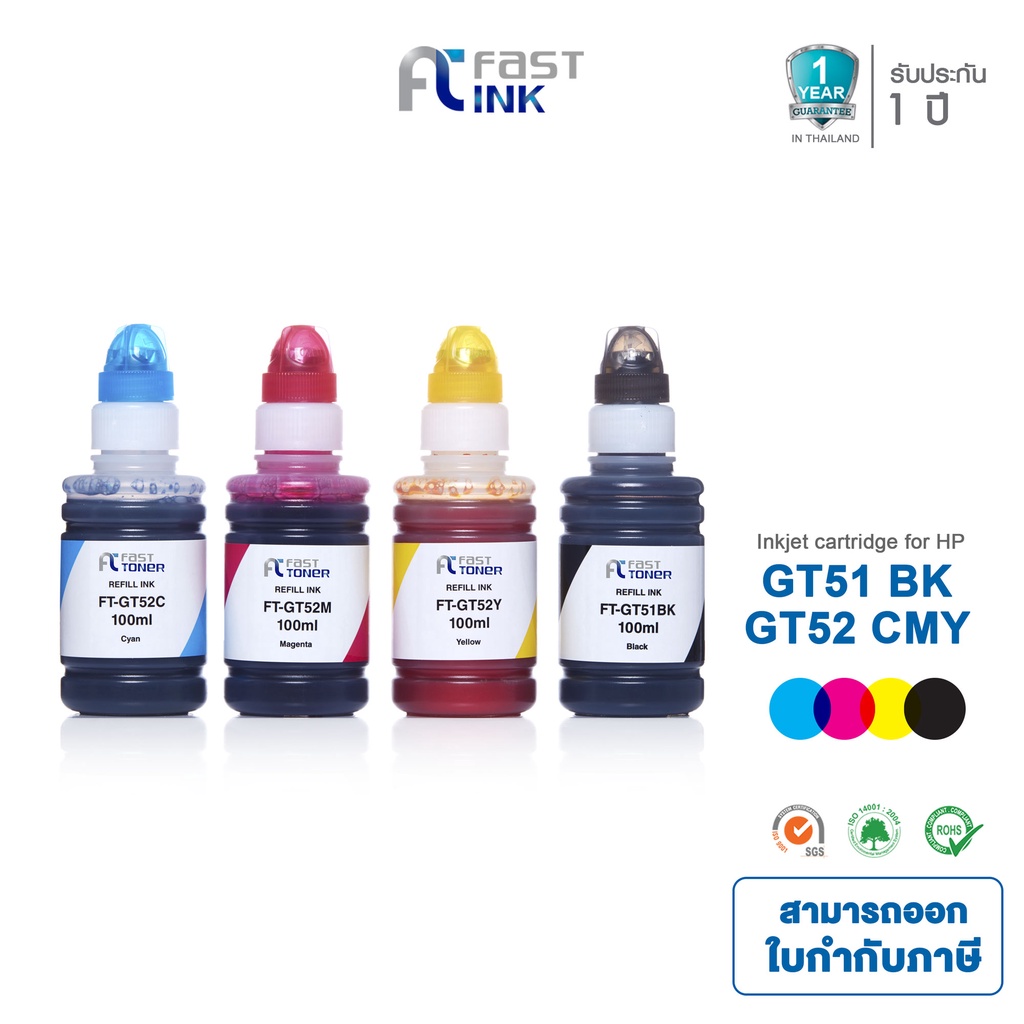 Fast Ink หมึกเทียบเท่า HP GT53 / GT51/ GT52 BKCMY ชุด 4 สี สำหรับเครื่องปริ้น HP515 HP615 HP520 HP 525 HP580 HP720 HP750