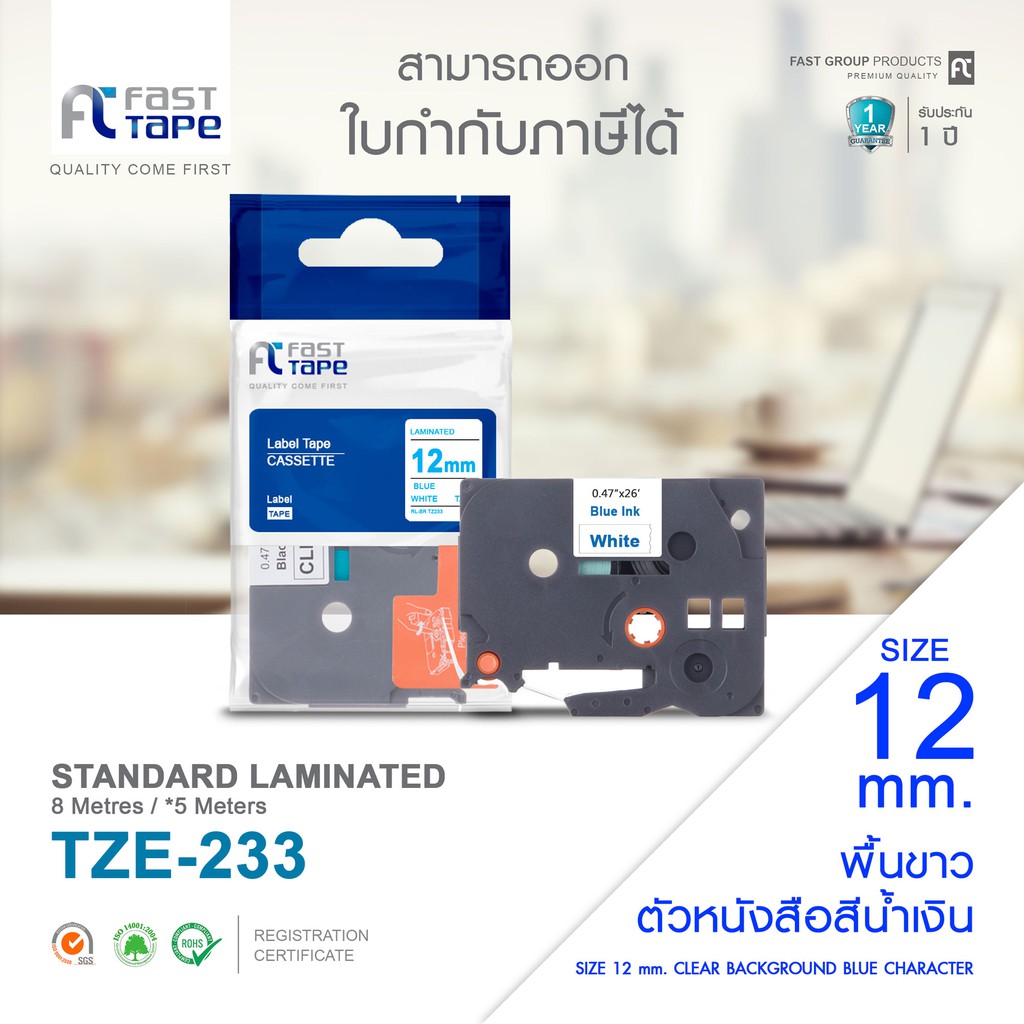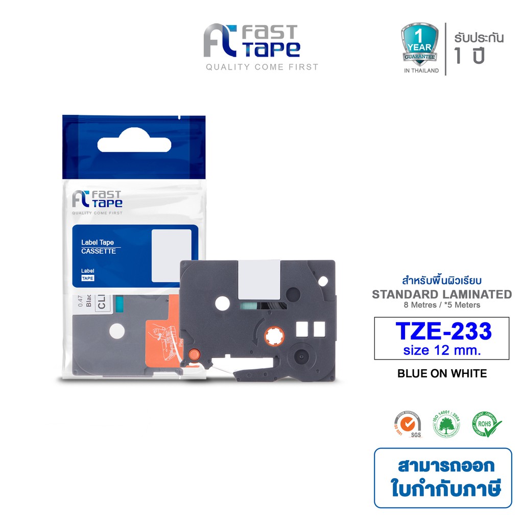 Fast Tape ใช้สำหรับรุ่น Brother Tze-233 (ตัวหนังสือสีน้ำเงินบนพื้นขาว) ขนาด 12 มม.เครื่องพิมพ์ฉลาก