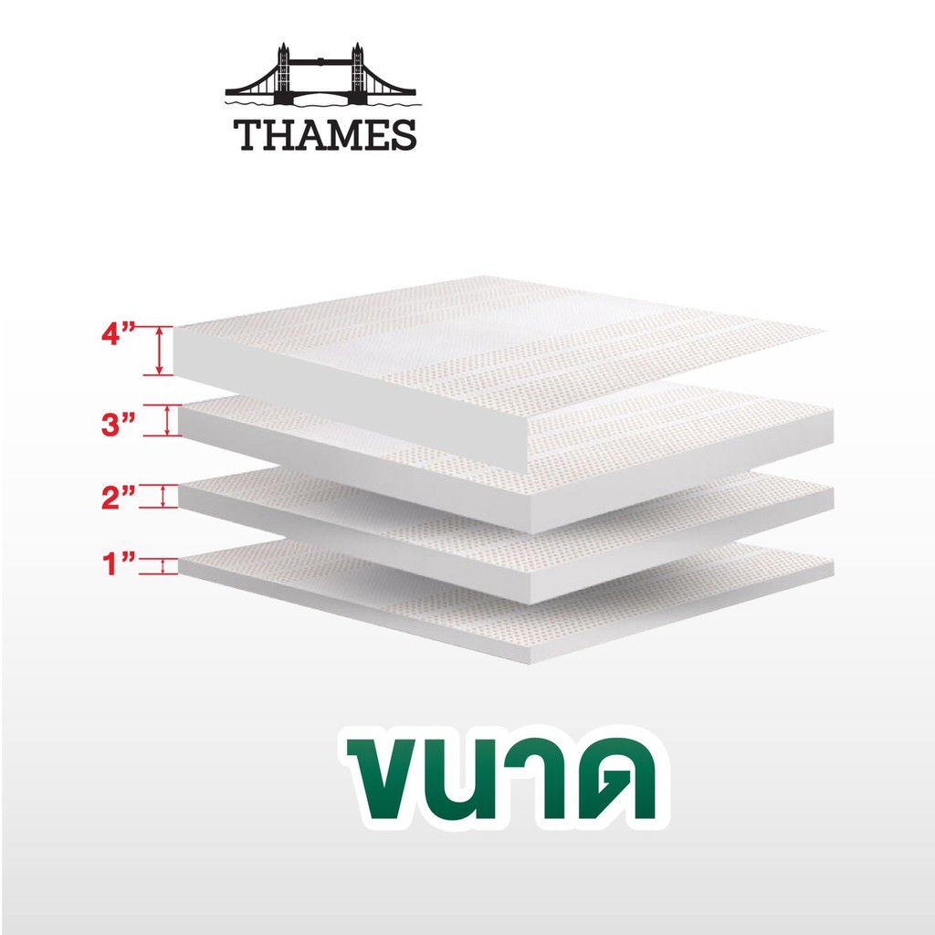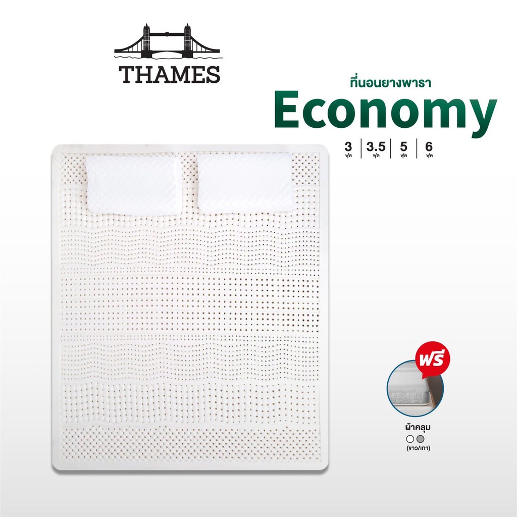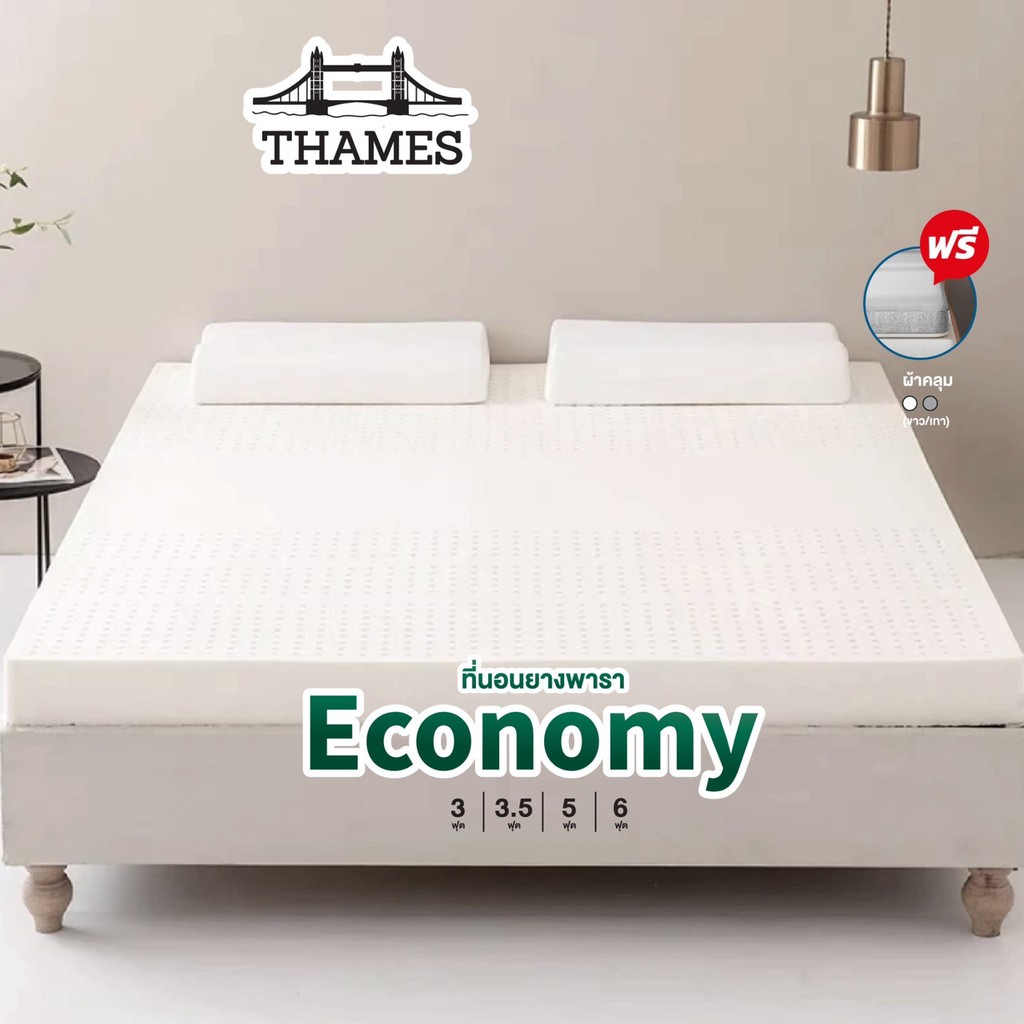 Thames ที่นอนยางพาราแท้ 100% Economy ลดล้างสต๊อก เพื่อสุขภาพ ฉีดขึ้นรูป ผลิตในไทย topper เกรดA