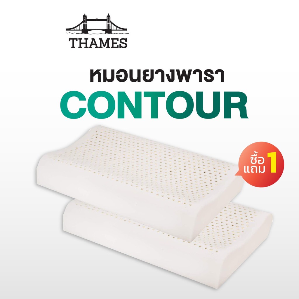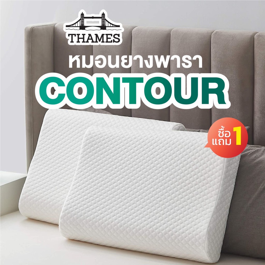 Thames หมอนยางพาราแท้ ไม่ปวดคอ นอนหลับได้นานขึ้น (ปลอกคอตตอน) Latex Pillow