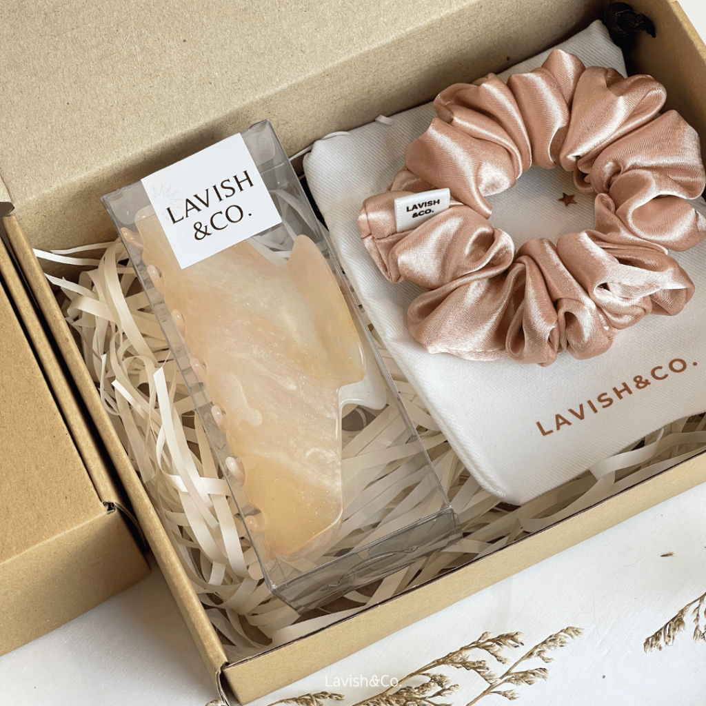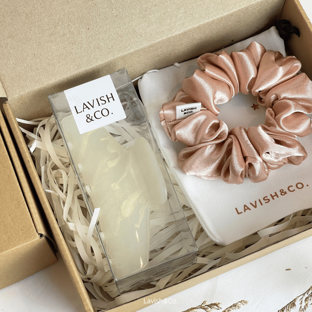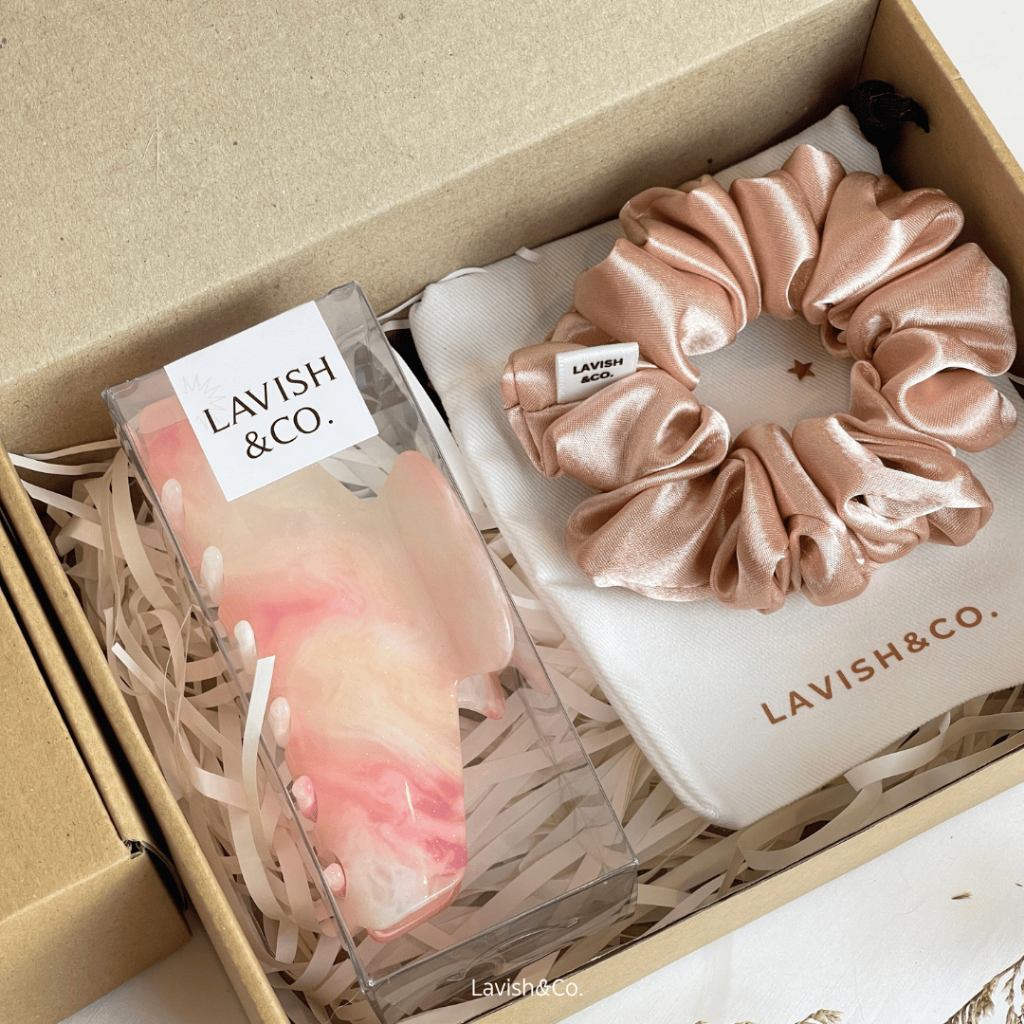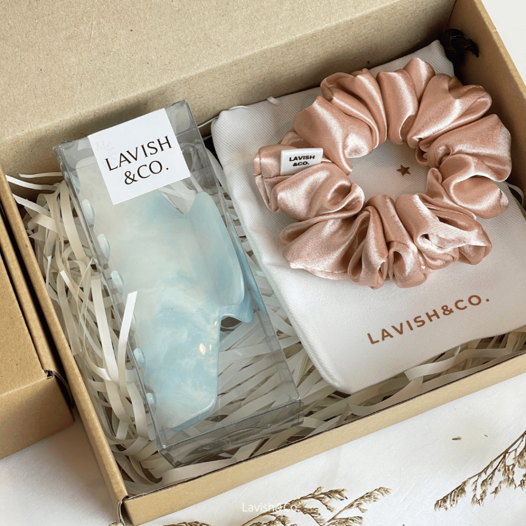 [พร้อมส่ง] MINI Gift set #1 กิ๊ฟหนีบผม เปลี่ยนสี 11 CM +Scrunchies 11*11 CM ฟรีติดชื่อ+การ์ด+ถุงผ้า+กล่องครบเซต