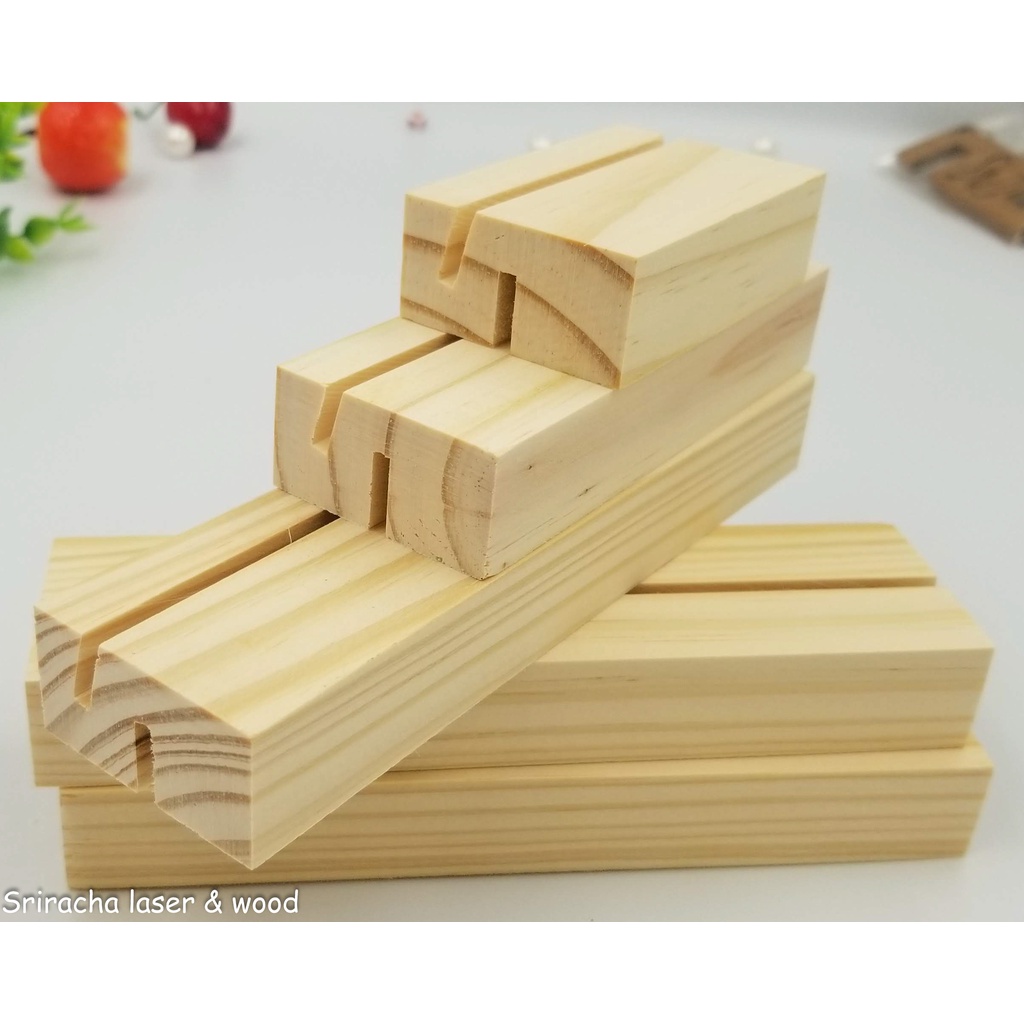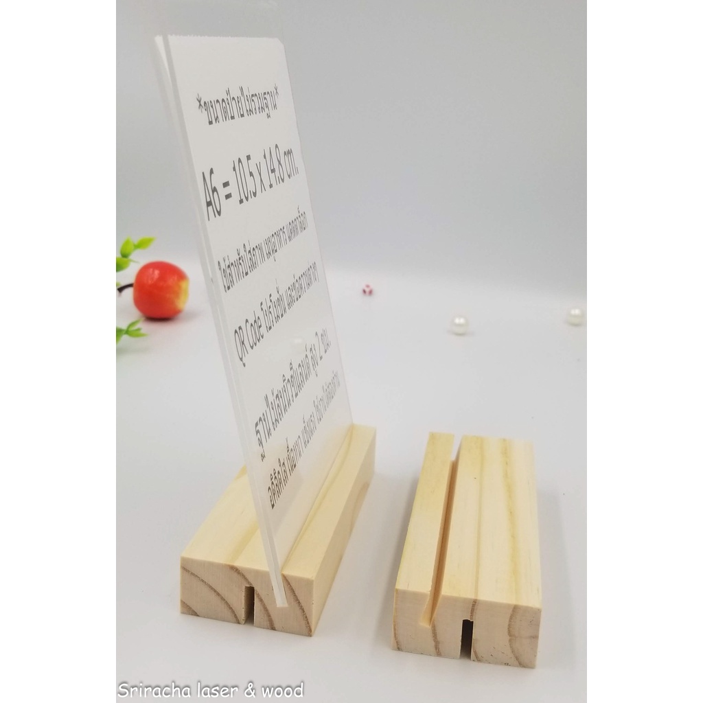ที่เสียบนามบัตร ป้าย รูปภาพ แผ่นอคิลิค เสียบกระจก ไม้สนจริง ฐานไม้สําหรับวาง Board game, Card Holder