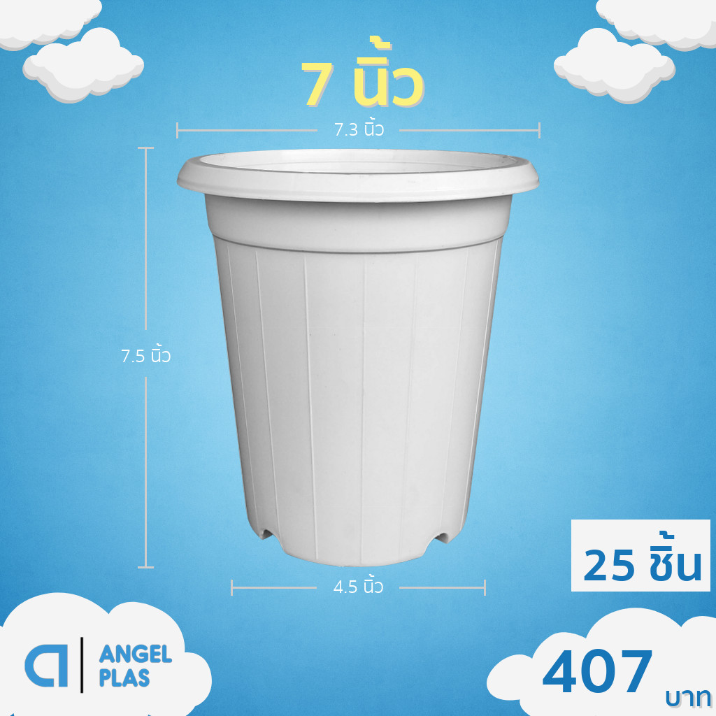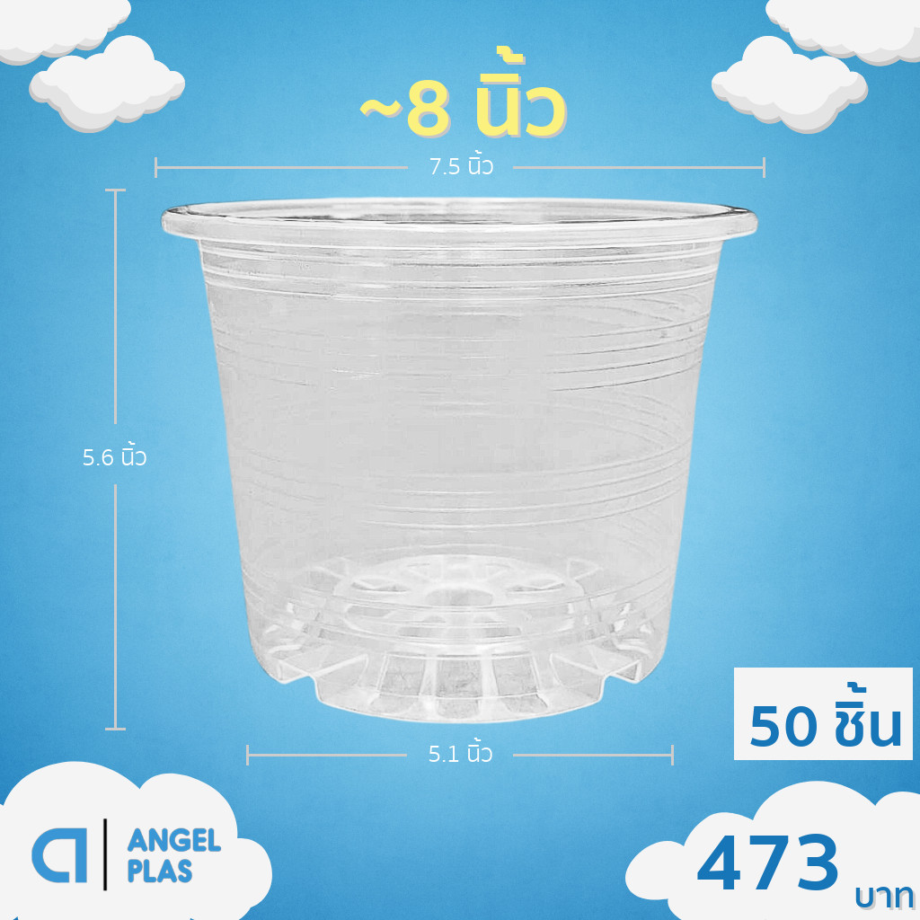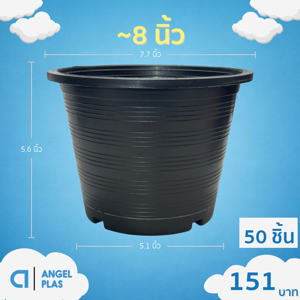 กระถาง กระถางต้นไม้ กระถางพลาสติก เบอร์ 8 7 นิ้ว สีดำ ยกมัด 50 ใบ