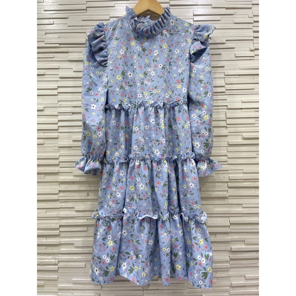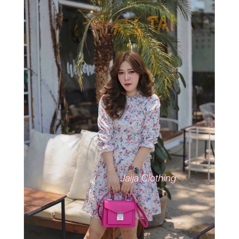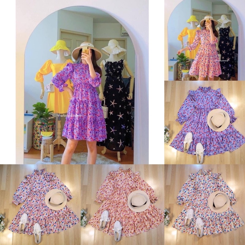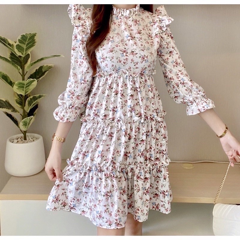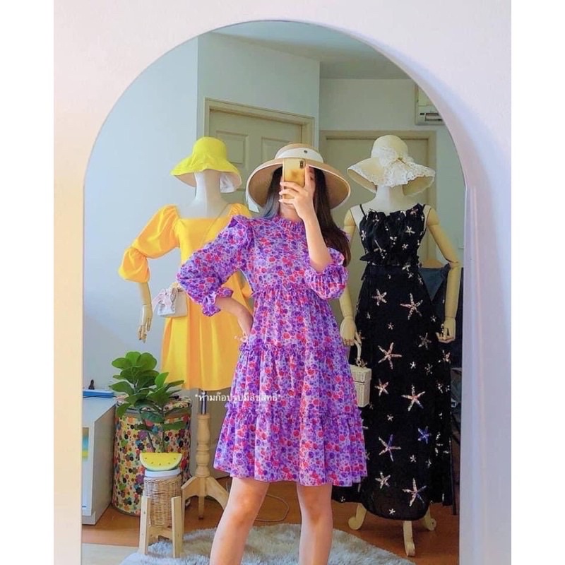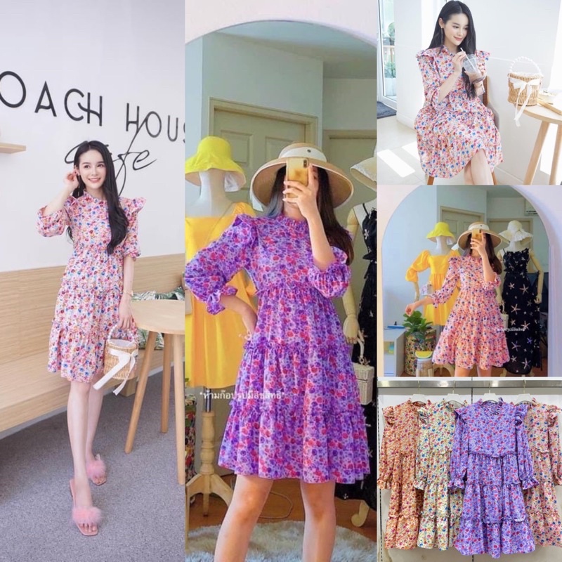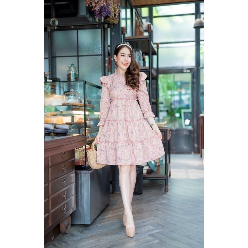 MR1160 เดรสลายดอกเแม่อั้ม มาแล้วจ้า แพทเทิร์นสวยมาก งานแต่งระบายช่วงตัว จับจีบระบายช่วงคอหัวไหล่ สวยเว้อวังมากค่า