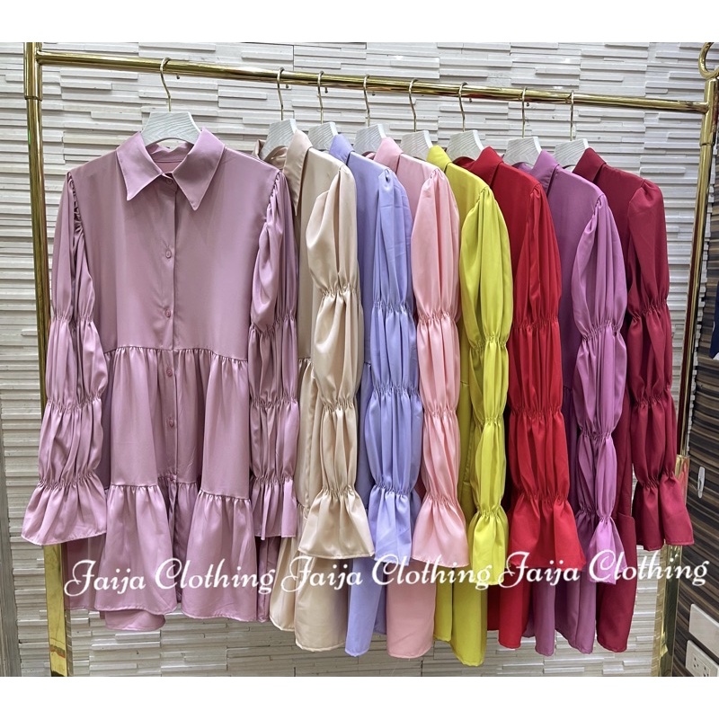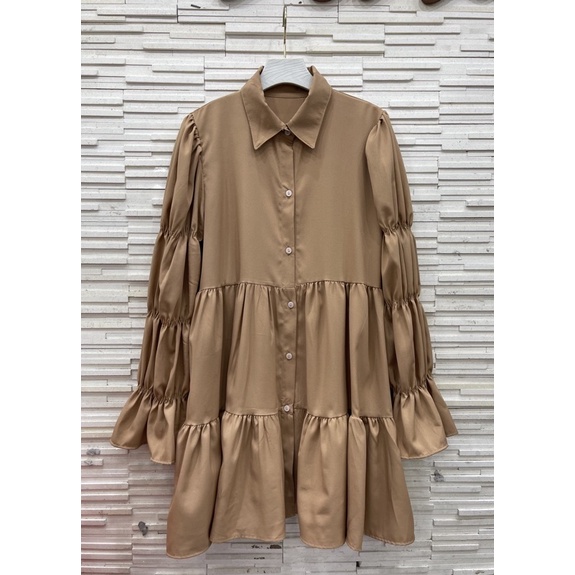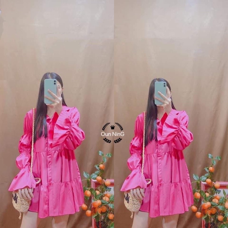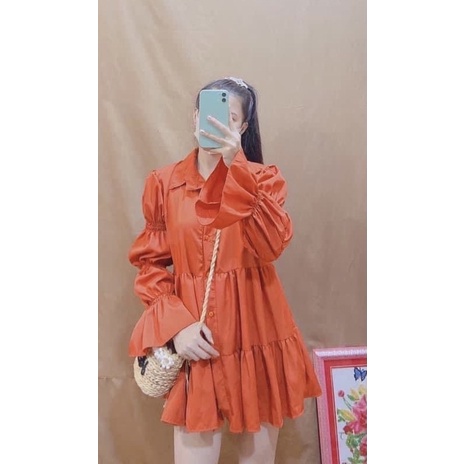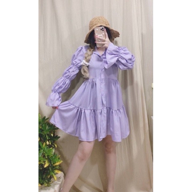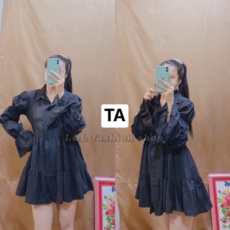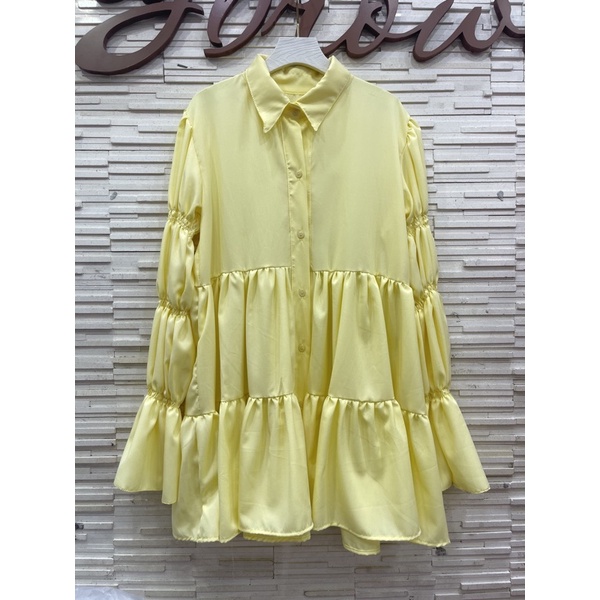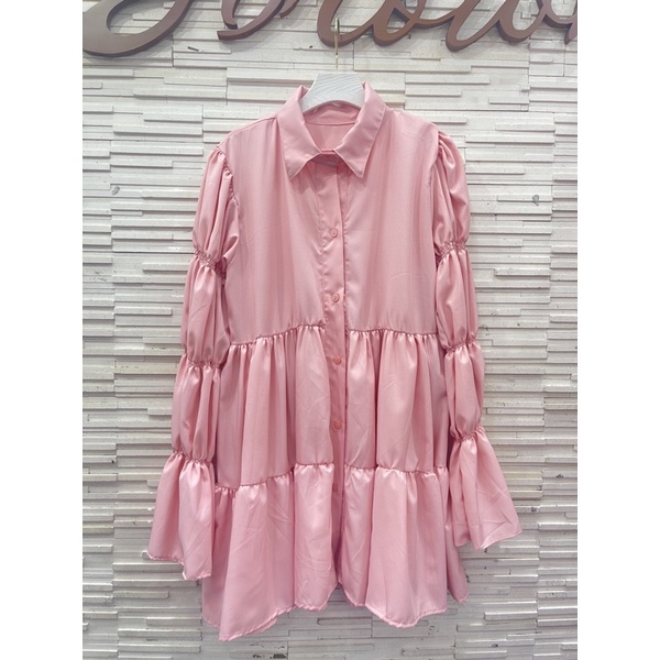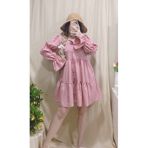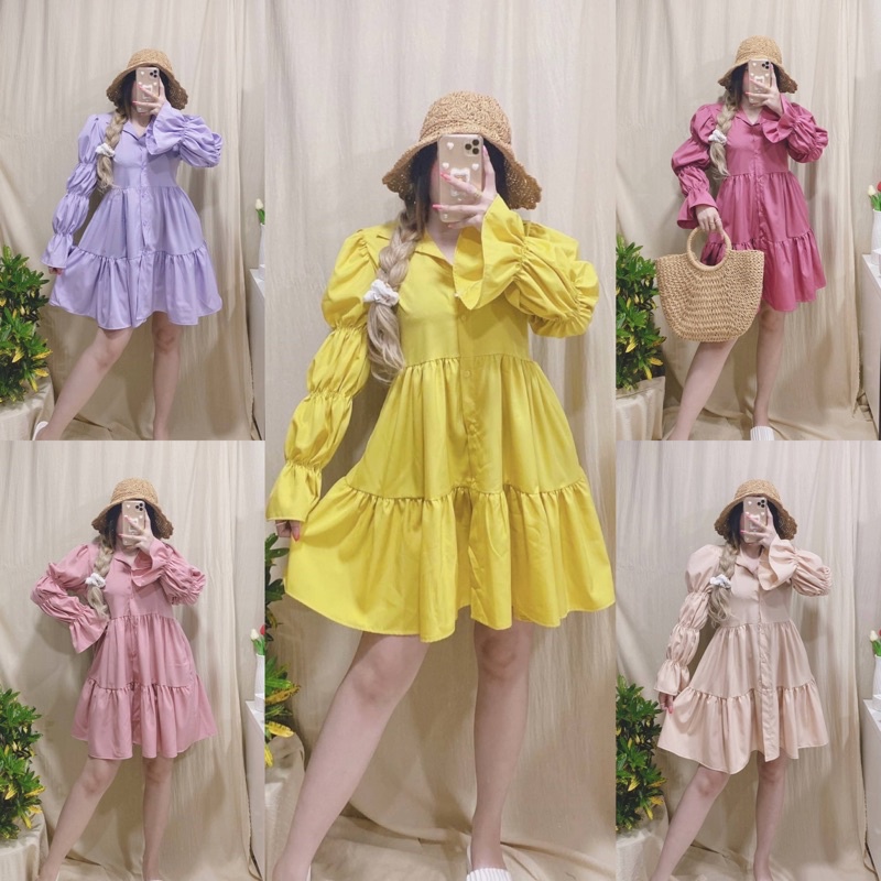 อน.6130 มินิเดรสคอปก แขนยาว แต่งสม็อคช่วงแขน New Dress สวยสุดๆ เดรสสั้นแขนยาว น่ารักมากๆ มาใหม่สวยมากๆค่า/
