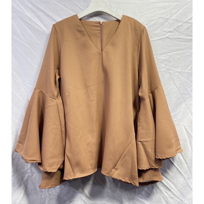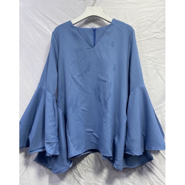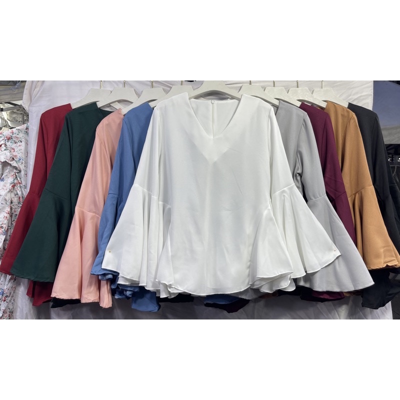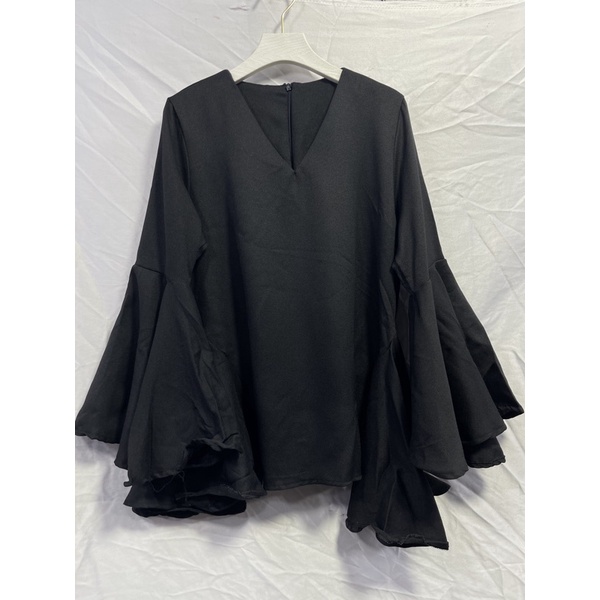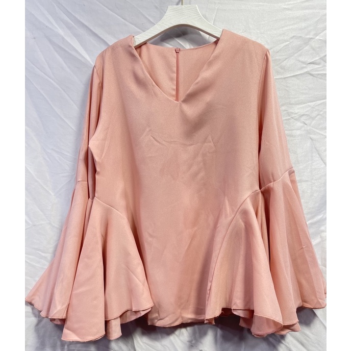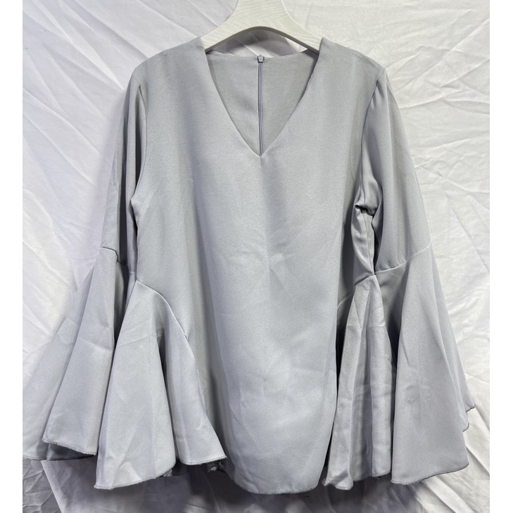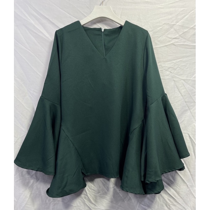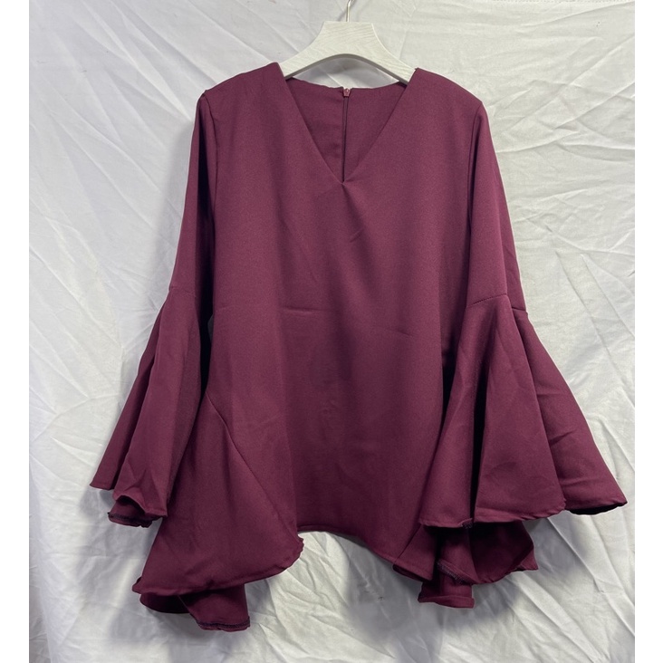 ซห1019 เสื้อคอวี ซิปหลัง แขนยาว แต่งระบายแขน ฟรุ้งฟริ้งๆ ผ้าโพเวย์ ใส่ได้ทั้งอิสลามพุทธค่ะ