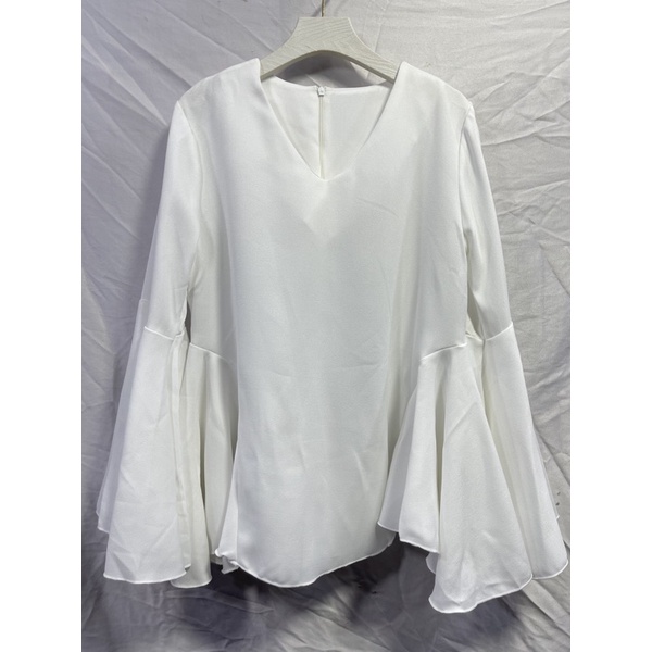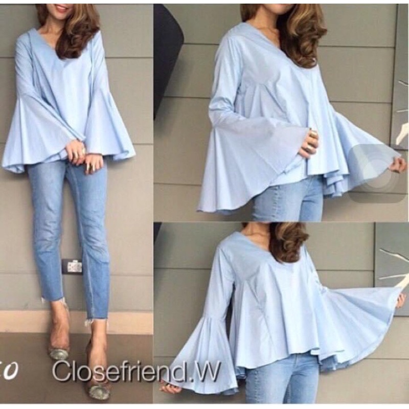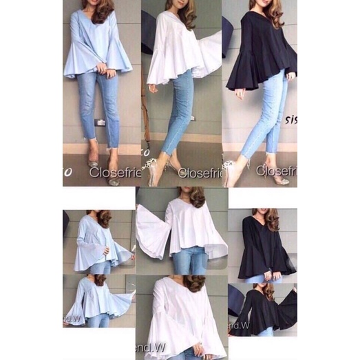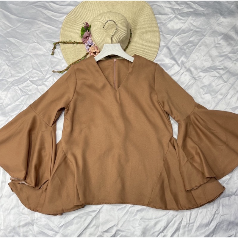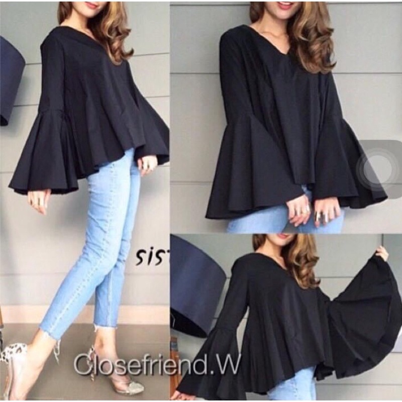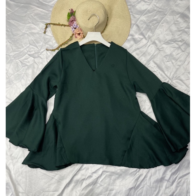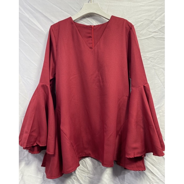 ซห1019 เสื้อคอวี ซิปหลัง แขนยาว แต่งระบายแขน ฟรุ้งฟริ้งๆ ผ้าโพเวย์ ใส่ได้ทั้งอิสลามพุทธค่ะ