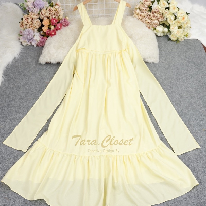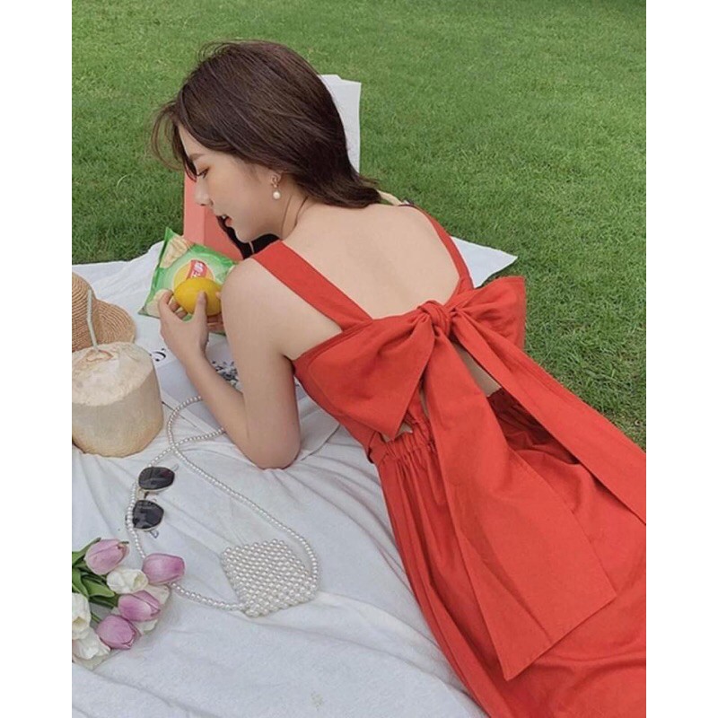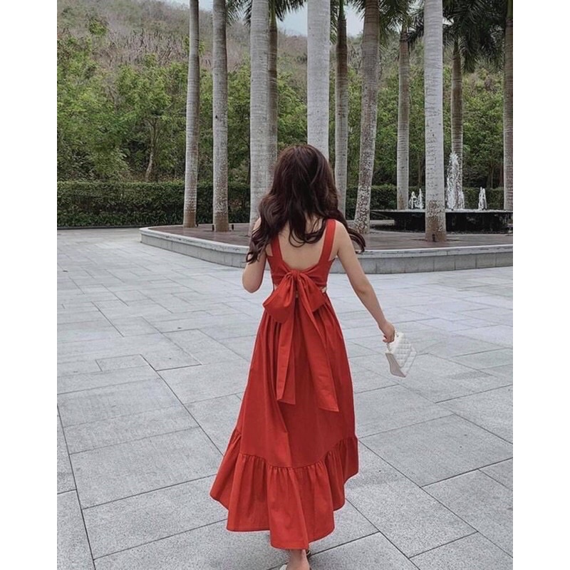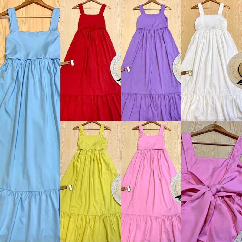 BO0150 เดรสสายเดี่ยว ผูกโบว์หลัง มีชายระบาย สวยเริ่ดมากค่ะแม่ขา ต้องมีน่ะค่ะ มาใหม่ล่าสุด