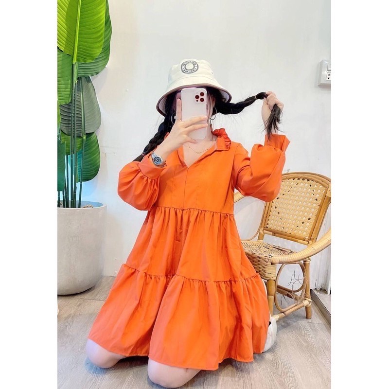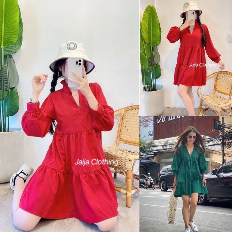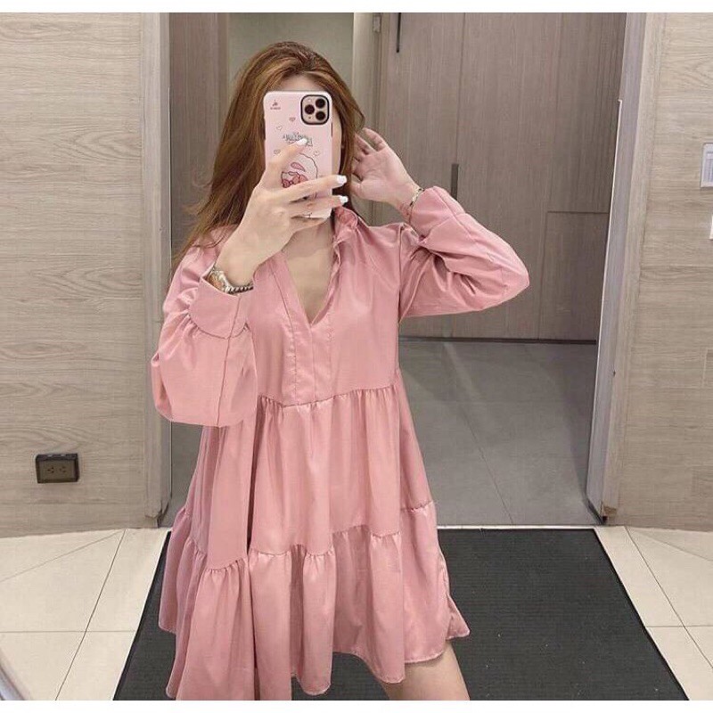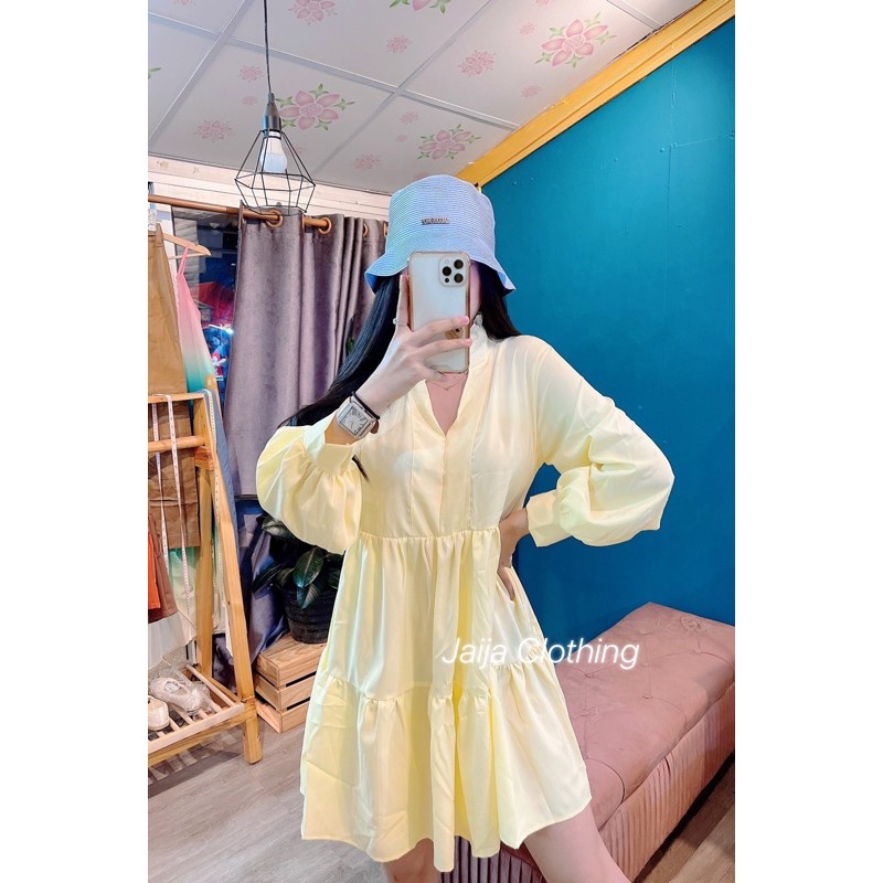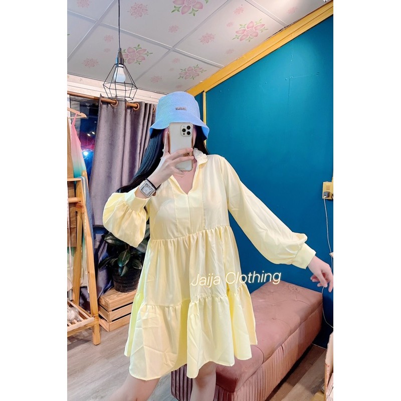 ซซ1537.1 Mini drees คุณแอนก็มาจ้า มินิเดรสน่ารักมากๆ ทรงคอจีนระบายคอ แขนยาวช่วงตัวเย็บชั้น ให้ดูมีอะไรเรียบหรูดู