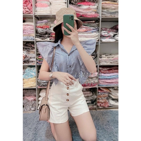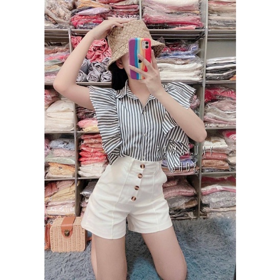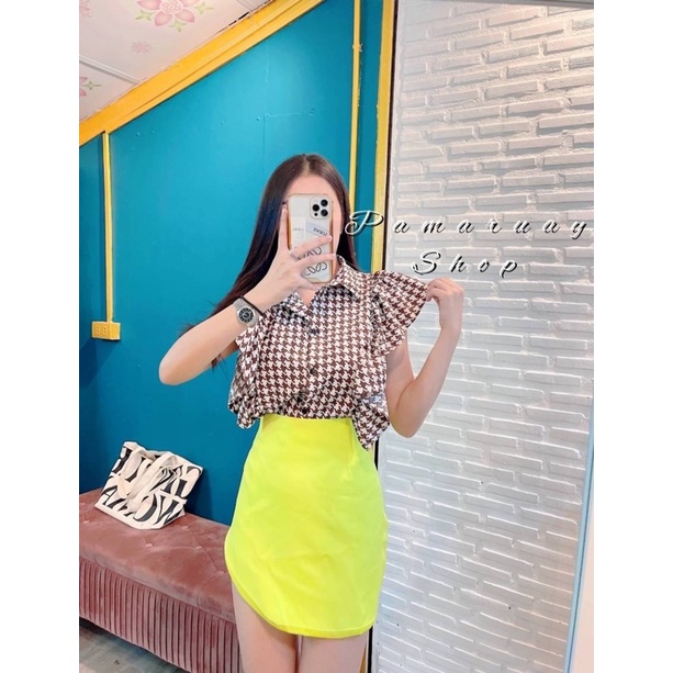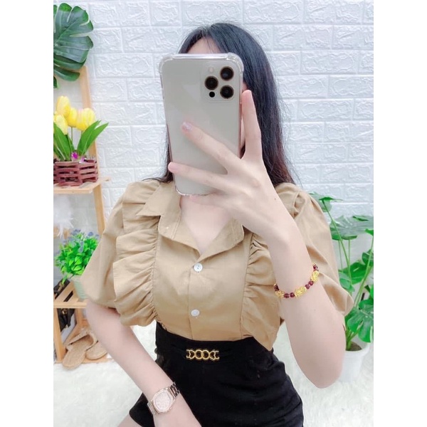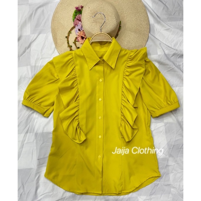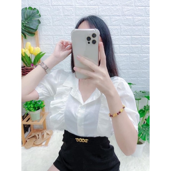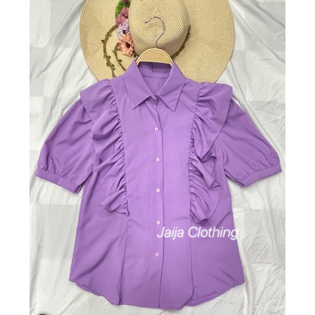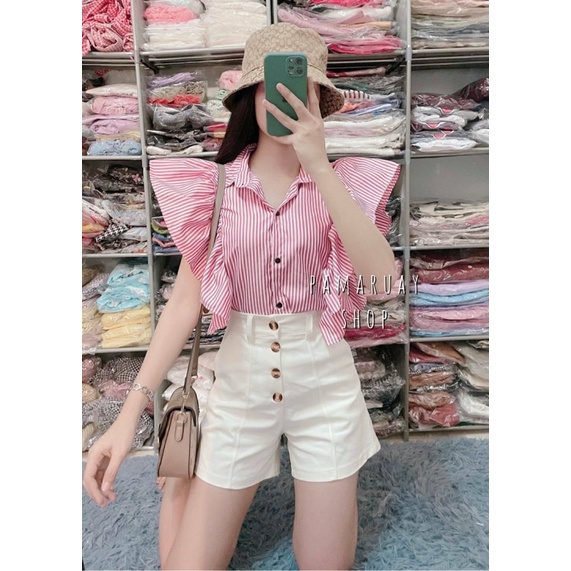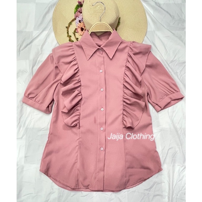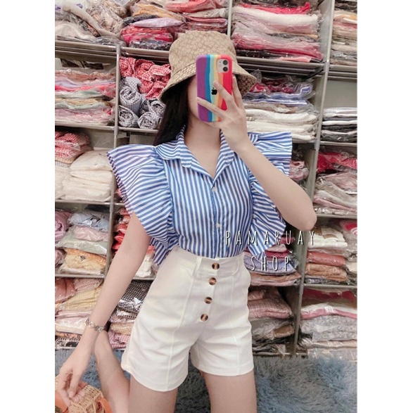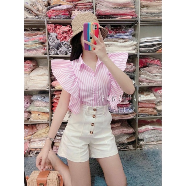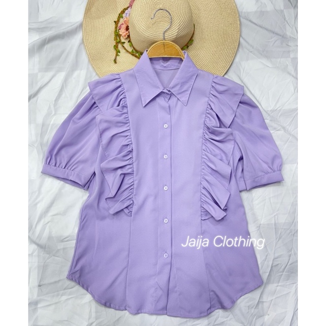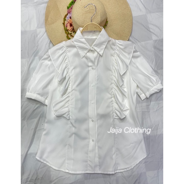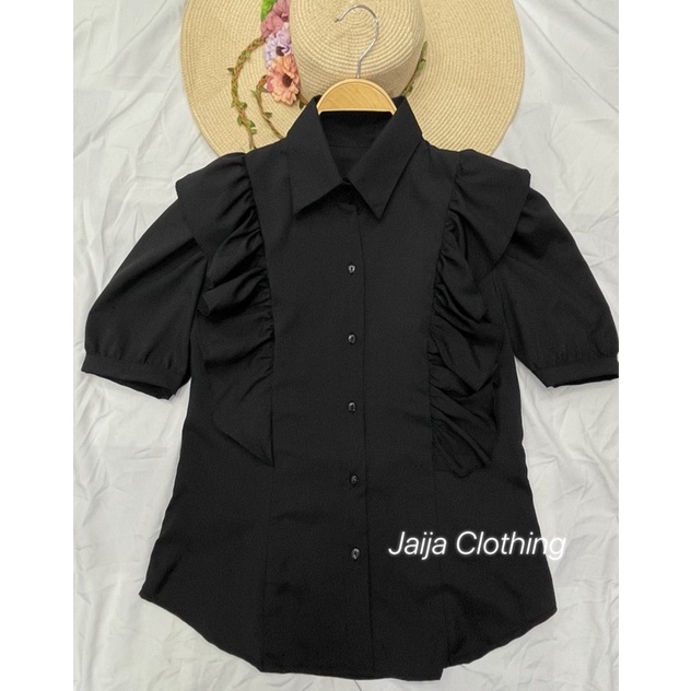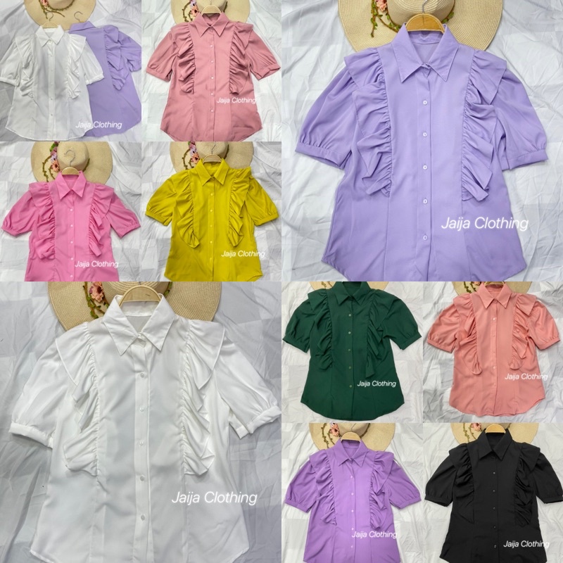ชร1409 เสื้อคอปก แต่งระบายหน้า งานมีกระดุม ทนงแขนสั้น งานสวย สินค้าชนช็อป ผ้าดี ใส่สบาย ใส่ได้ทุกโอกาส