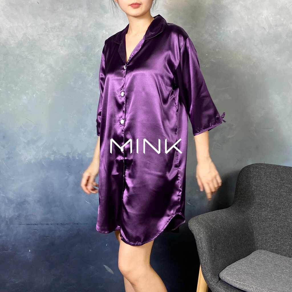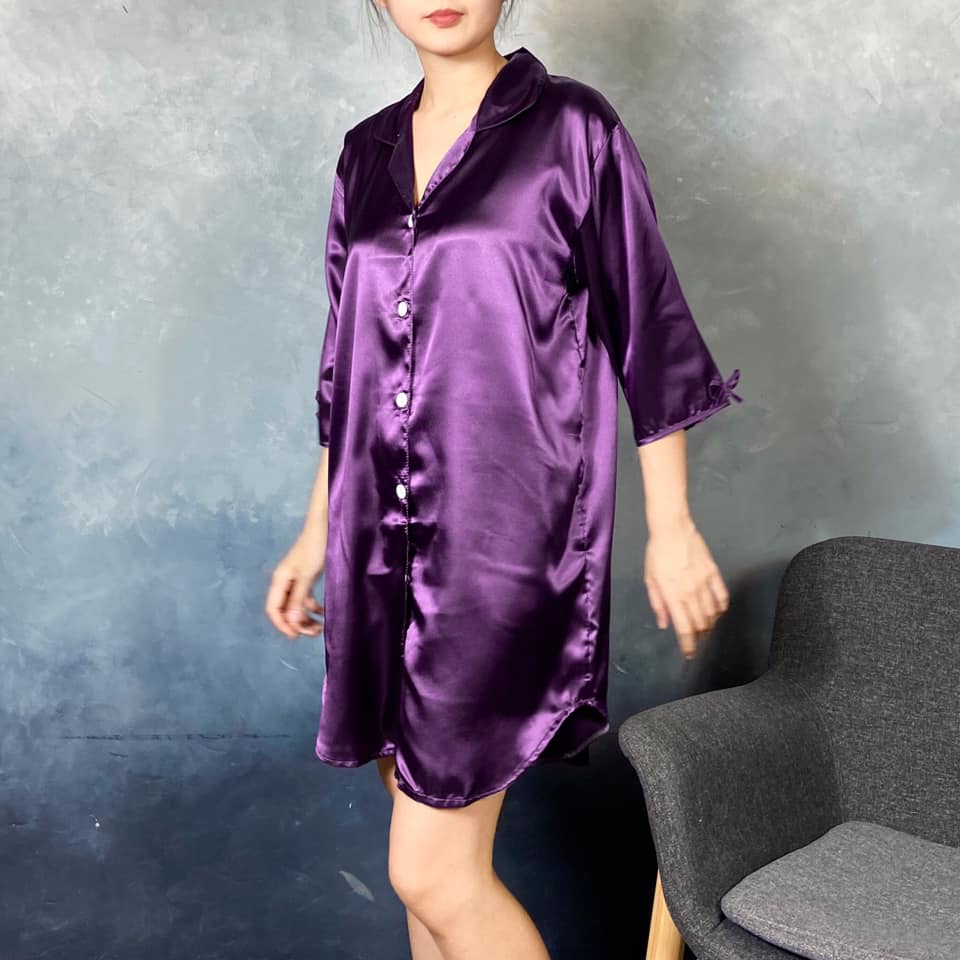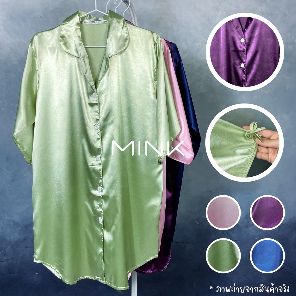 ชุดนอน กระโปรง ผ้าซาติน สีพื้น มี 4 สี นุ่มลื่น ใส่สบาย
