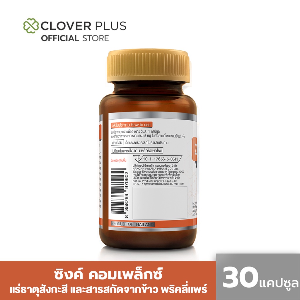 [ 1 แถม 1 ] Clover Plus Zinc Complex วิตามินซี Actrisave 1 กระปุก 75 mg (30 แคปซูล)