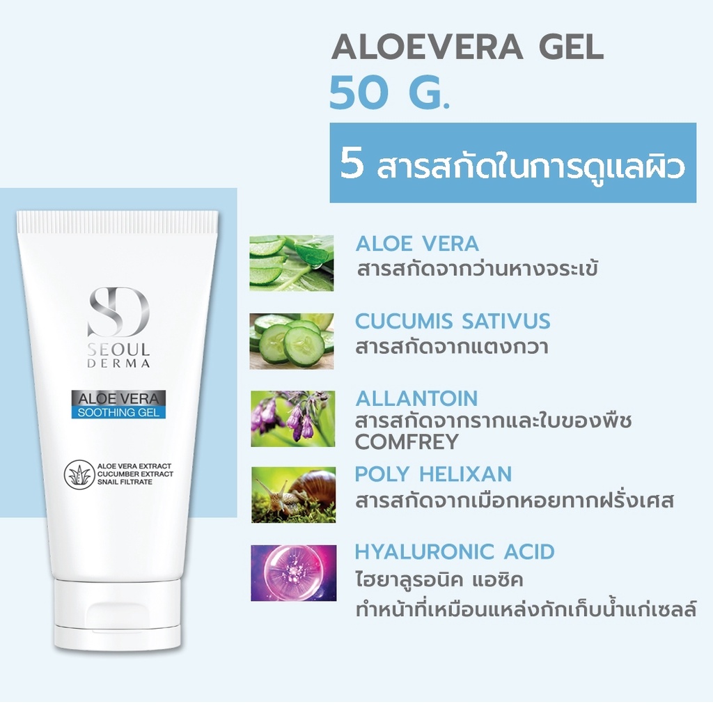 SEOUL DERMA ALOEVERA GEL เจลว่านหางจระเข้ และ สารสกัดอีก 5 ชนิด 1 หลอด ขนาด 50 กรัม