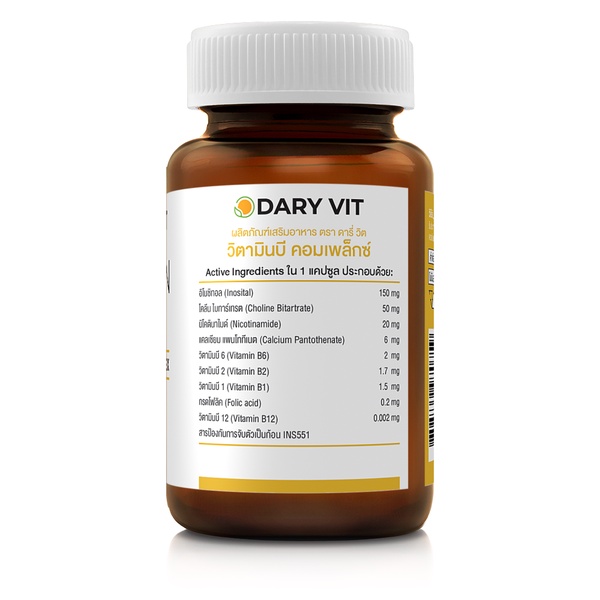 Dary Vit B complex Vitamin B วิตามินบี คอมเพล็ กซ์ วิตามินบีรวม 1 กระปุก (30 แคปซูล) ( อาหารเสริม )