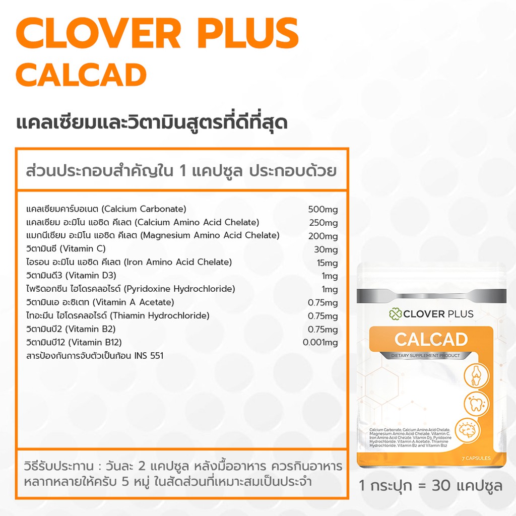 Clover Plus Calcad แคลแคท อาหารเสริม แคลเซียม และวิตามิน 7 แคปซูล (1 ซอง) แคลเซียม 2 ชนิด