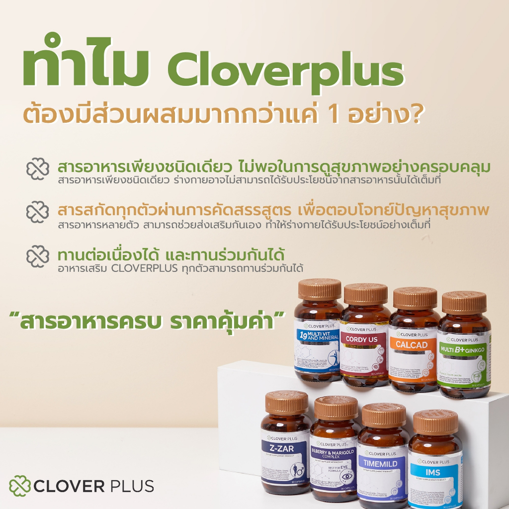 Clover plus Z-ZAR ถั่งเช่า ทิเบต วิตามินบี 6 เห็ดหลินจือ 1 กระปุก (30 แคปซูล)