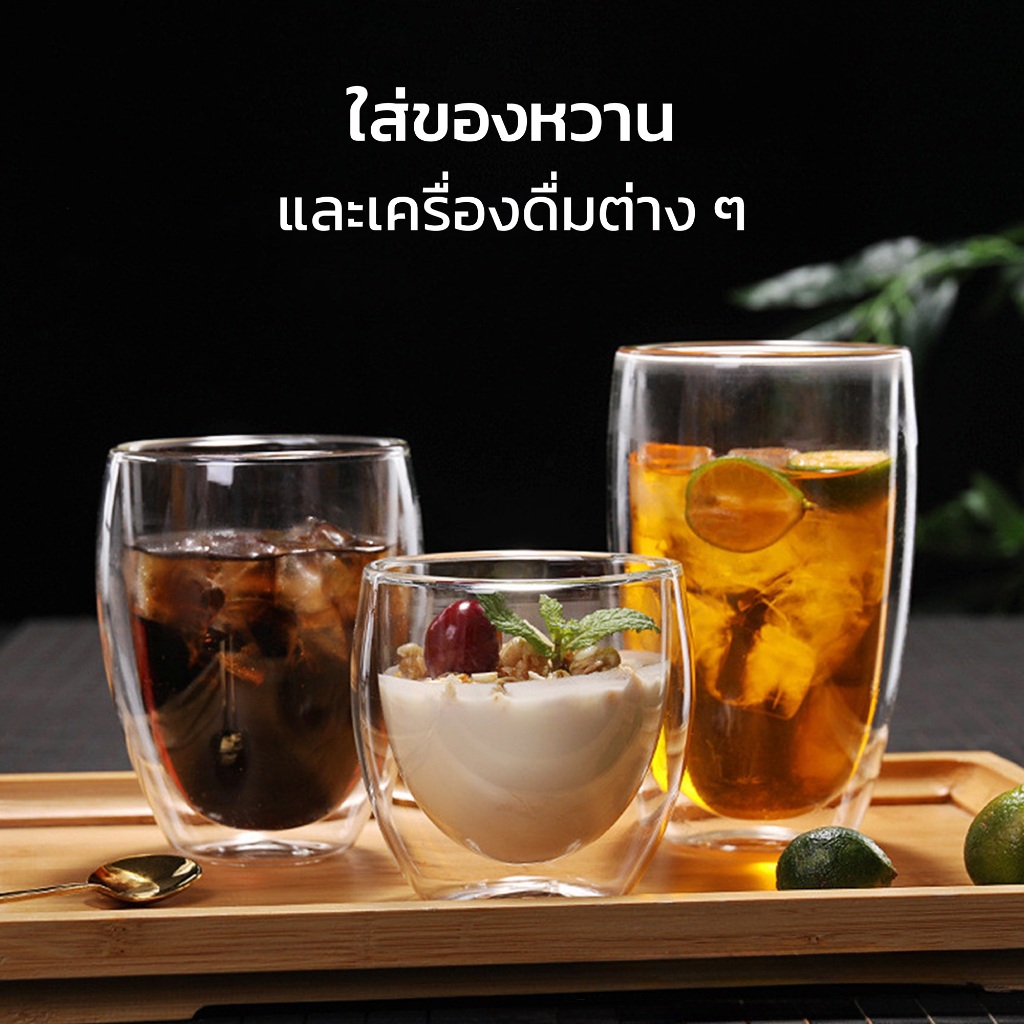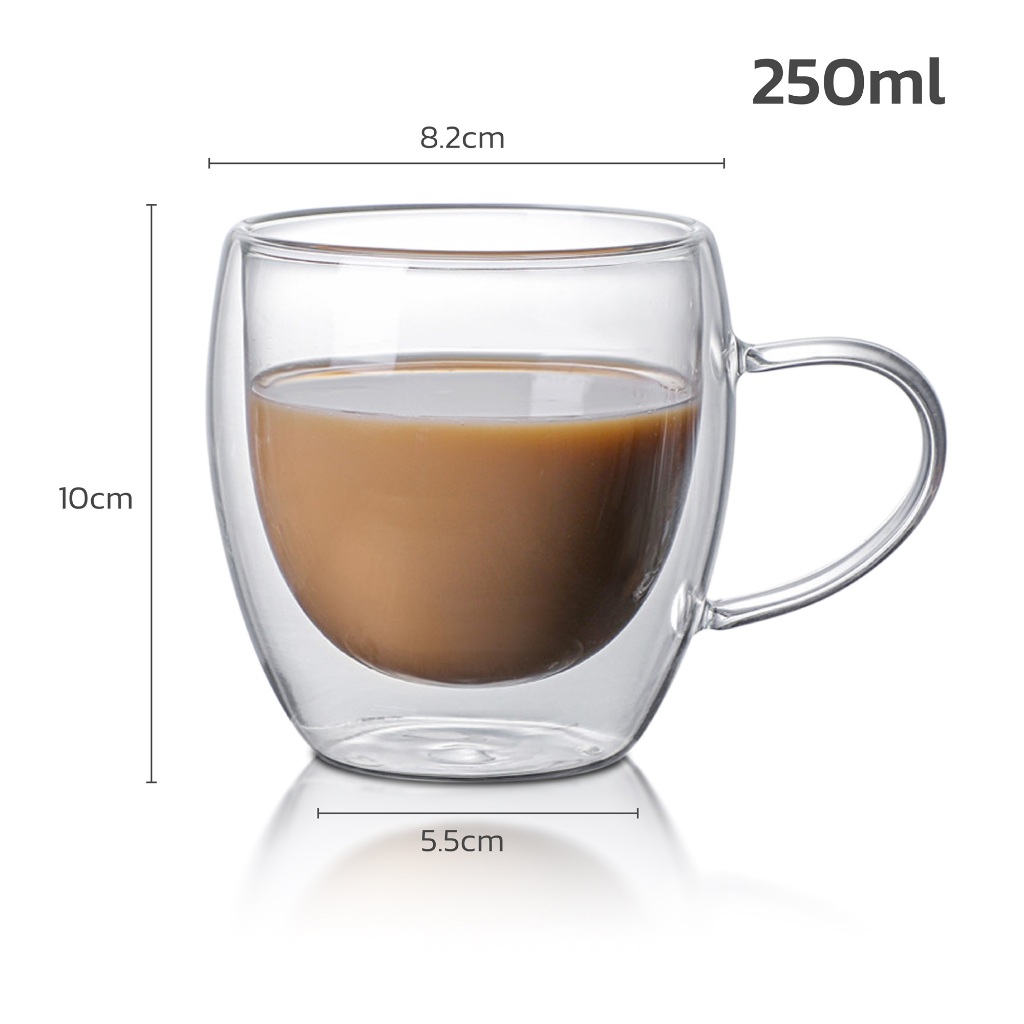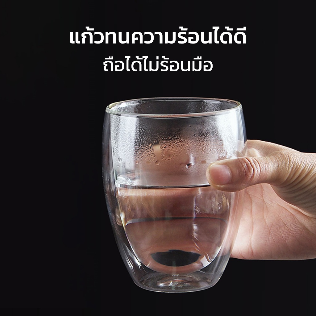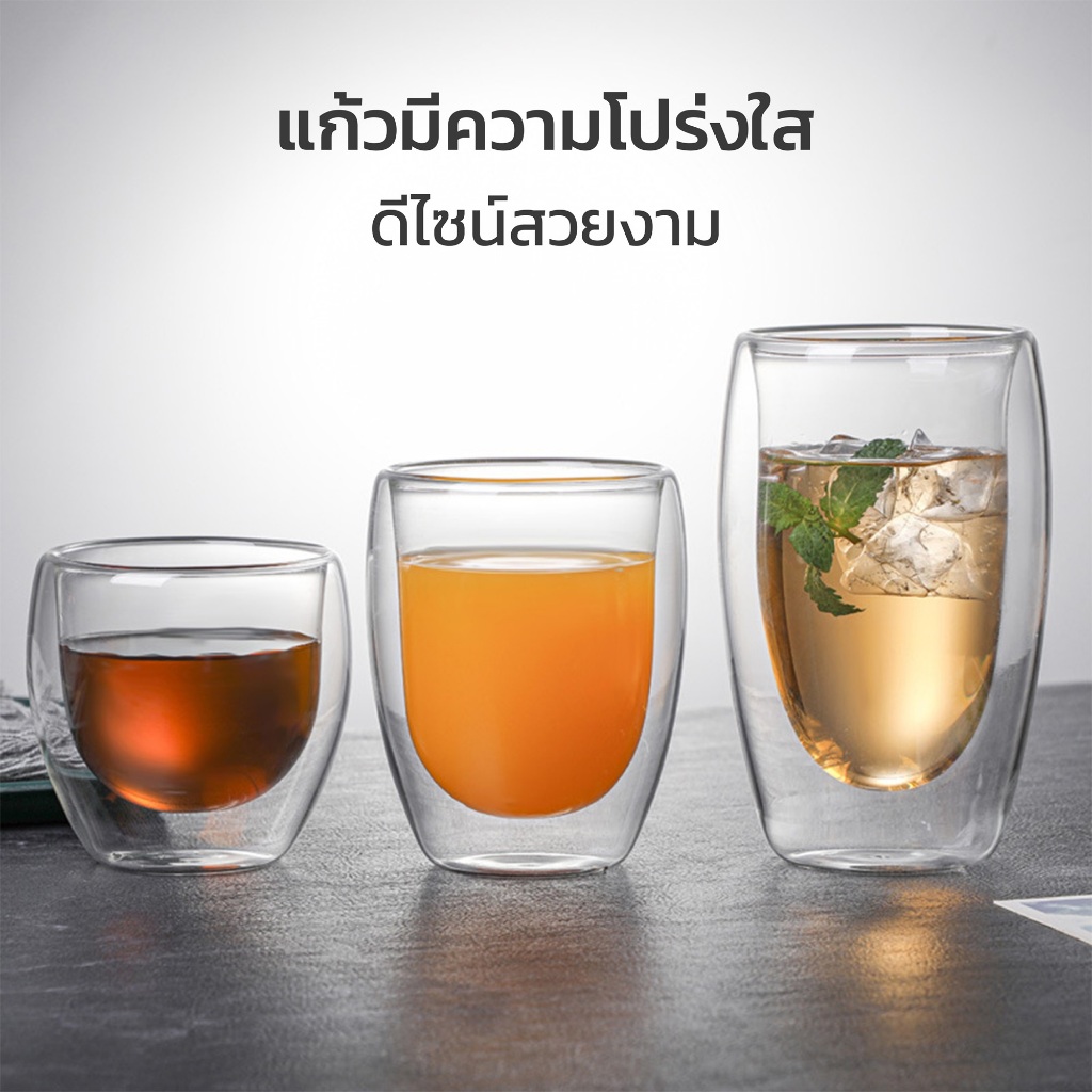 HOMEC แก้วกาแฟ 2ชั้น Double Wall Glass สำหรับใส่เครื่องดื่ม ชา กาแฟ ใช้กับน้ำร้อน น้ำเย็น