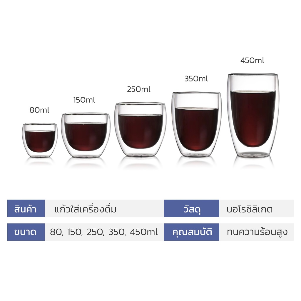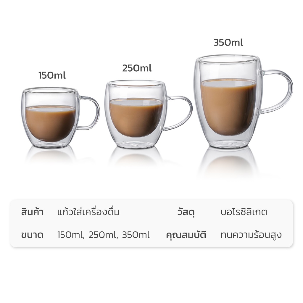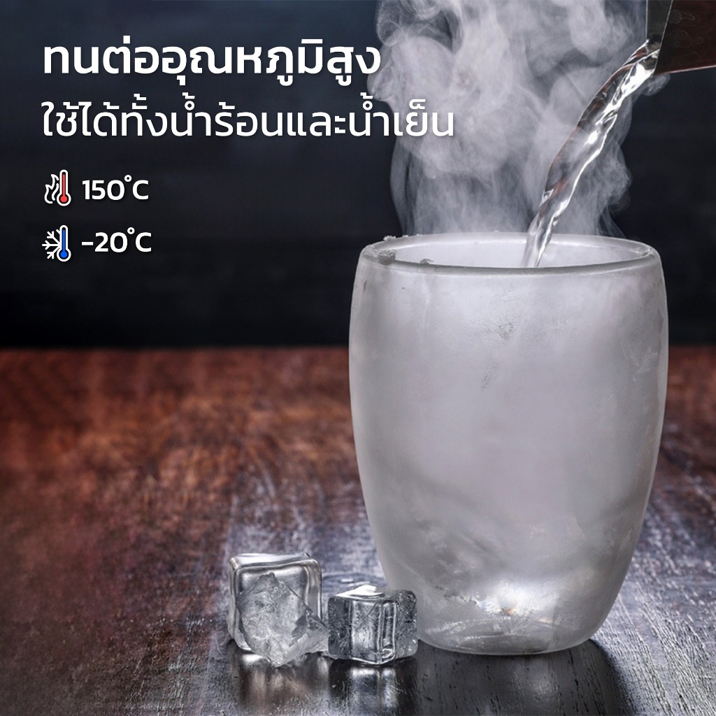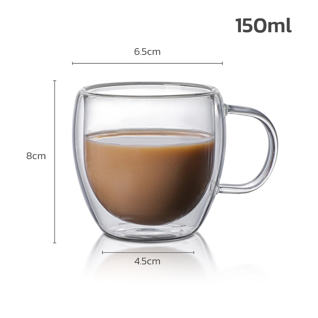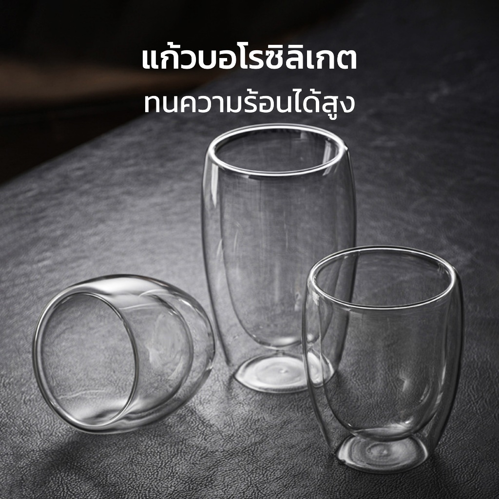 HOMEC แก้วกาแฟ 2ชั้น Double Wall Glass สำหรับใส่เครื่องดื่ม ชา กาแฟ ใช้กับน้ำร้อน น้ำเย็น