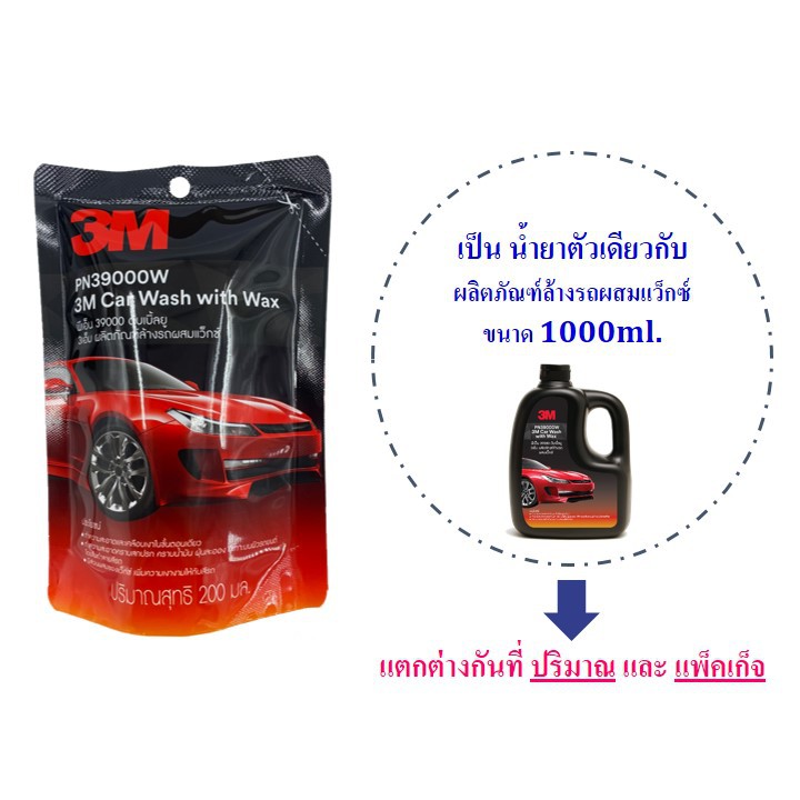 (2 ถุง) 3M แชมพูล้างรถ น้ำยาล้างรถ สูตรผสมแวกซ์ PN39000W 200 ml.