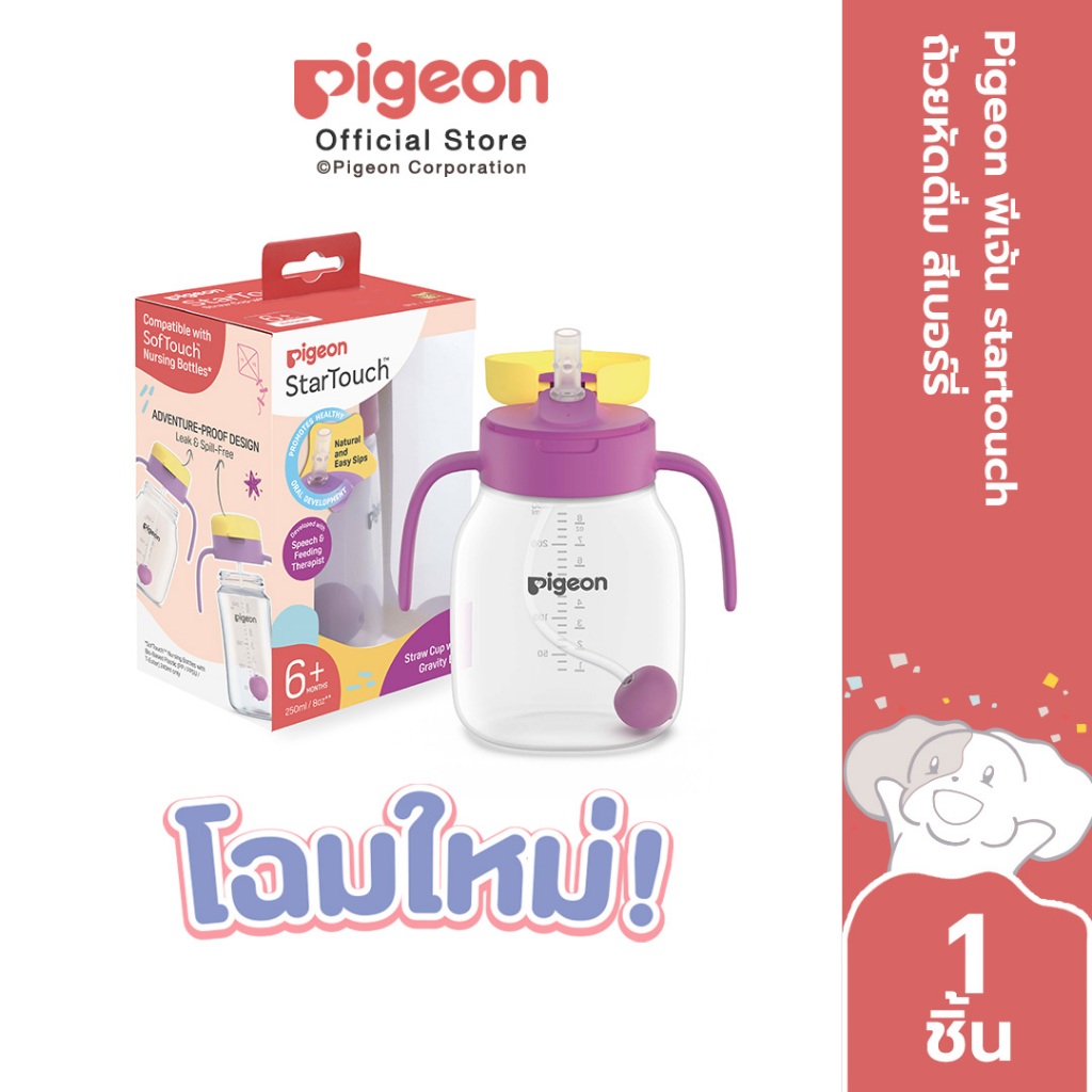 [ใหม่!] Pigeon พีเจ้น startouch ถ้วยหัดดื่ม & ฝา สีเหลือง/ ฟ้า/ ชมพู/ บับเบิ้ลกัม/ เบอร์รี่/ มินท์