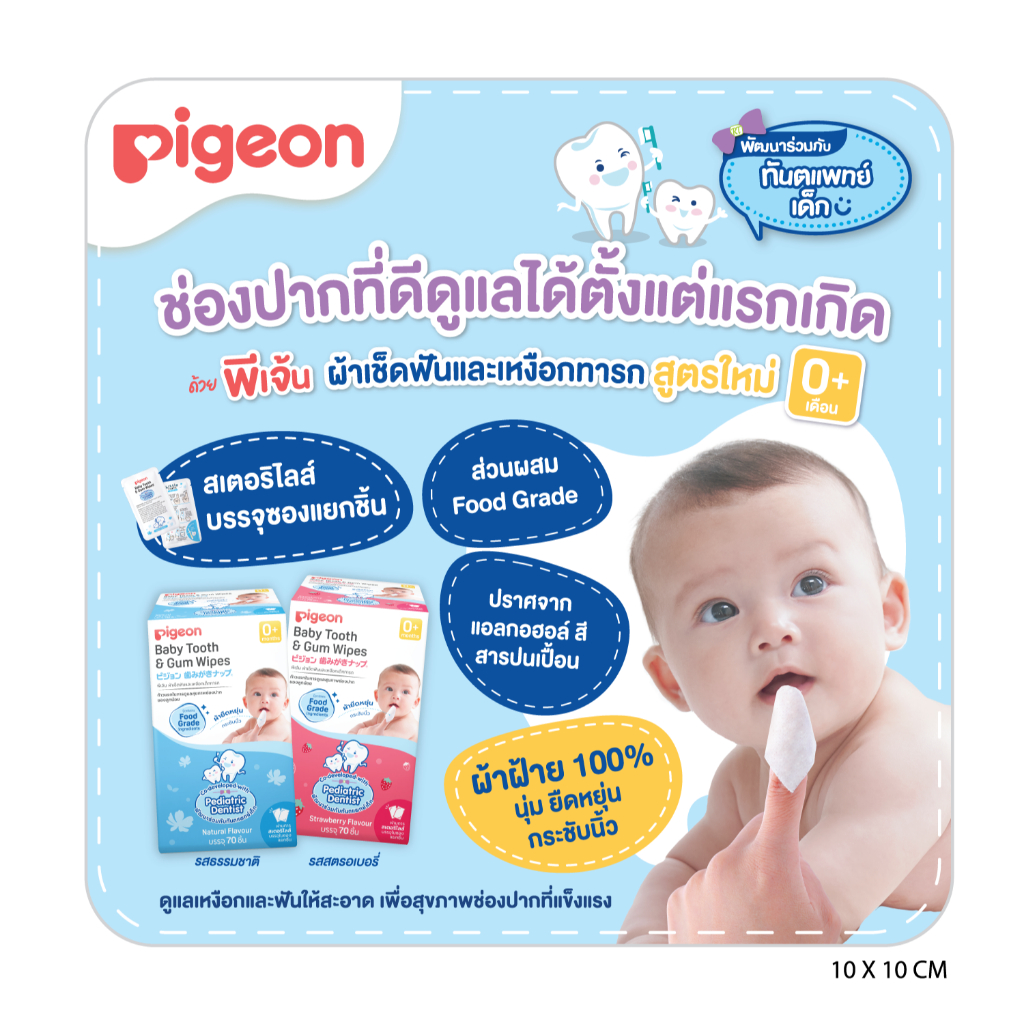 Pigeon พีเจ้น ผ้าเช็ดฟันเด็กทารก กลิ่นสตรอว์เบอร์รี/ธรรมชาติ จำนวน 70 ชิ้น