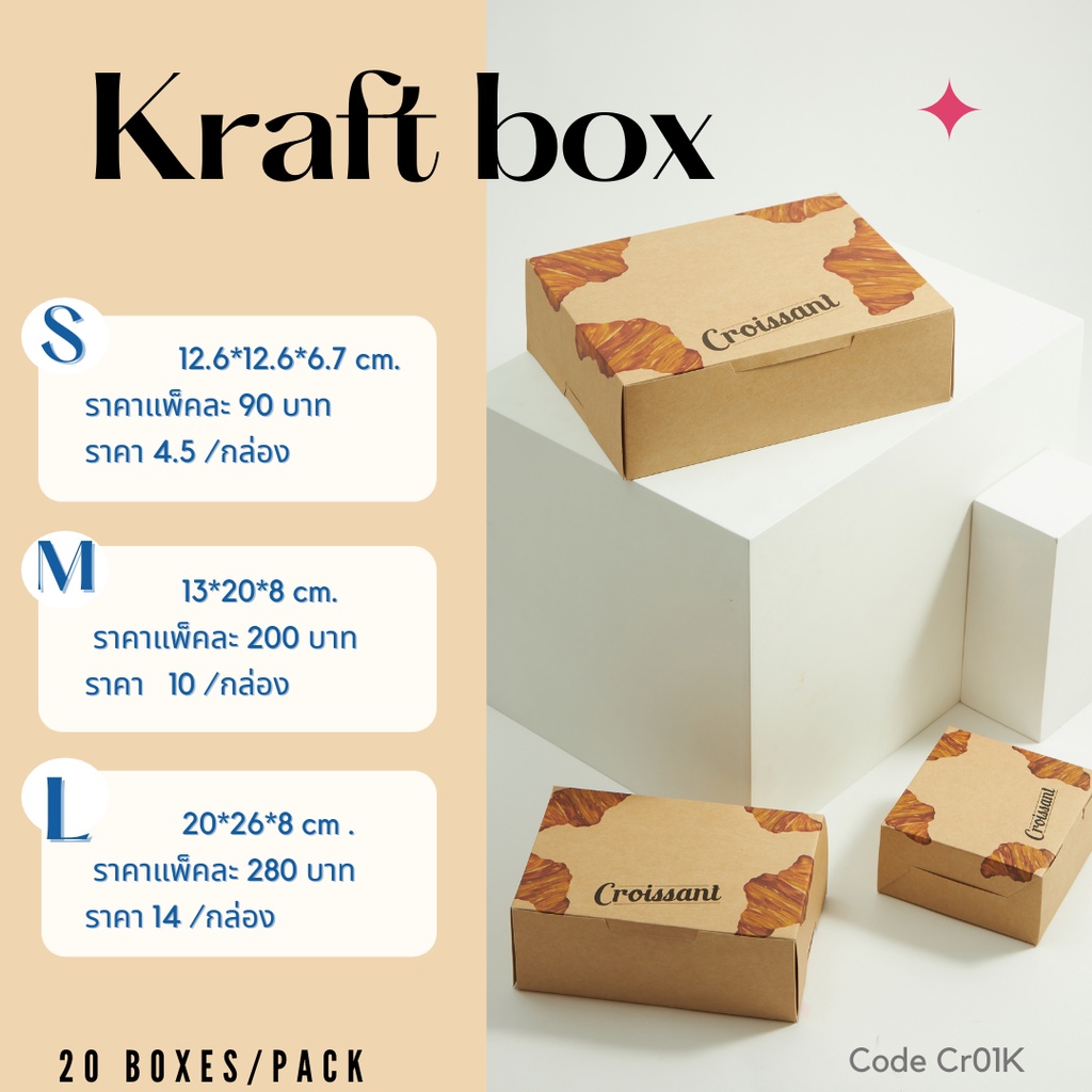 กล่องครัวซองต์ Croissant กล่องสูงไม่ชนขนม กล่องเบเกอรี่ กล่องขนม แพ็ค 20 ชิ้น - Boxlicious.th