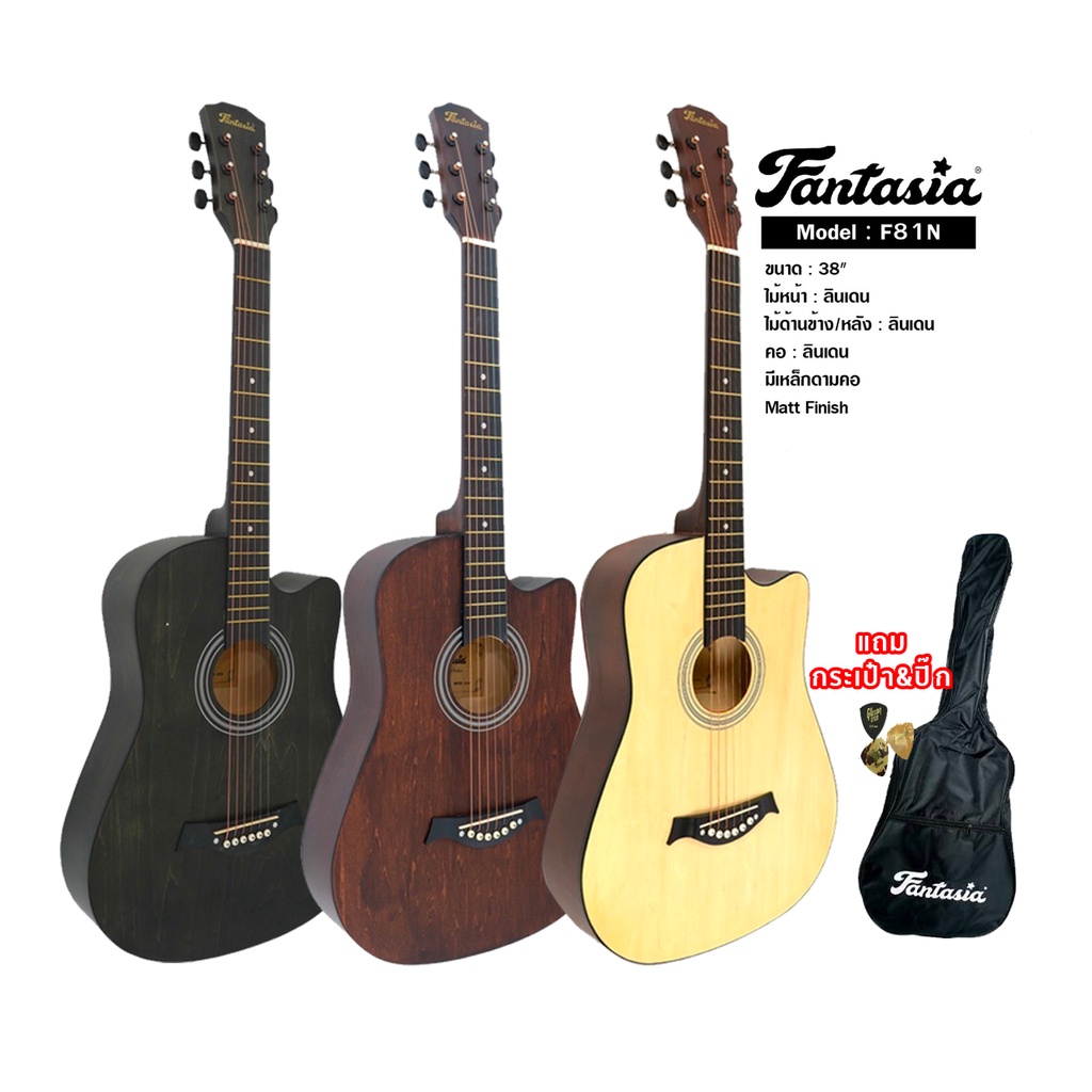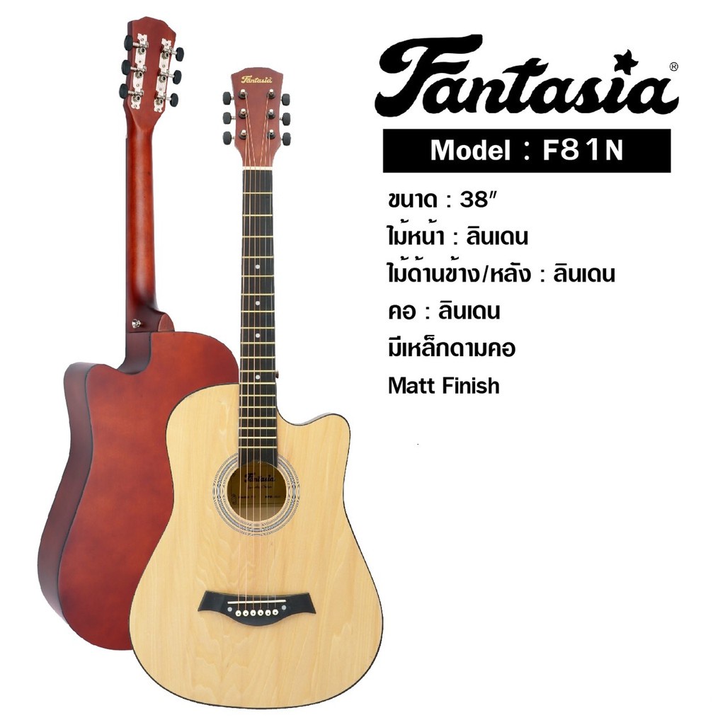 กีตาร์โปร่ง 38 นิ้ว Fantasia F81 + แถมกระเป๋า & ปิ๊กฟรี พร้อมส่ง 🚚 ส่งเร็ว 🚀