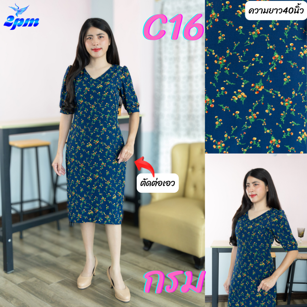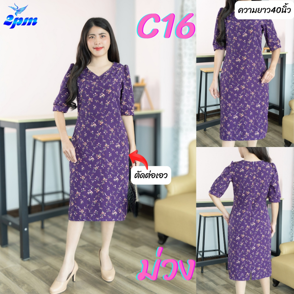 2PM (C16) เดรสแฟชั่น เดรสทำงานยาว40นิ้วมีซับใน ชุดทำงานสาวอวบ คอวีต่อเอวแขนรูด สาวไซส์อวบใส่ได้