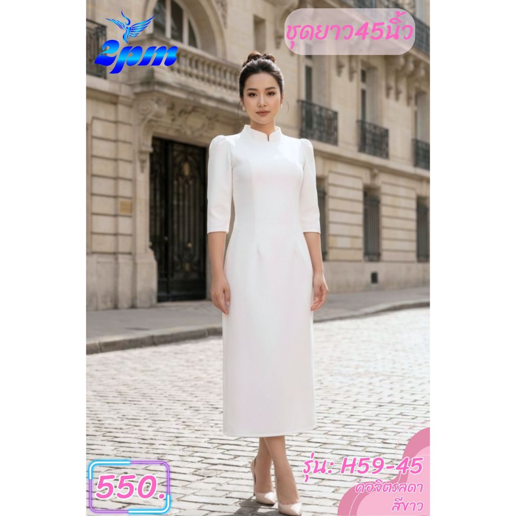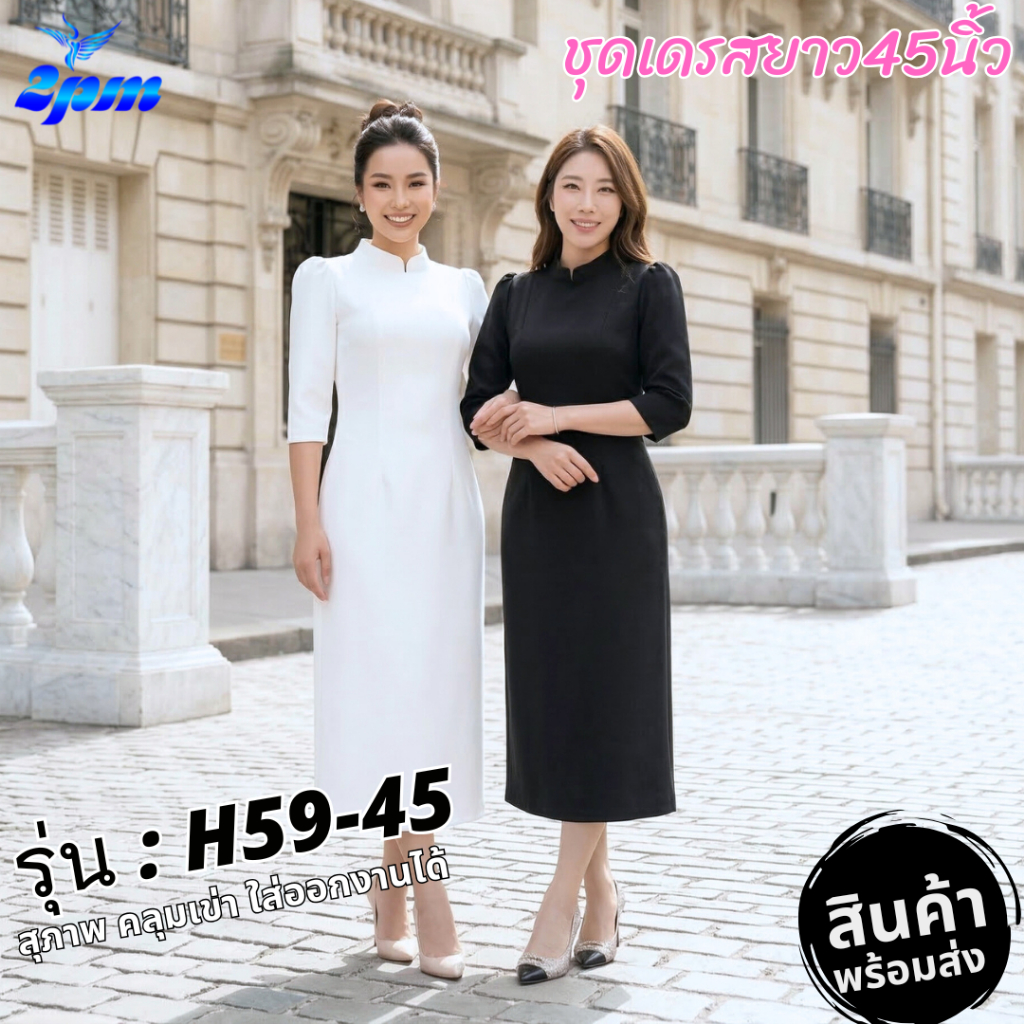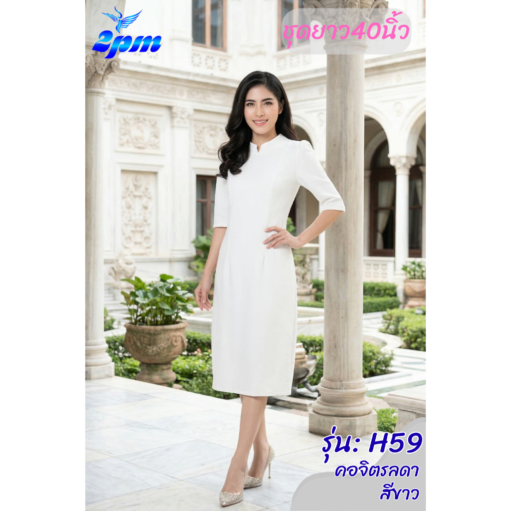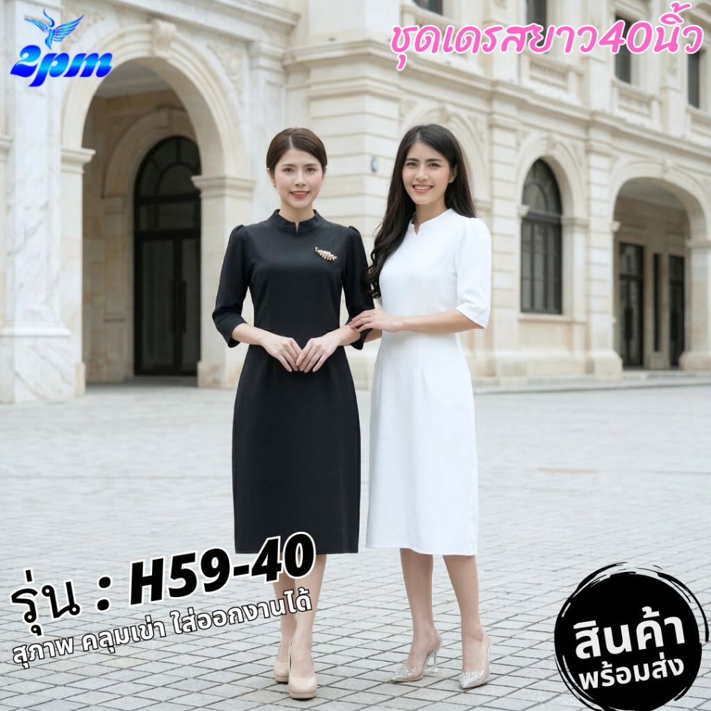 **พร้อมส่งวันนี้ 2PM (H59) เดรสสาวอวบ คอจิตรดา ผ้าหนามีซับใน ยาว40 กับ ยาว45นิ้ว สาวอวบใส่ได้