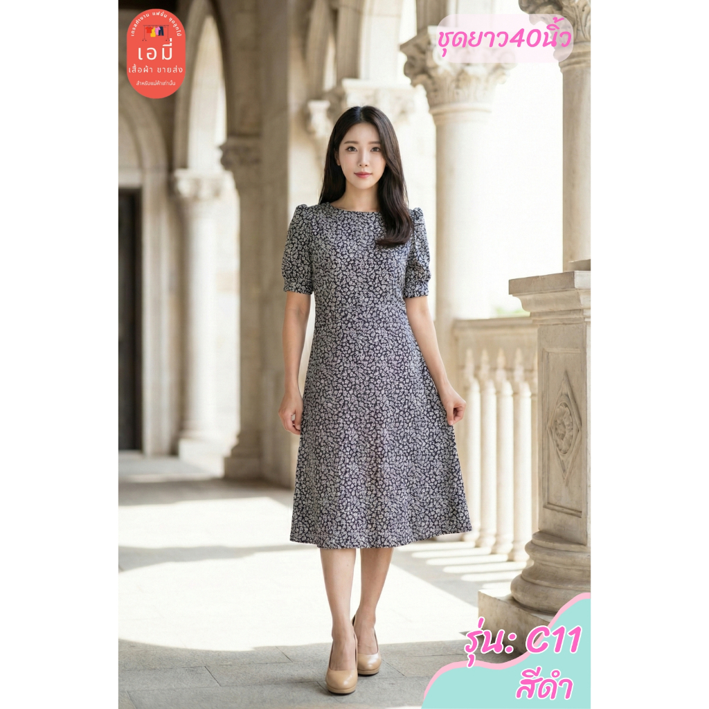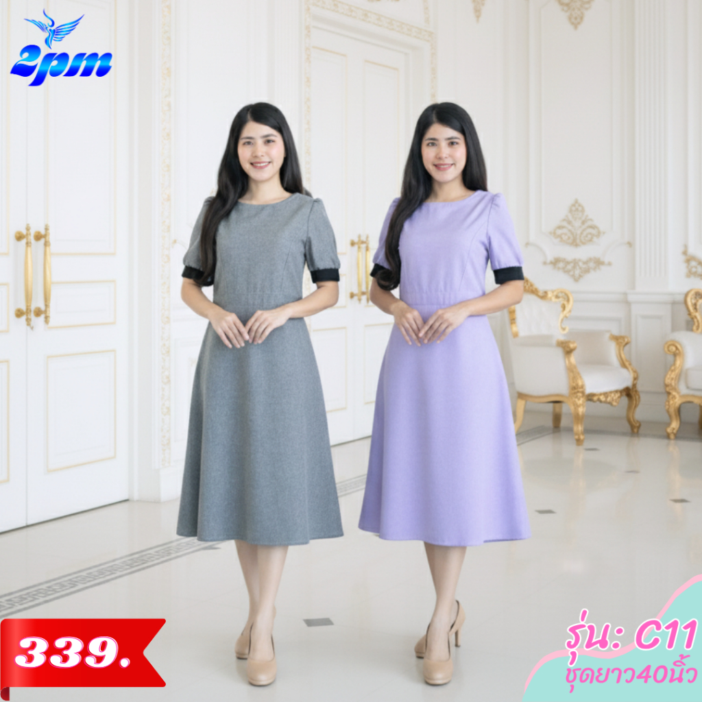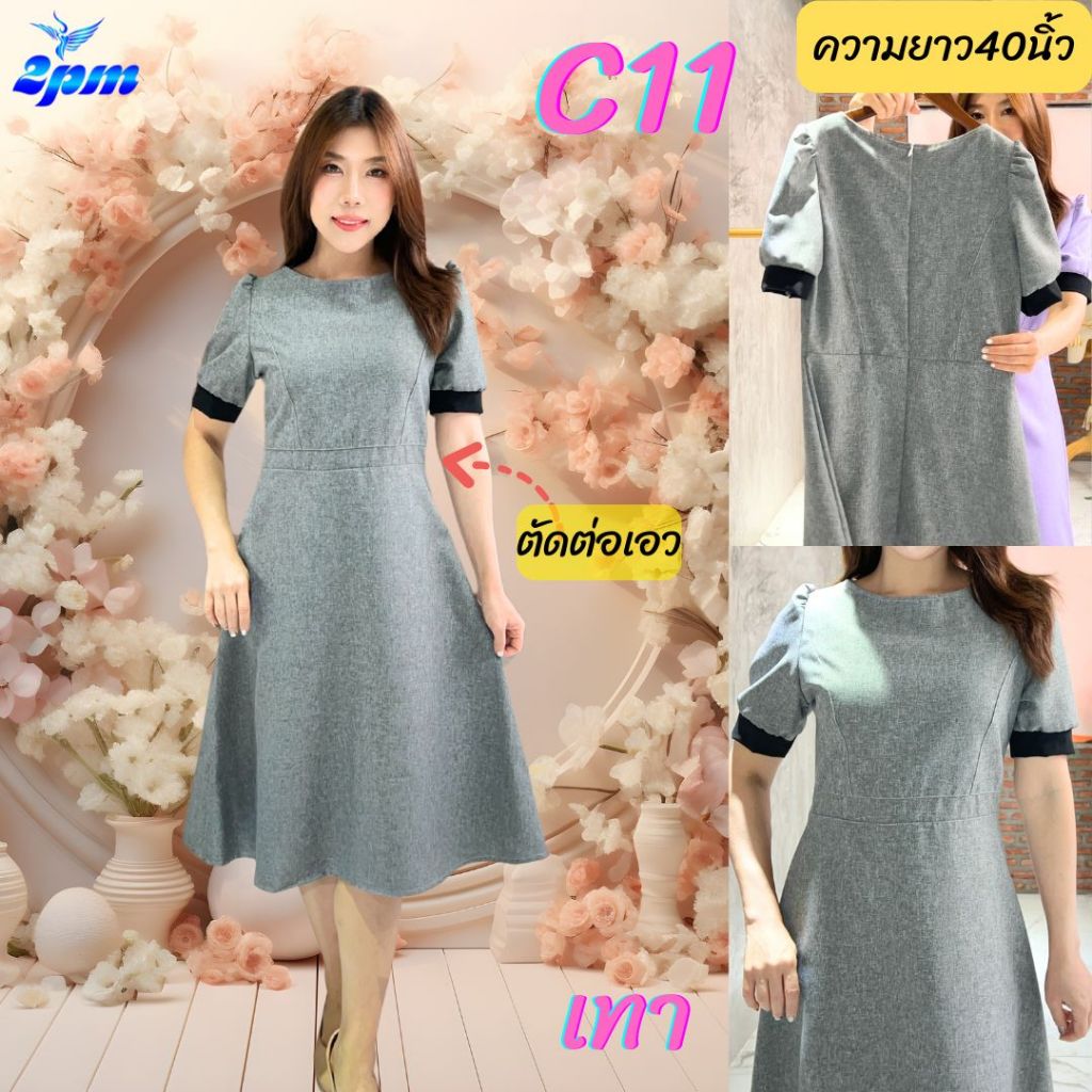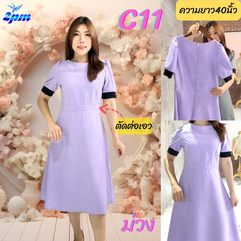 2PM (C11) เดรสแฟชั่น เดรสทำงานยาว40นิ้ว ตัดต่อเอว กระโปรงทรงเอ มีซับใน สาวไซส์อวบใส่ได้