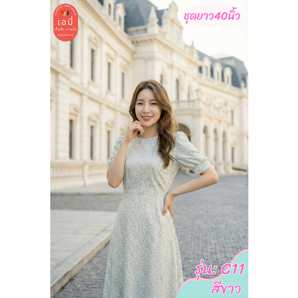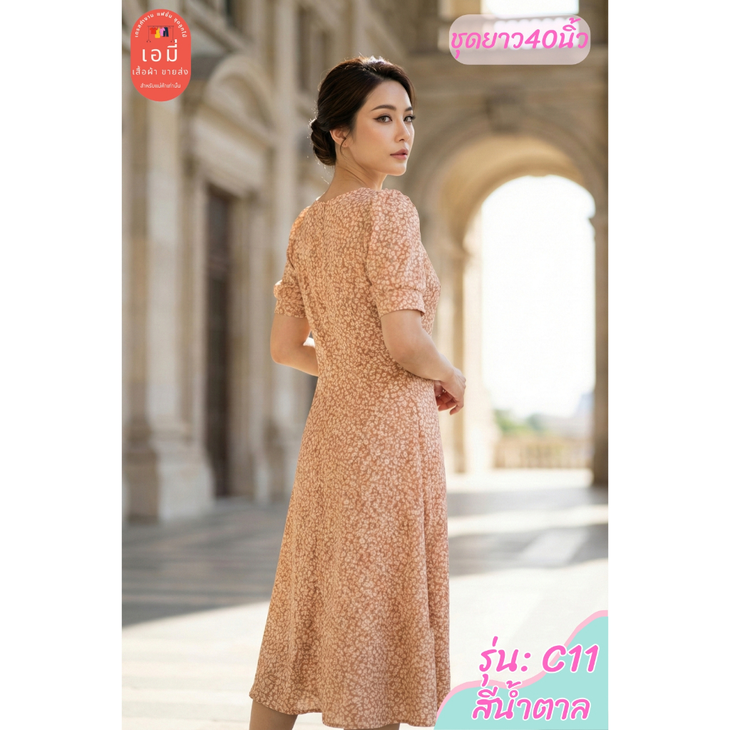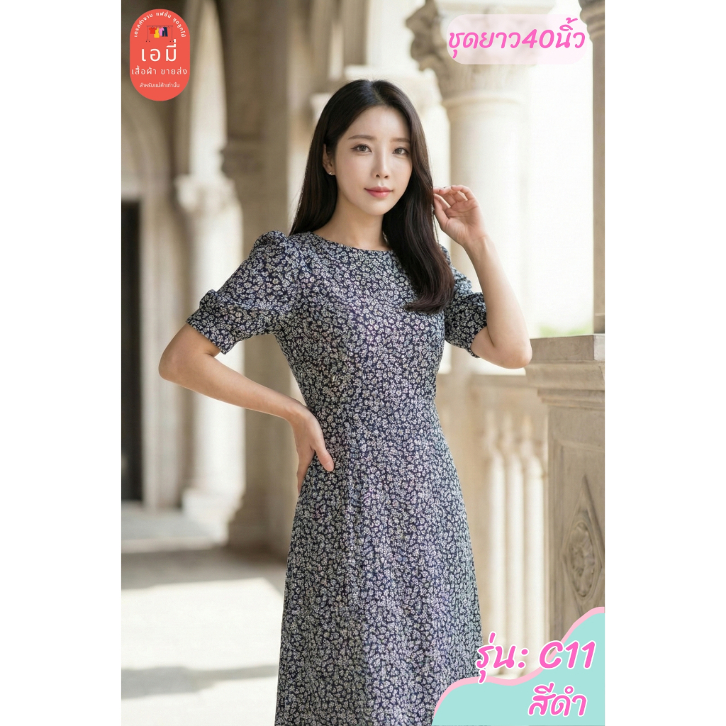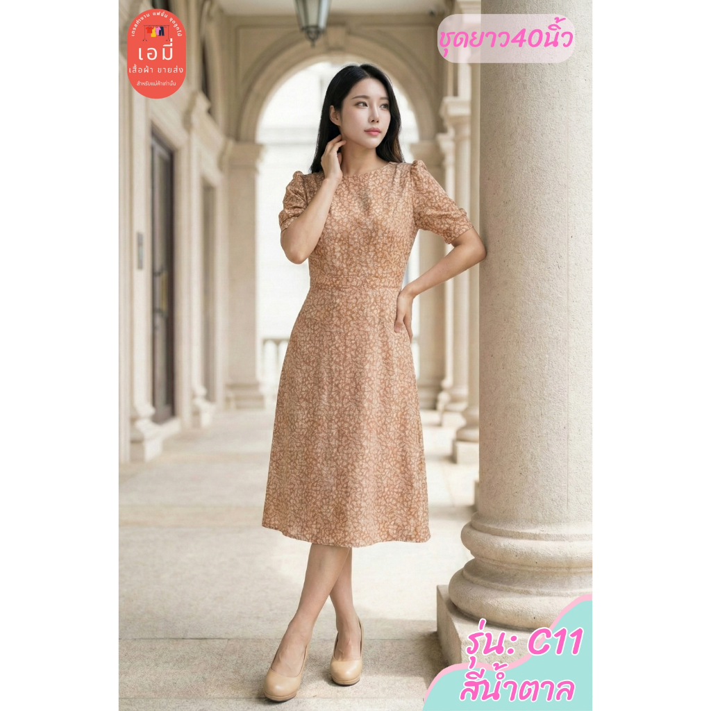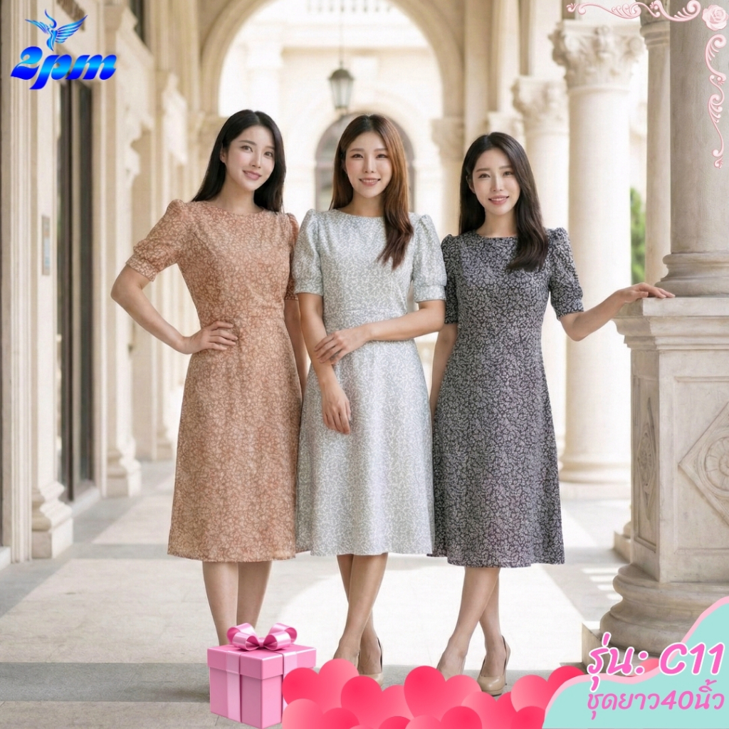 2PM (C11) เดรสแฟชั่น เดรสทำงานยาว40นิ้ว ตัดต่อเอว กระโปรงทรงเอ มีซับใน สาวไซส์อวบใส่ได้
