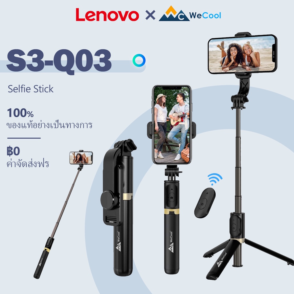 Lenovo Earbuds x WeCool S3 ไม้เซลฟี่บลูทูธไร้สายพร้อมรีโมทไร้สายแบบถอดได้ 3 in 1 ฟังก์ชั่นขาตั้งขาตั้งกล้องที่ทนทานและขาตั้งมือถือ