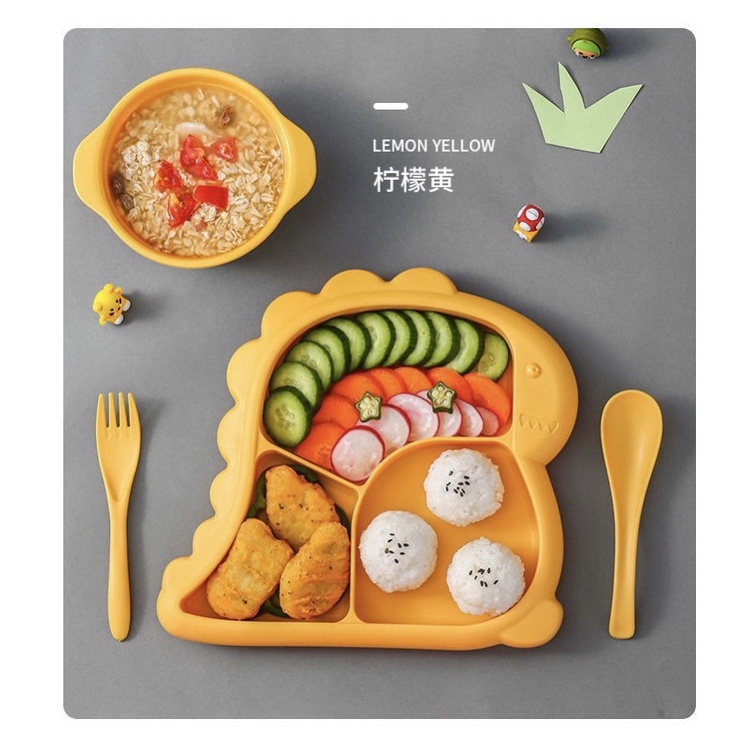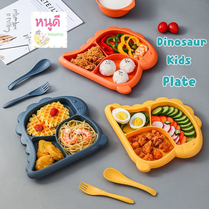 เซตจานไดโนเสาร์ (4ชิ้น) เซตจานเด็ก จานหลุม จานเด็ก