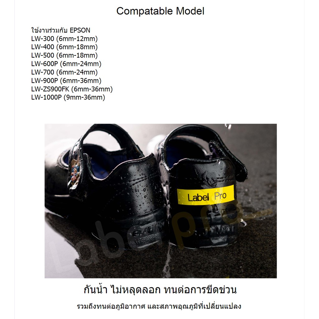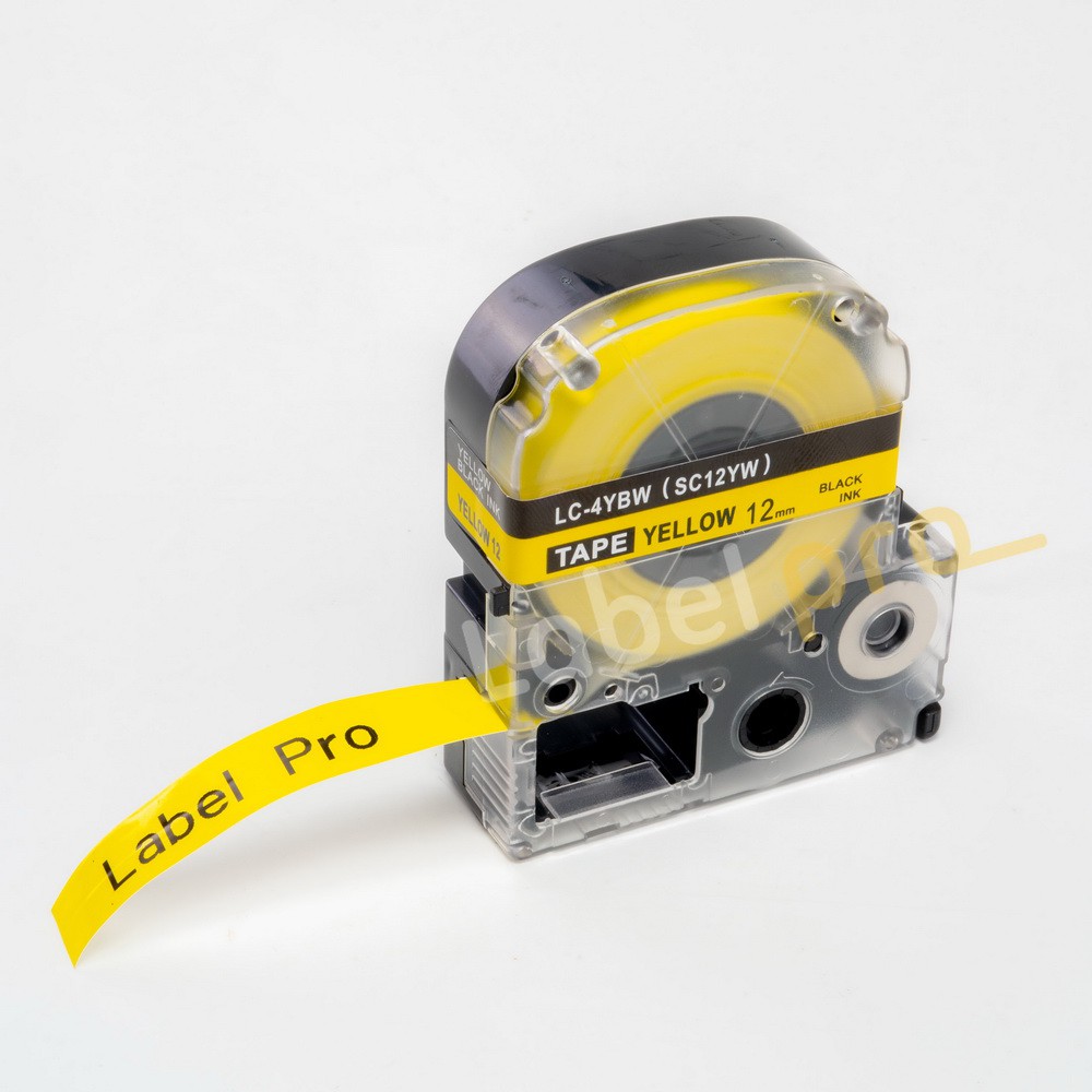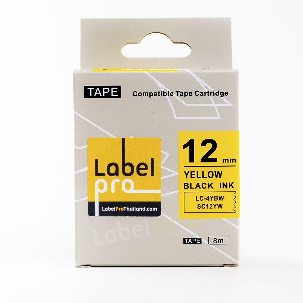 Epson เทปพิมพ์ อักษร ฉลาก เทียบเท่า Label Pro LK-4YBP LK4YBP LK 4YBP by Officelink (LC-4YBW) 12 มม. พื้นเหลือง-อักษรดำ