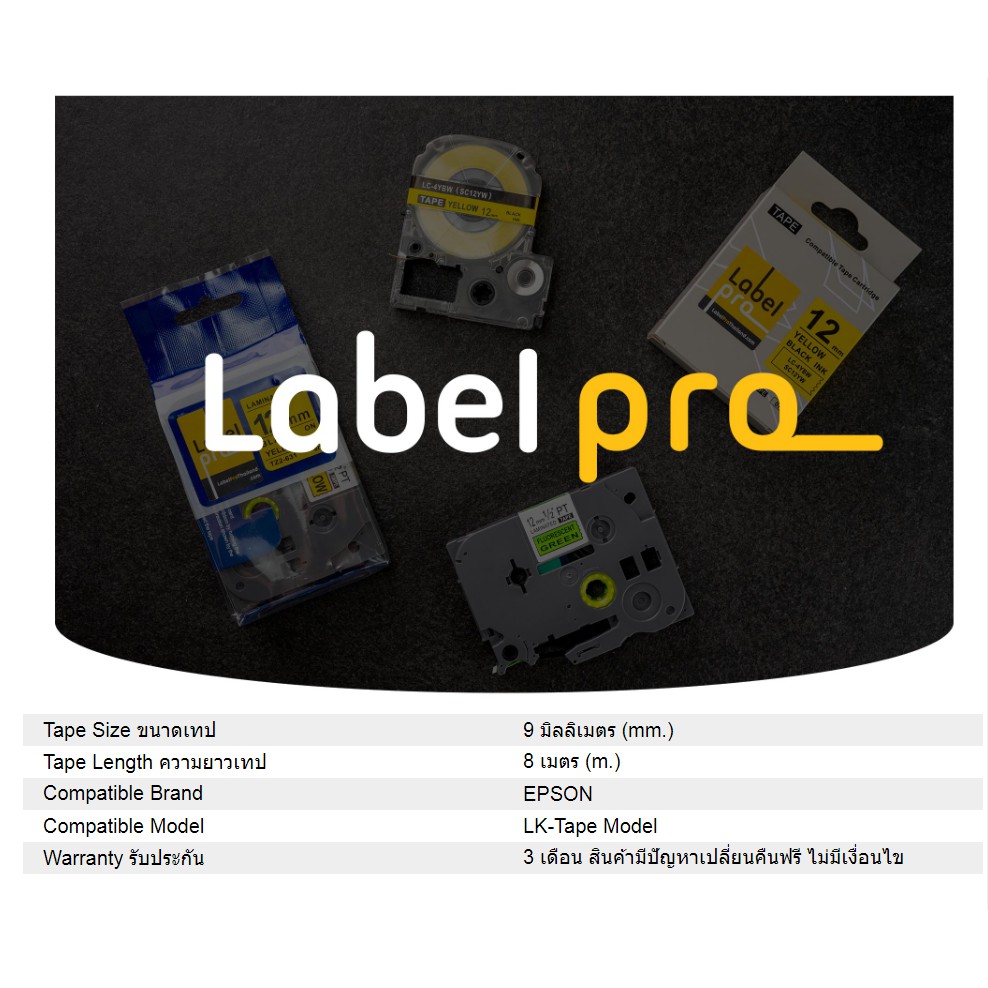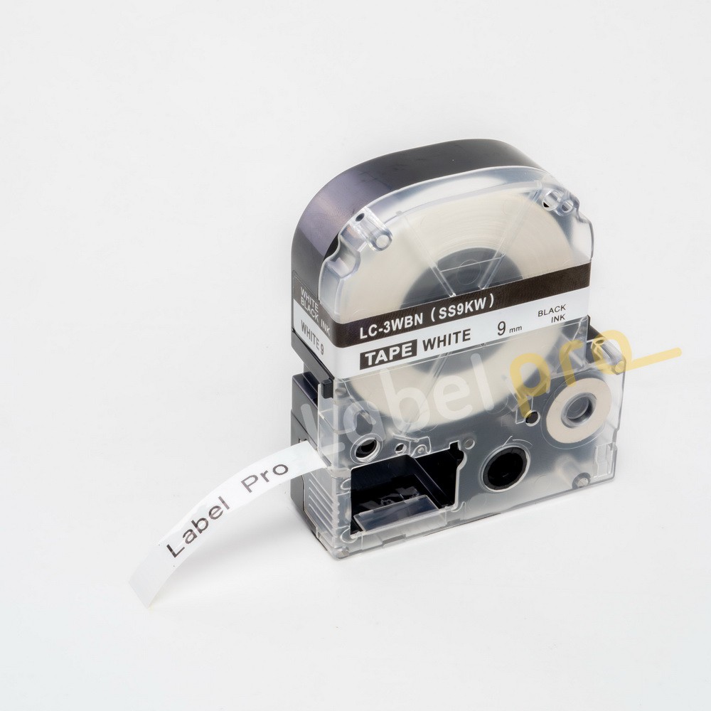 Epson เทปพิมพ์ อักษร ฉลาก เทียบเท่า Label Pro LK-3WBN LK3WBN LK 3WBN (LC-3WBN) 9 มม. พื้นสีขาวอักษรสีดำ