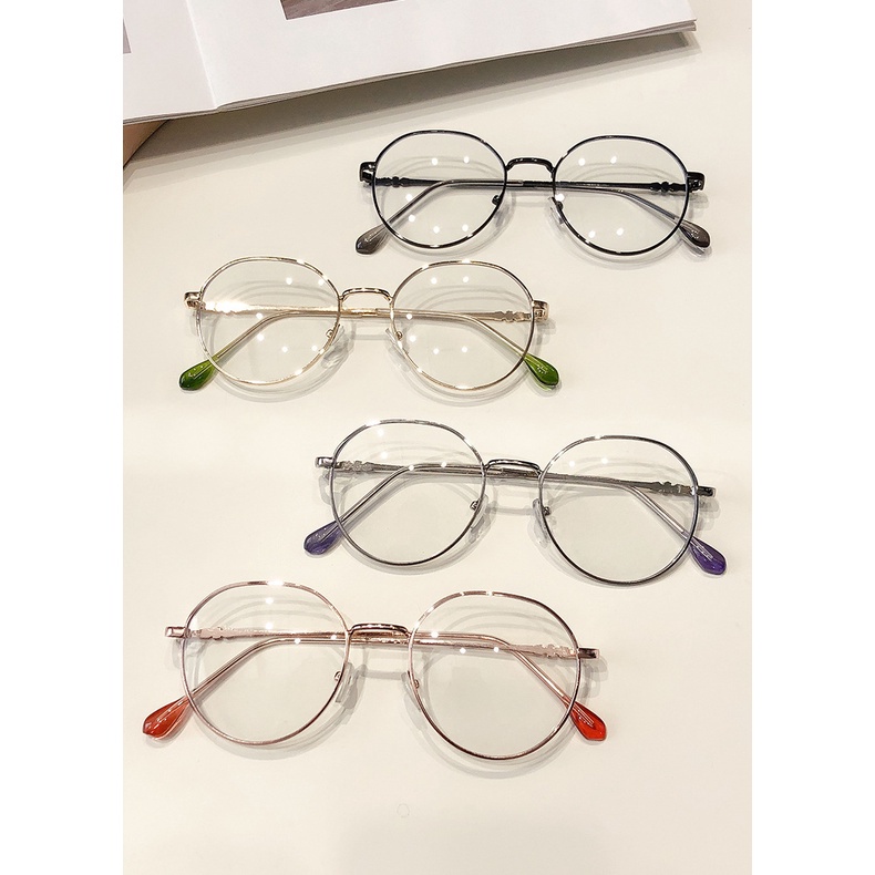 [จัดส่งในกทม] แฟชั่นเกาหลี แว่นกรองแสง ป้องกันแสงสีฟ้า คุณภาพสูง กรอบแว่นโลหะทรงกลม น่ารัก ดูเล็ก เครื่องประดับแฟชั่น