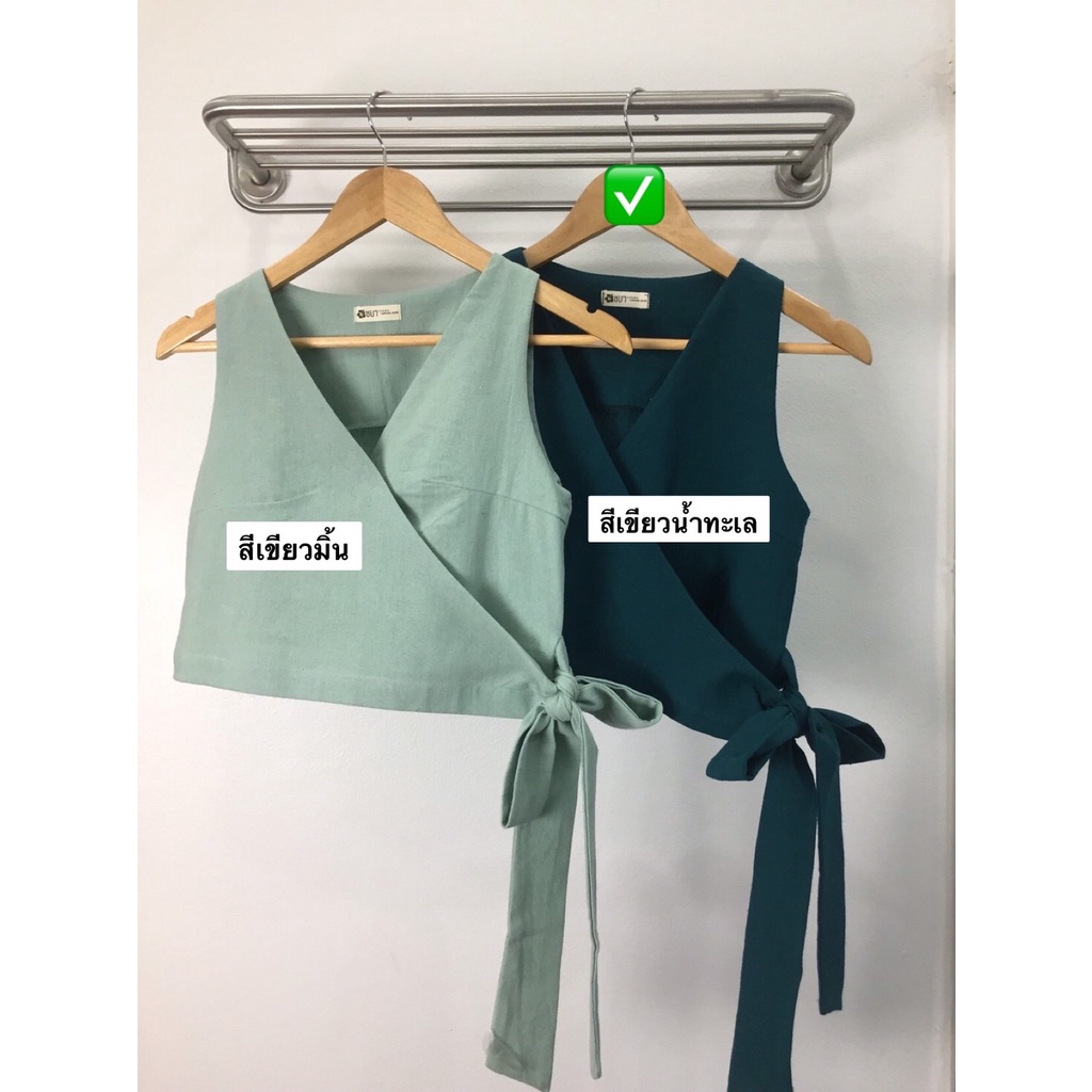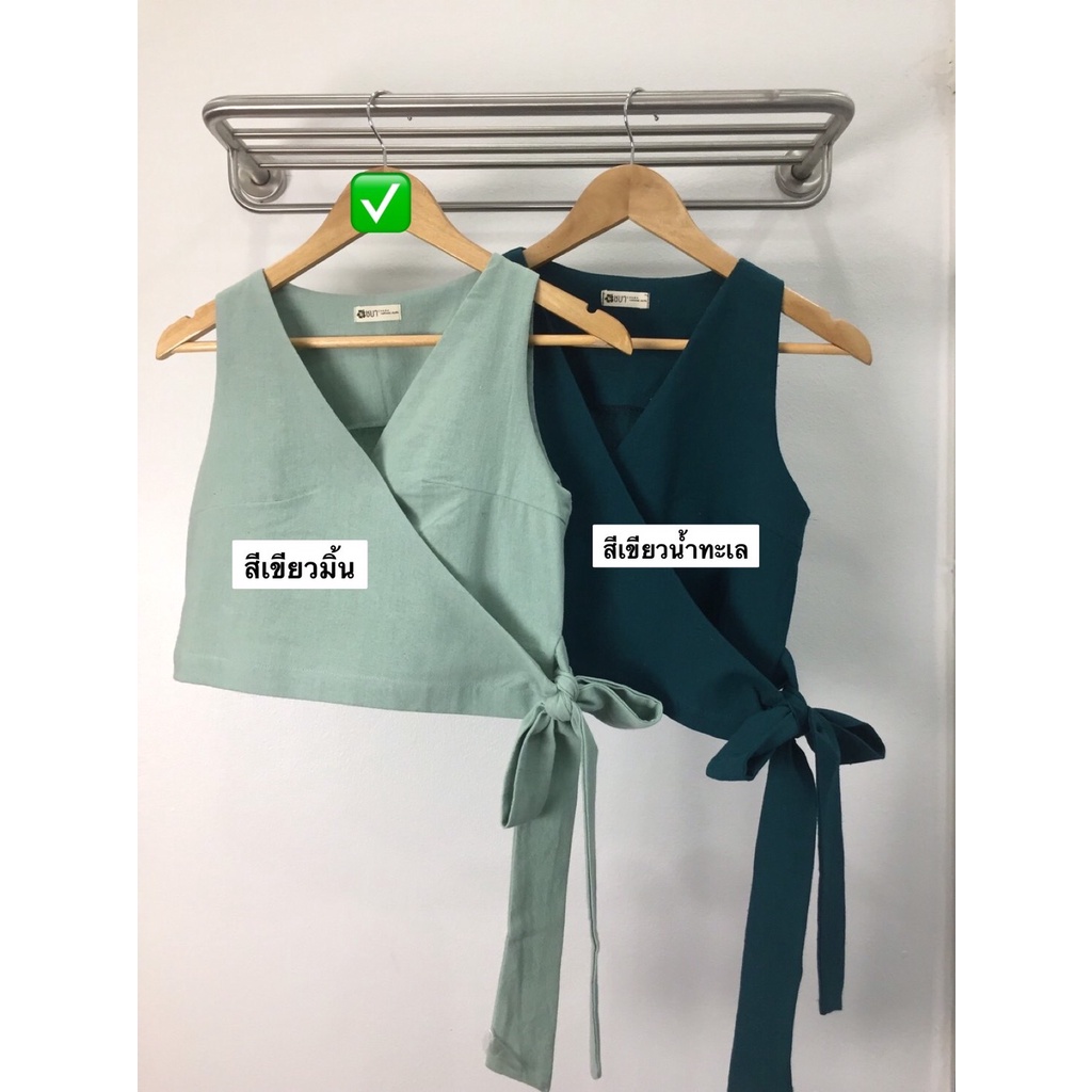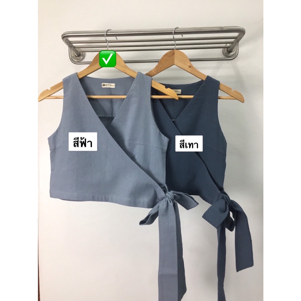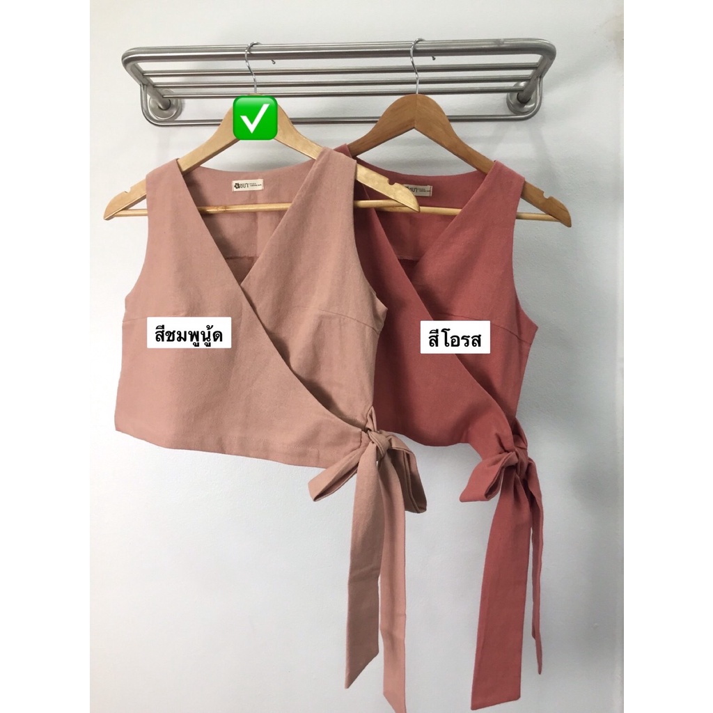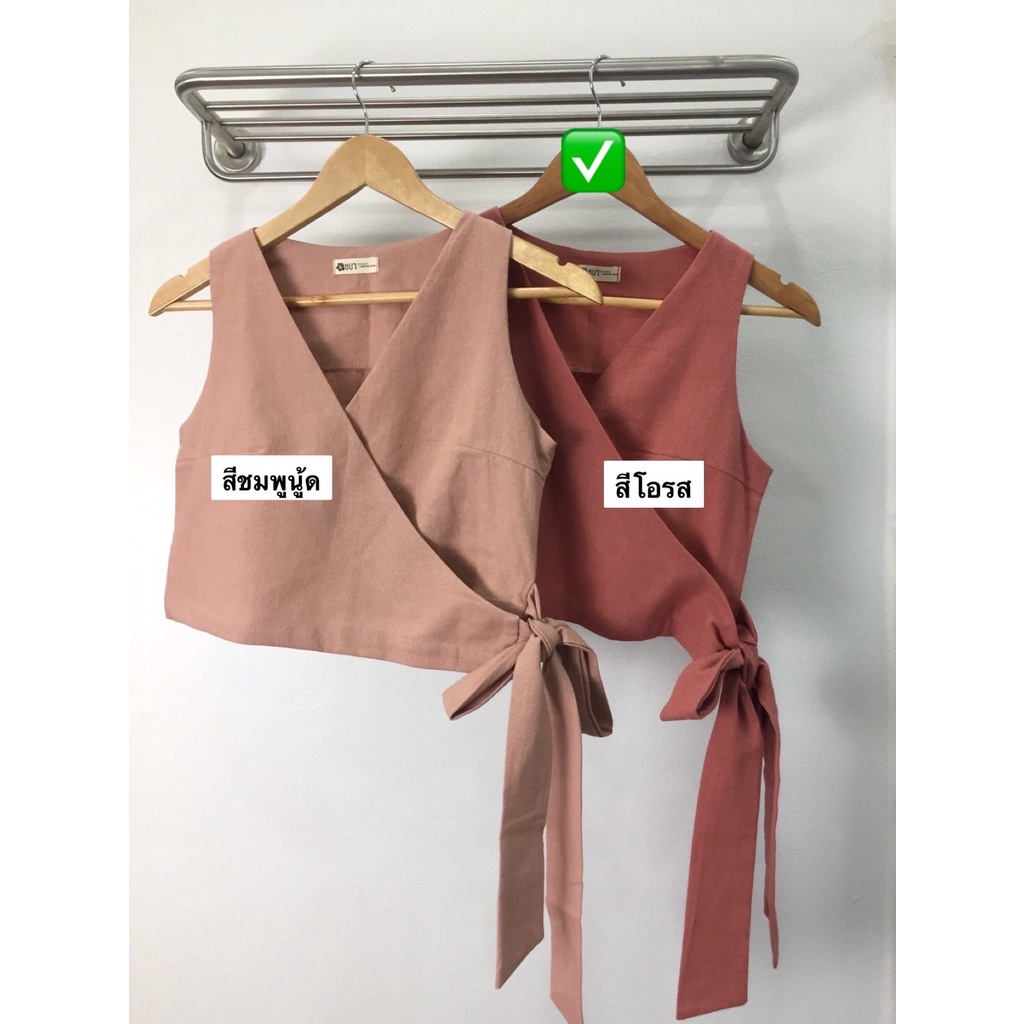 เสื้อ WRAP TOP แขนกุด,ผูกเอว,คอวี,ผ้าฝ้าย,ผ้าฝ้ายชบา