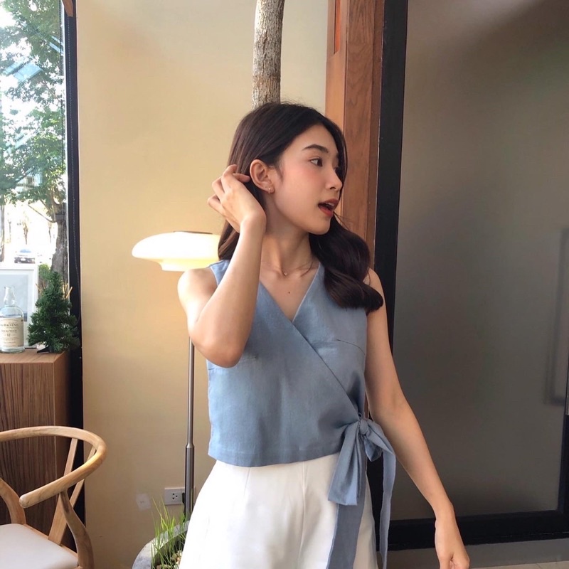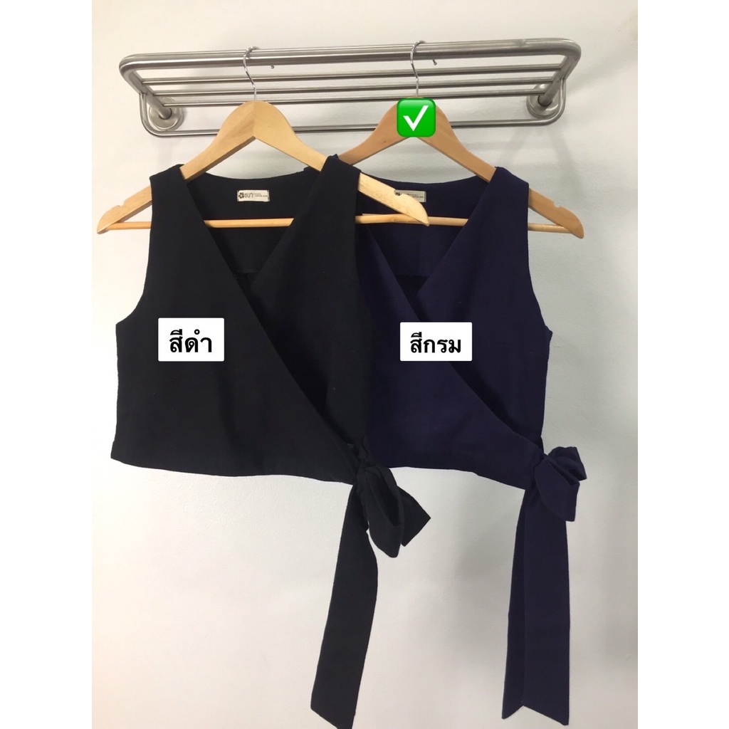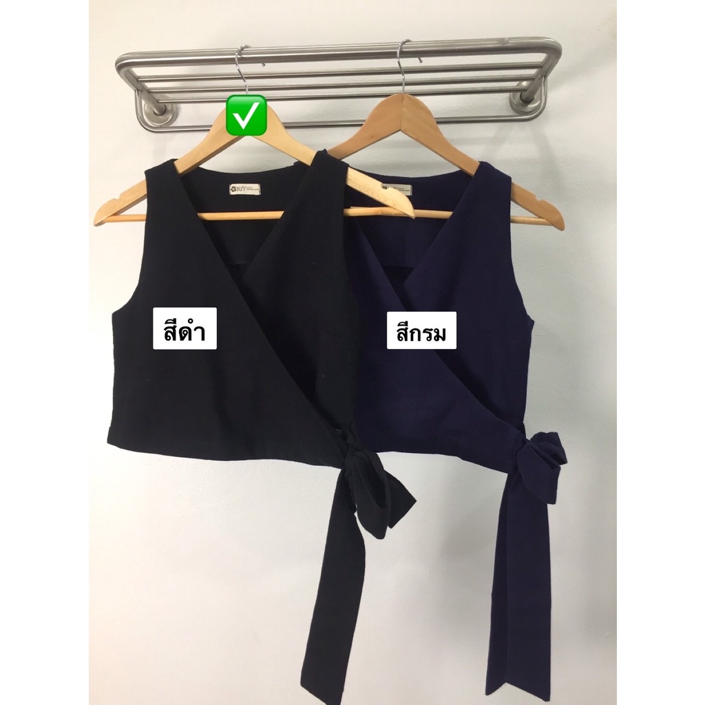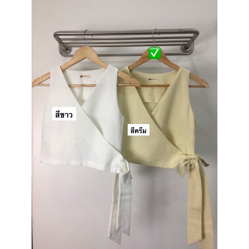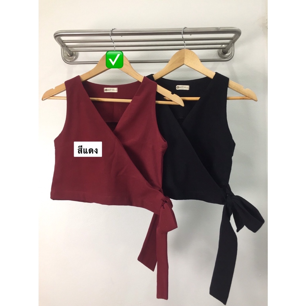 เสื้อ WRAP TOP แขนกุด,ผูกเอว,คอวี,ผ้าฝ้าย,ผ้าฝ้ายชบา
