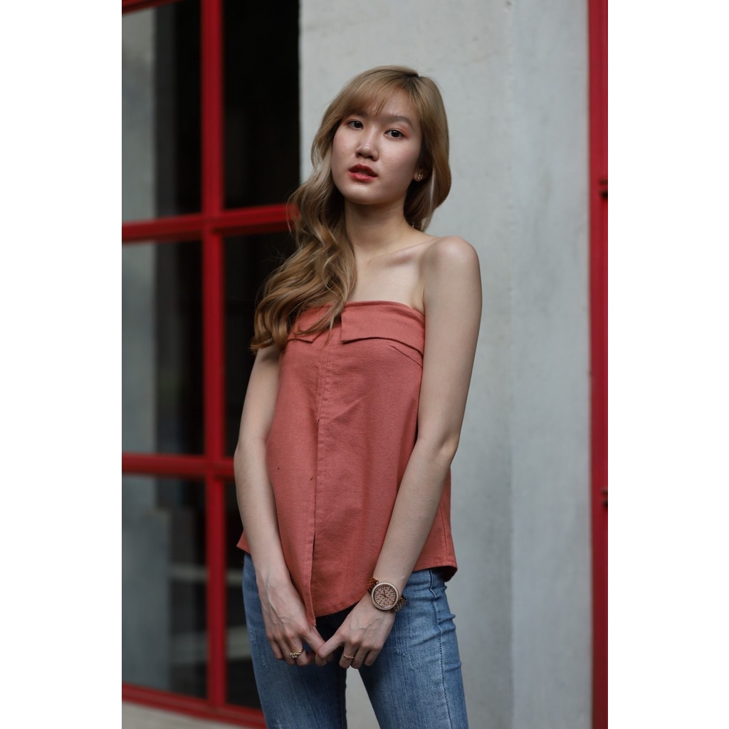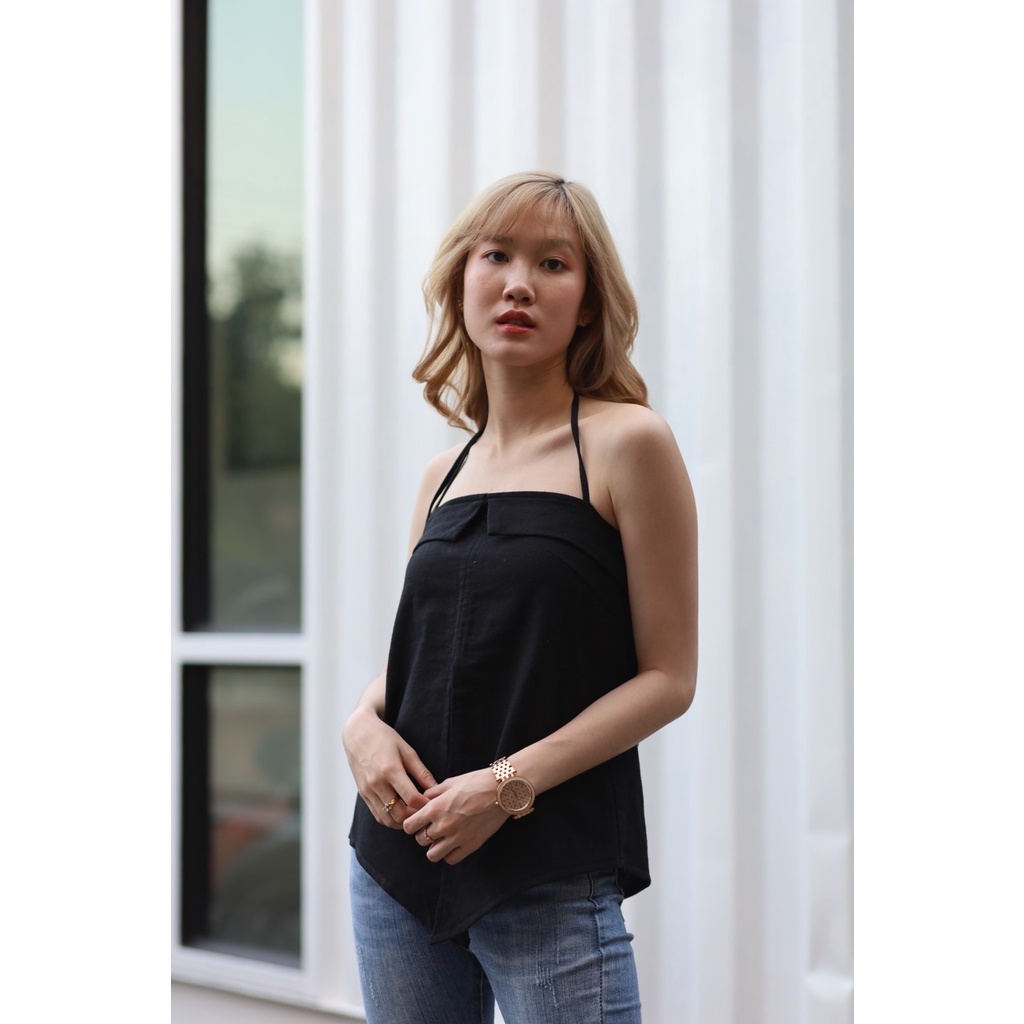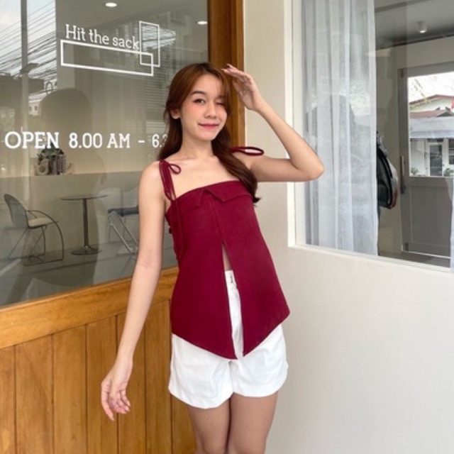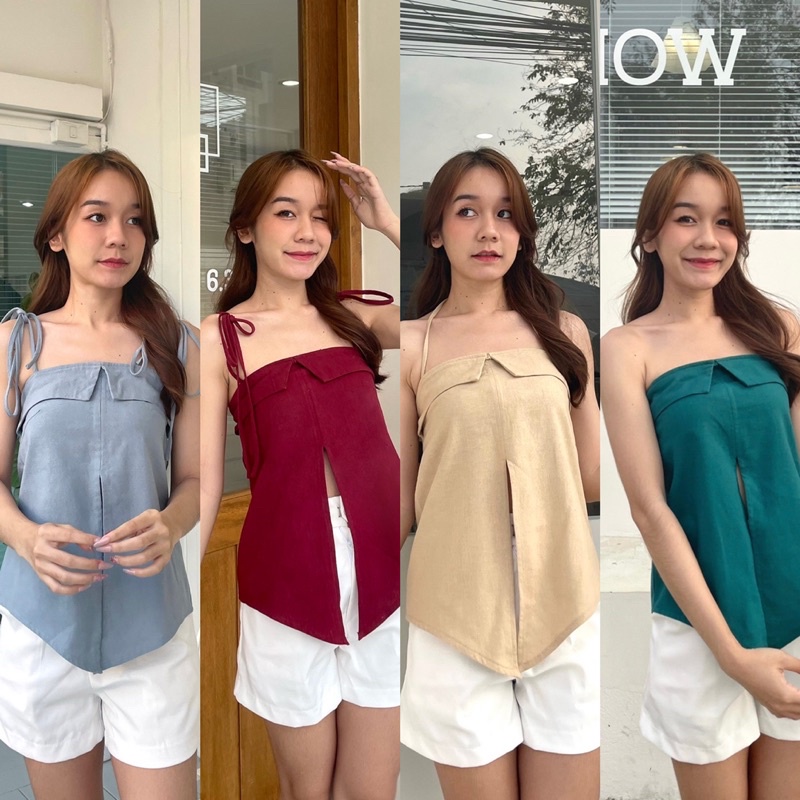 เสื้อสปาเกตตี้,สายเดี่ยว,เกาะอก,คล้องคอ,ผ้าฝ้าย,ผ้าฝ้ายชบา,มินิมอล,สีพื้น