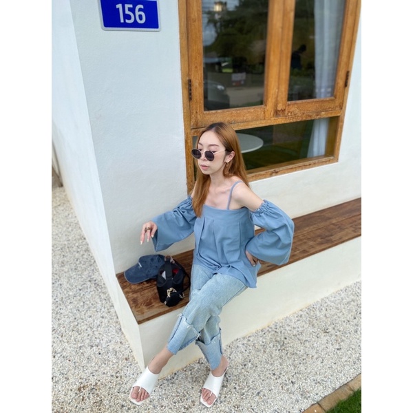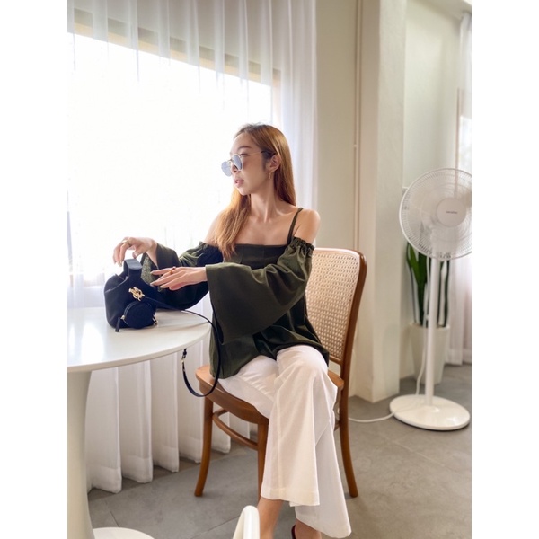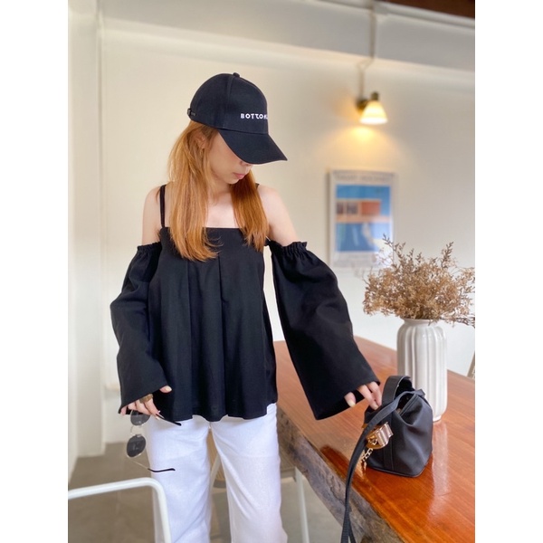 เสื้อสายเดี่ยว แขนยาว,ผ้าฝ้าย,สายเดี่ยว,เกาะไหล่,คอเหลี่ยม,แขนยาว