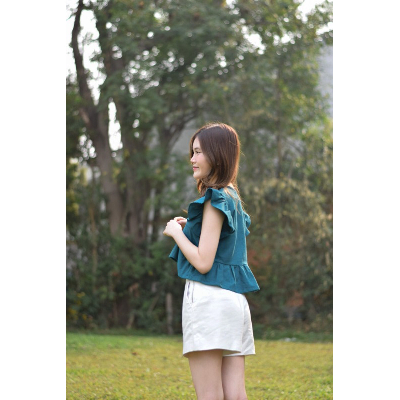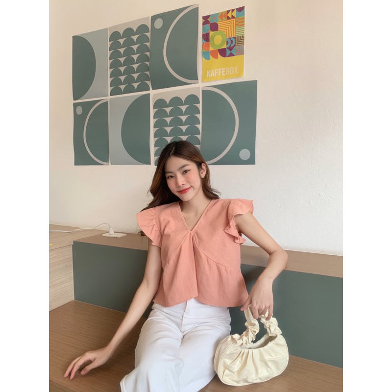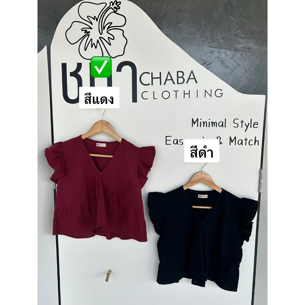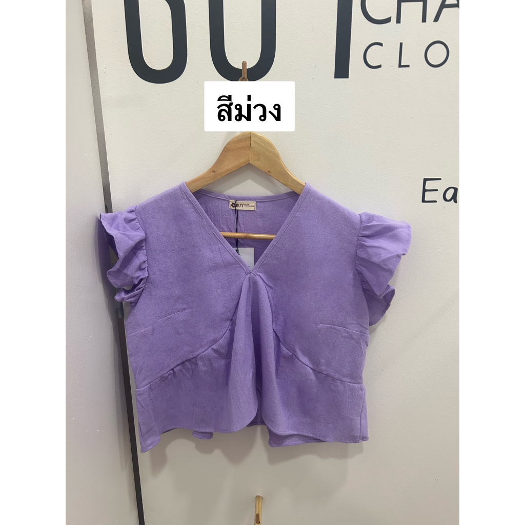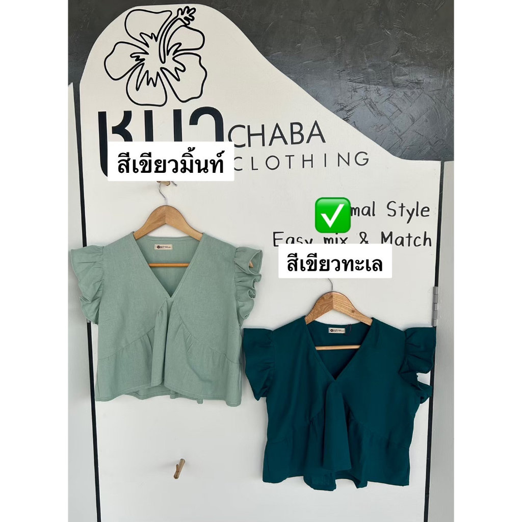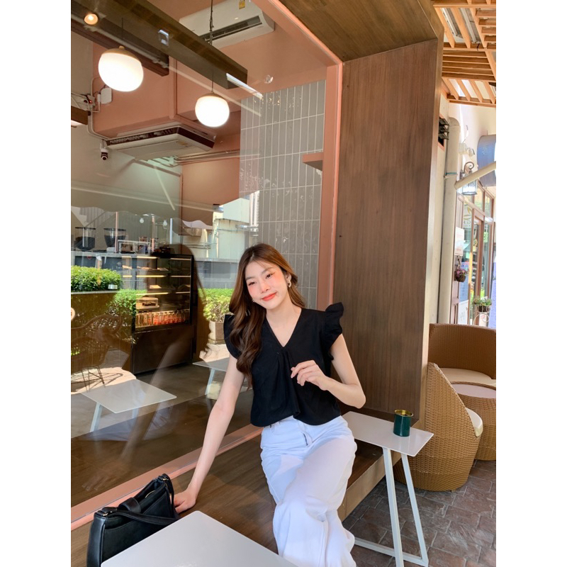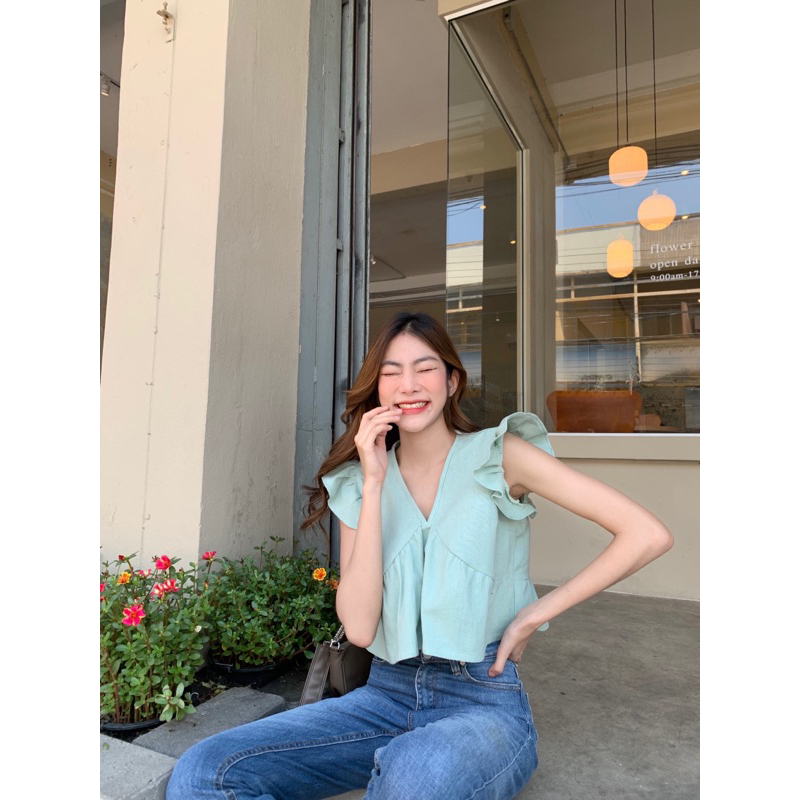 เสื้อแขนกุด ระบาย รุ่น flower,คอวีระบาย,ครอป,ลอน,มินิมอล,เกาหลี,สีพื้น