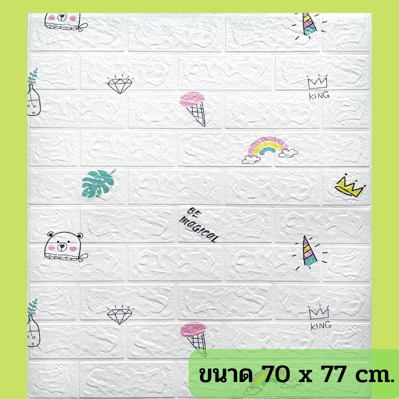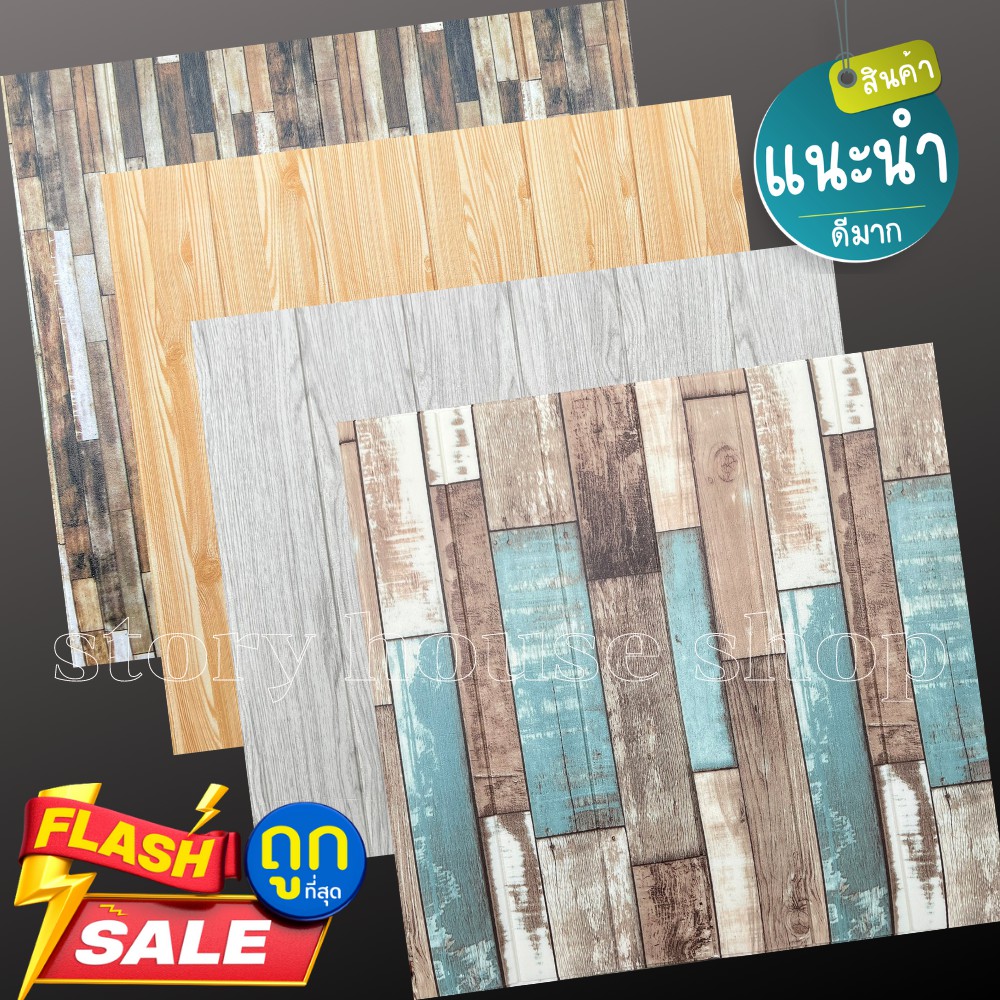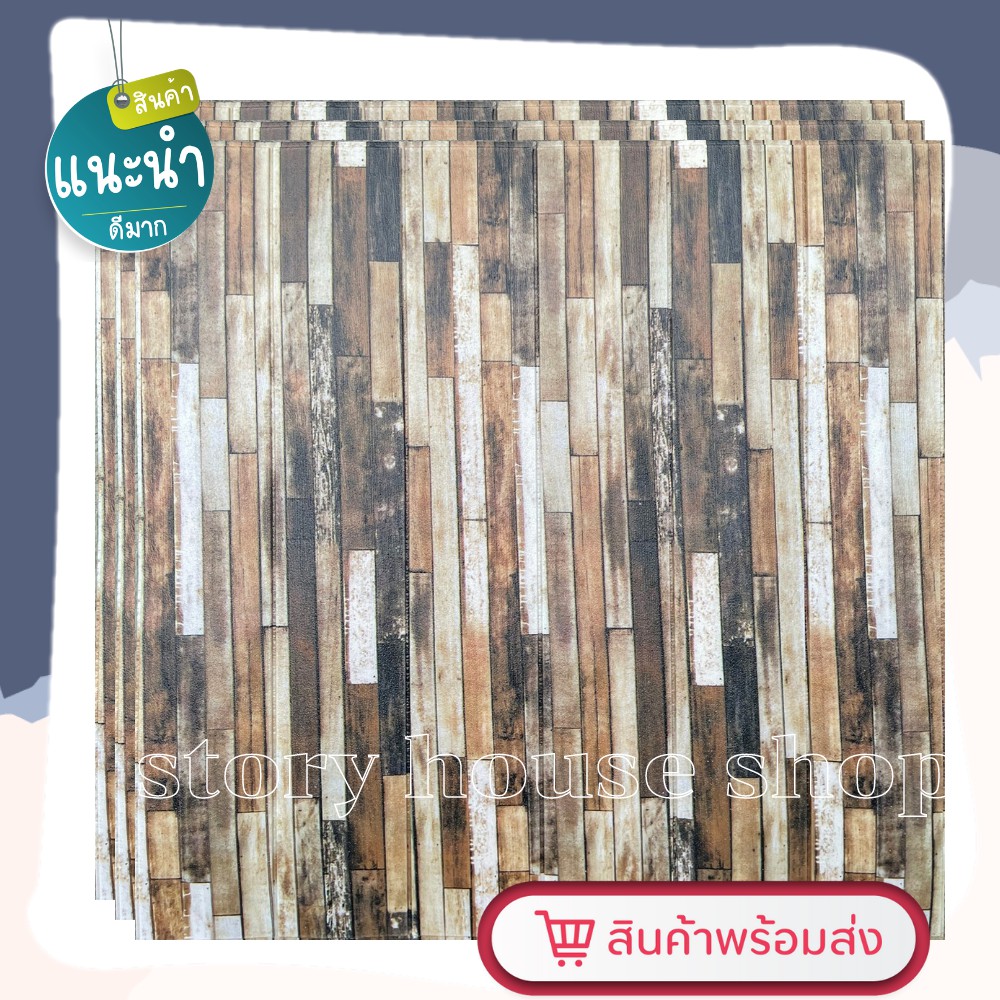 วอลล์เปเปอร์ลายไม้ สามมิติ 3D wallpaper แผ่นใหญ่ มีกาวในตัว 70*77cm