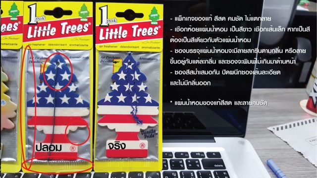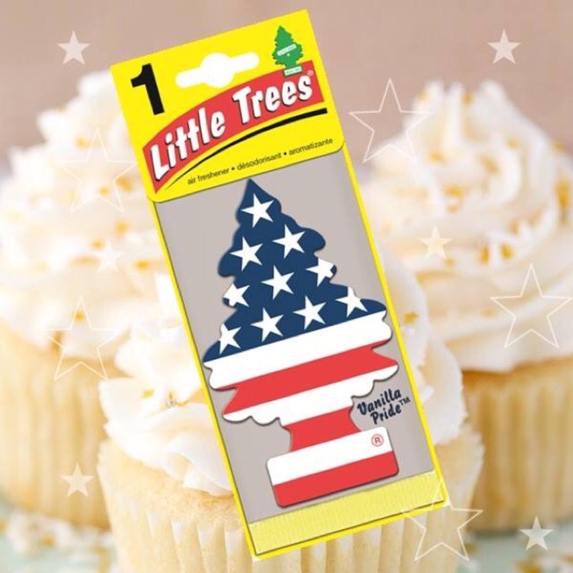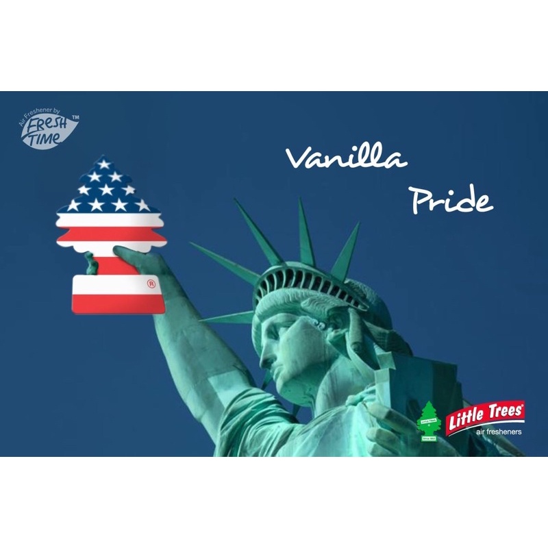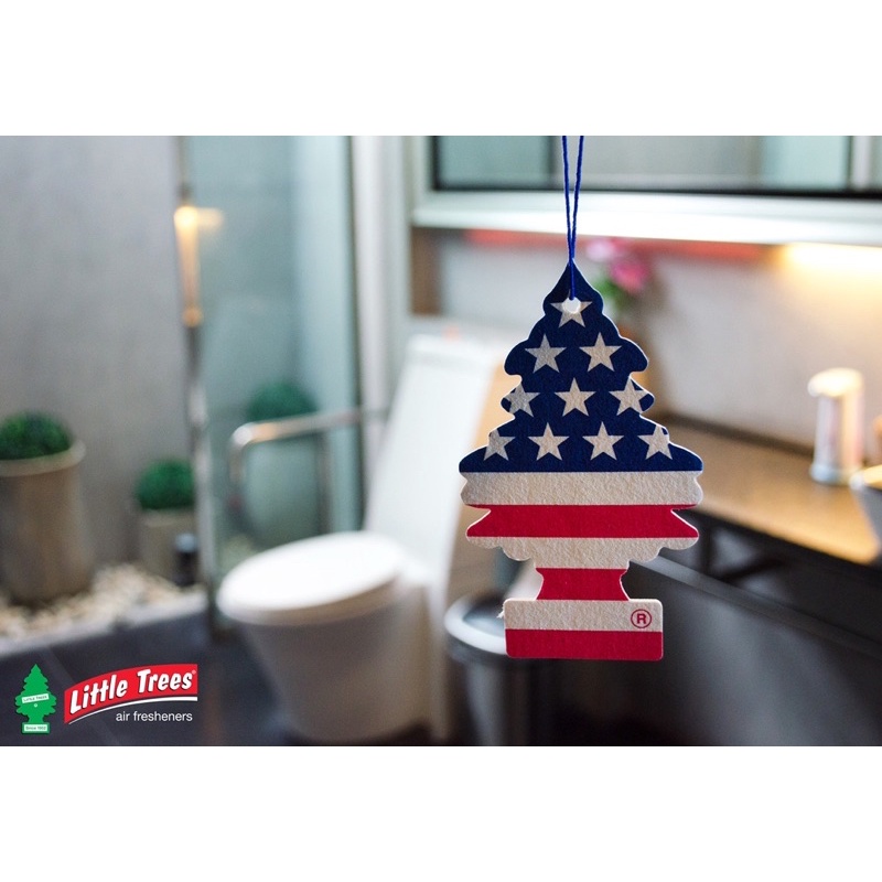 น้ำหอมปรับอากาศ Little Trees แผ่นน้ำหอม รูปต้นสน ลิขสิทธิ์ของแท้ กลิ่น วนิลาไพร์ด ลา ยธงอเมริกา