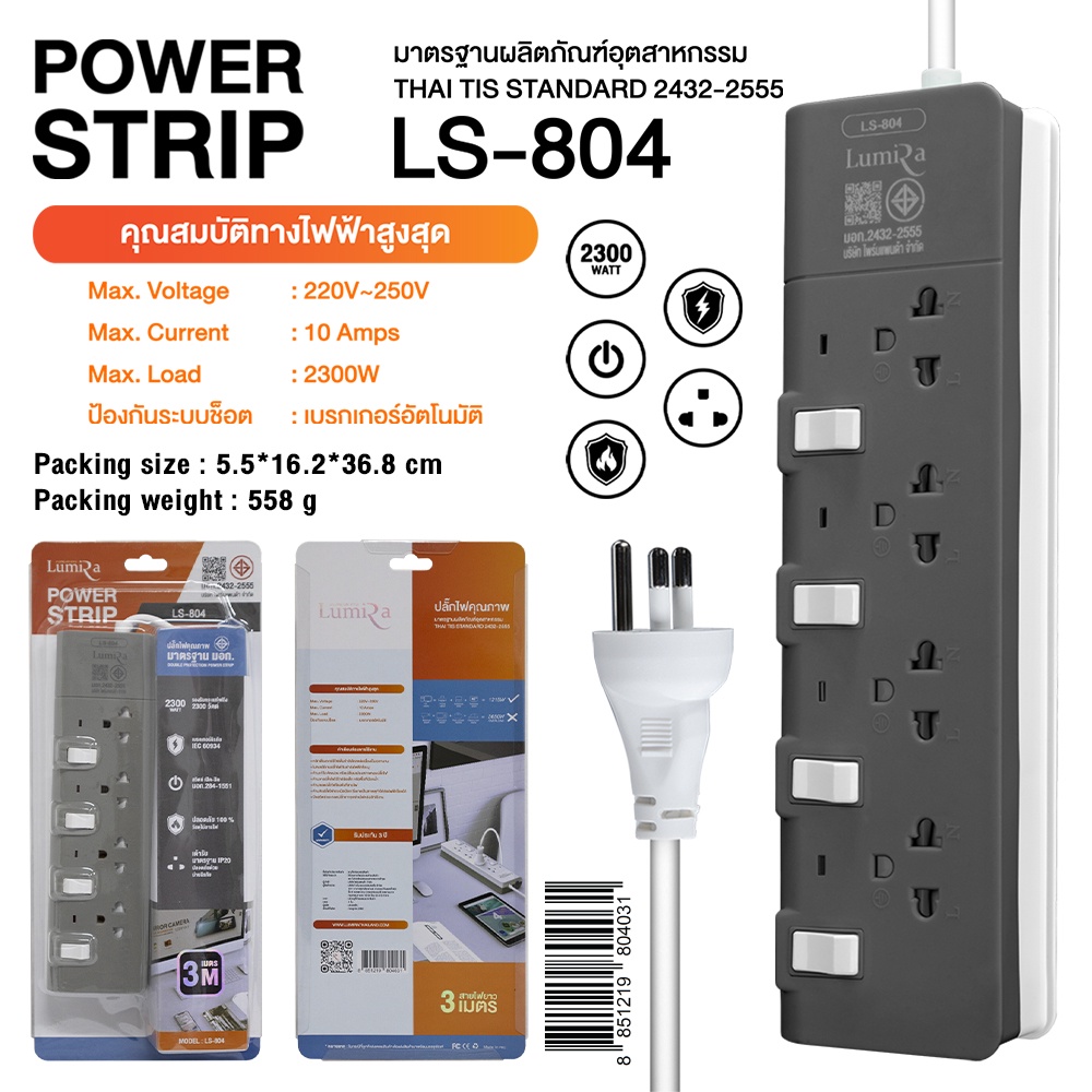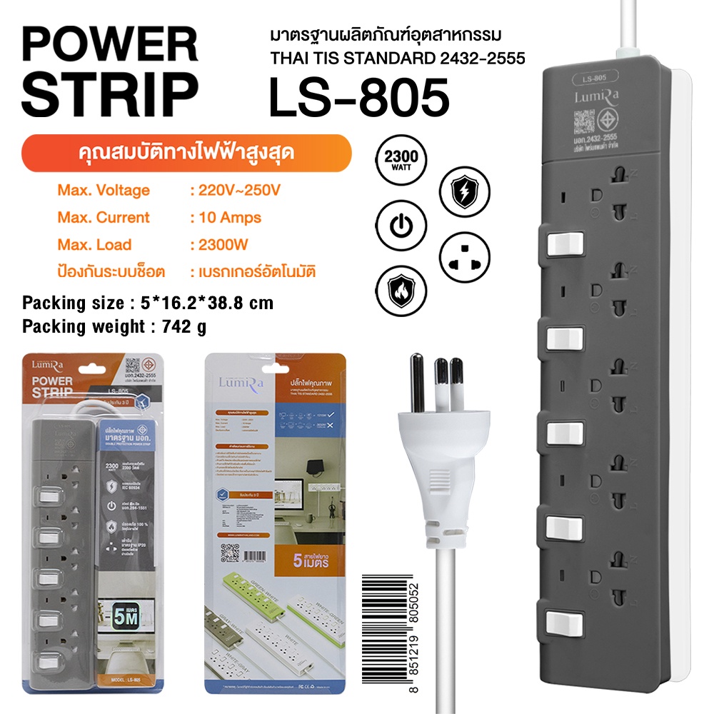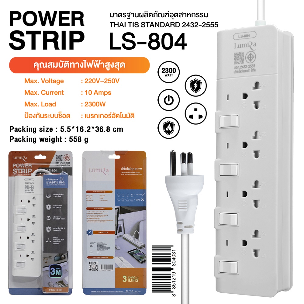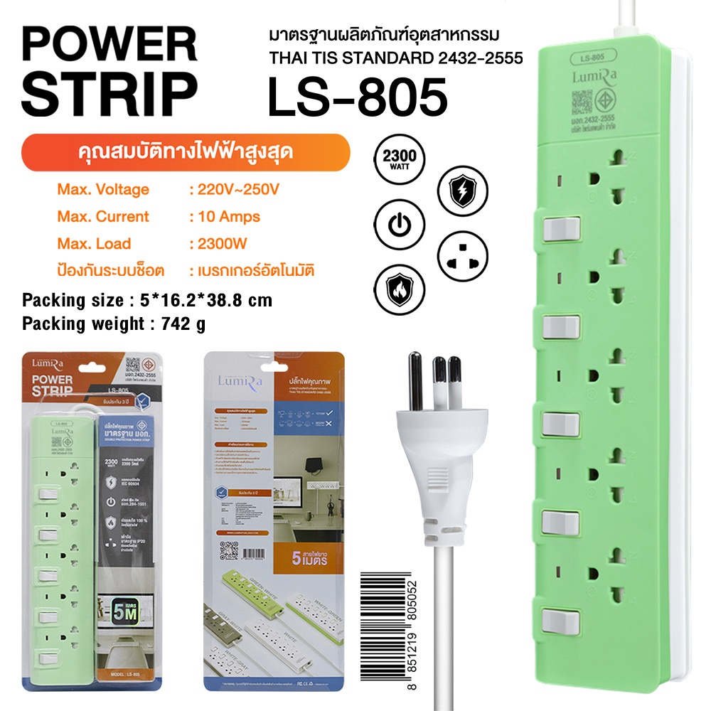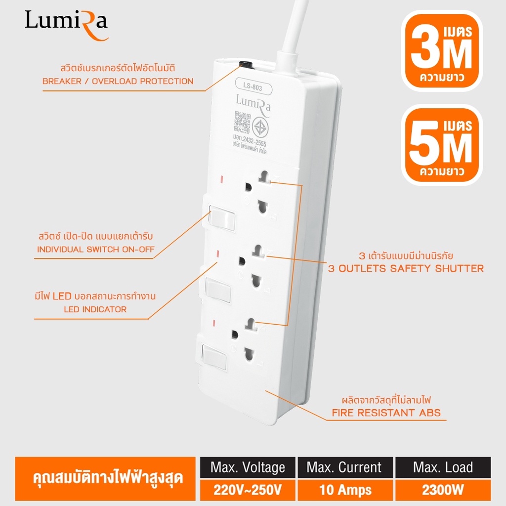 Plug Lumira LS-803/LS-804/LS-805/LS-803/2U/LS-804/2U ปลั๊กไฟ มีช่องยูเอสบี ลูมิล่า/3เมตร/5เมตร/งานแท้ มี มอก.