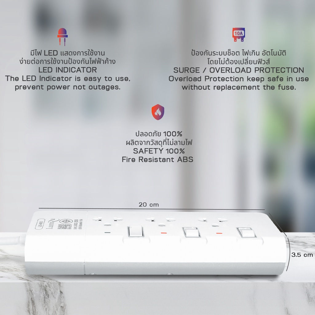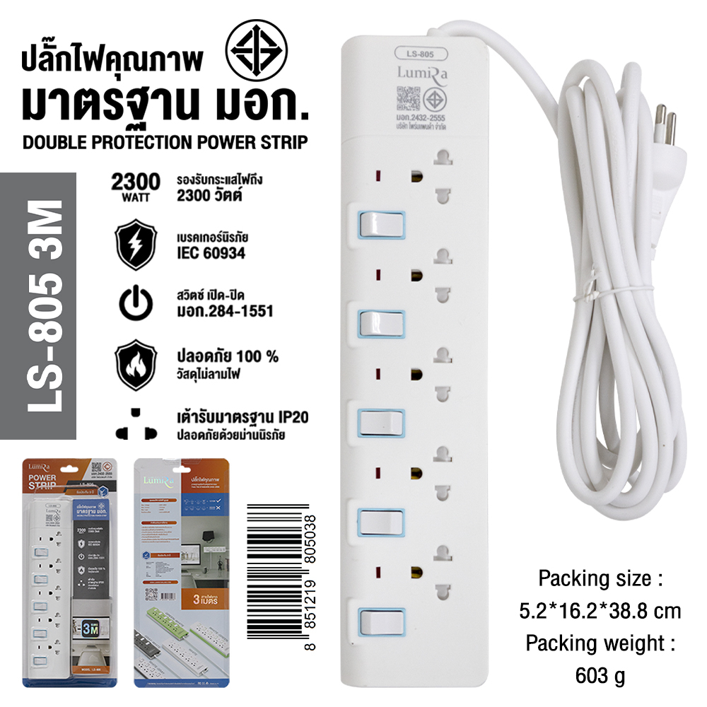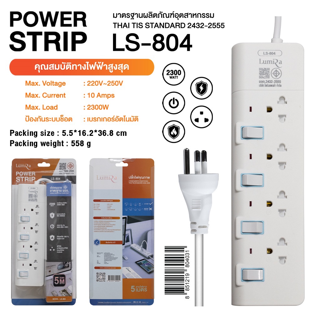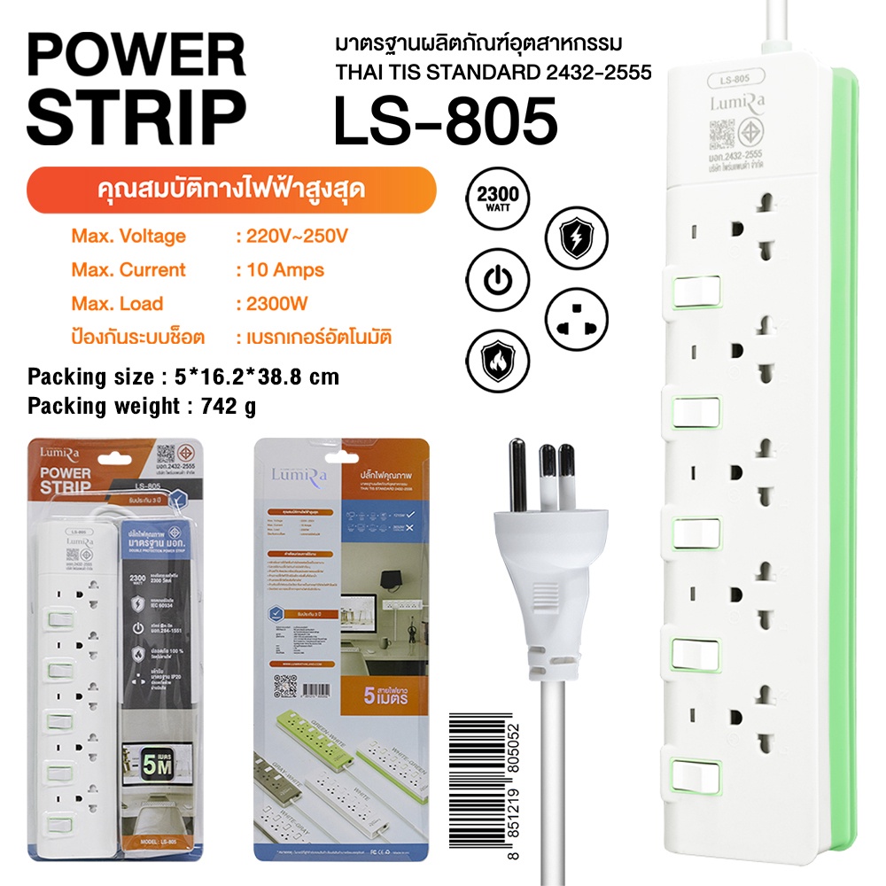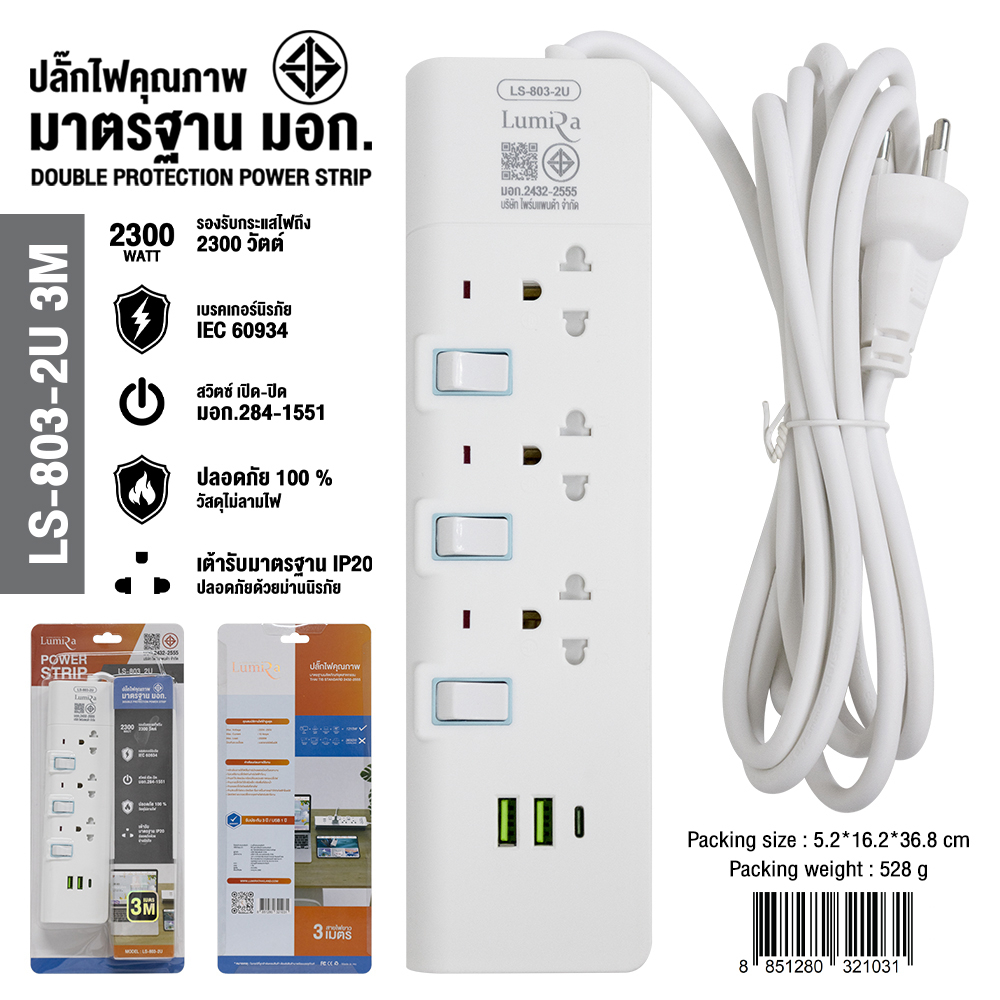 Plug Lumira LS-803/LS-804/LS-805/LS-803/2U/LS-804/2U ปลั๊กไฟ มีช่องยูเอสบี ลูมิล่า/3เมตร/5เมตร/งานแท้ มี มอก.