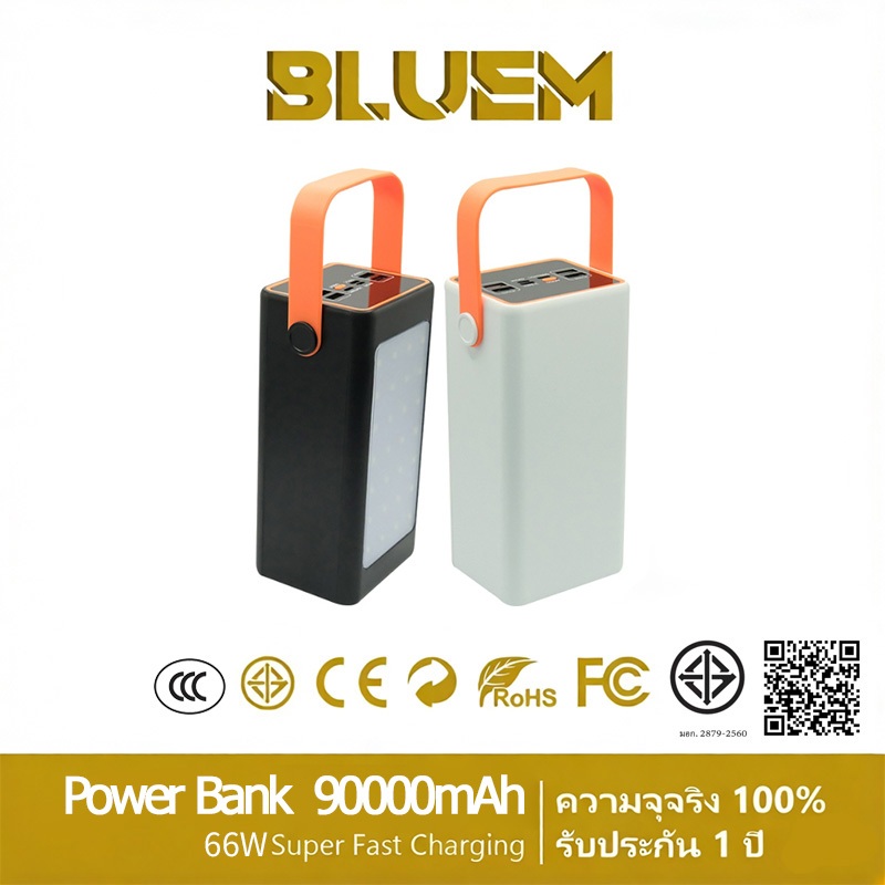 【China CCC】PowerBank 90000mAh ชาร์จเร็ว 66W Solar energy จริง 100% LED 4 โหมด iPhone16