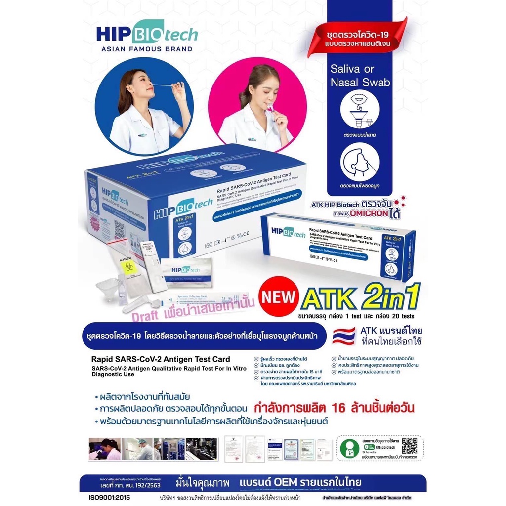 ส่งทุกวัน🔥ชุดตรวจATK ชุดตรวจโควิด19 BA2 2in1 แยงจมูกและน้ำลายในตัวเดียวกัน atk ที่ตรวจโควิด19 SARS-COV-2