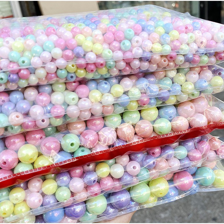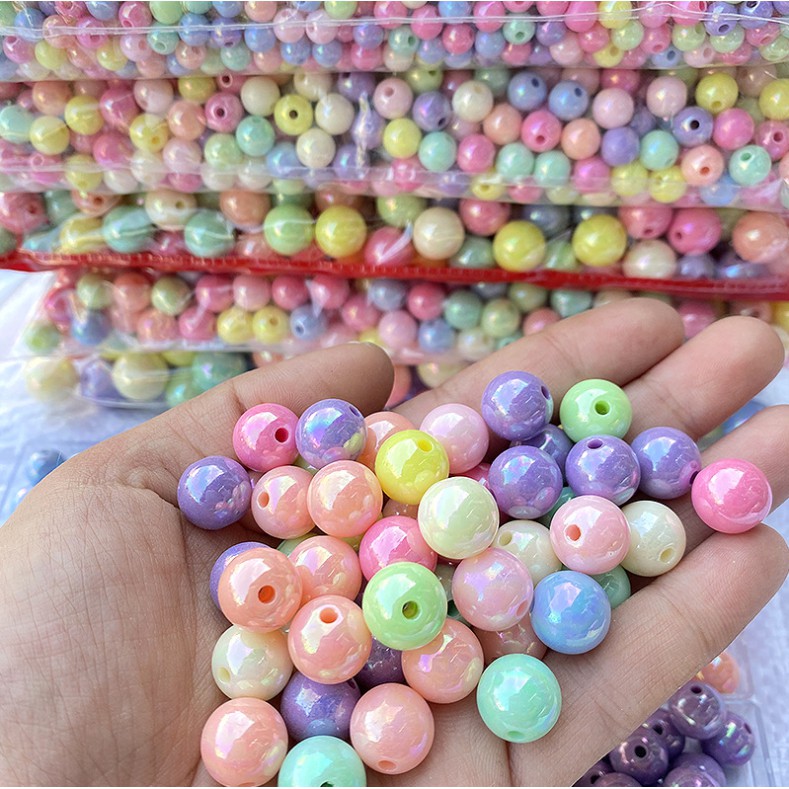 ลูกปัดสร้อยข้อมือ ลูกปัดอะคริลิค Ab 6 8 10 12 มม. มีรู